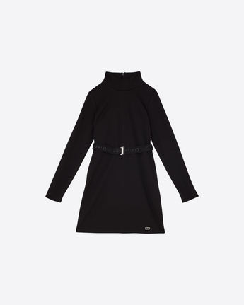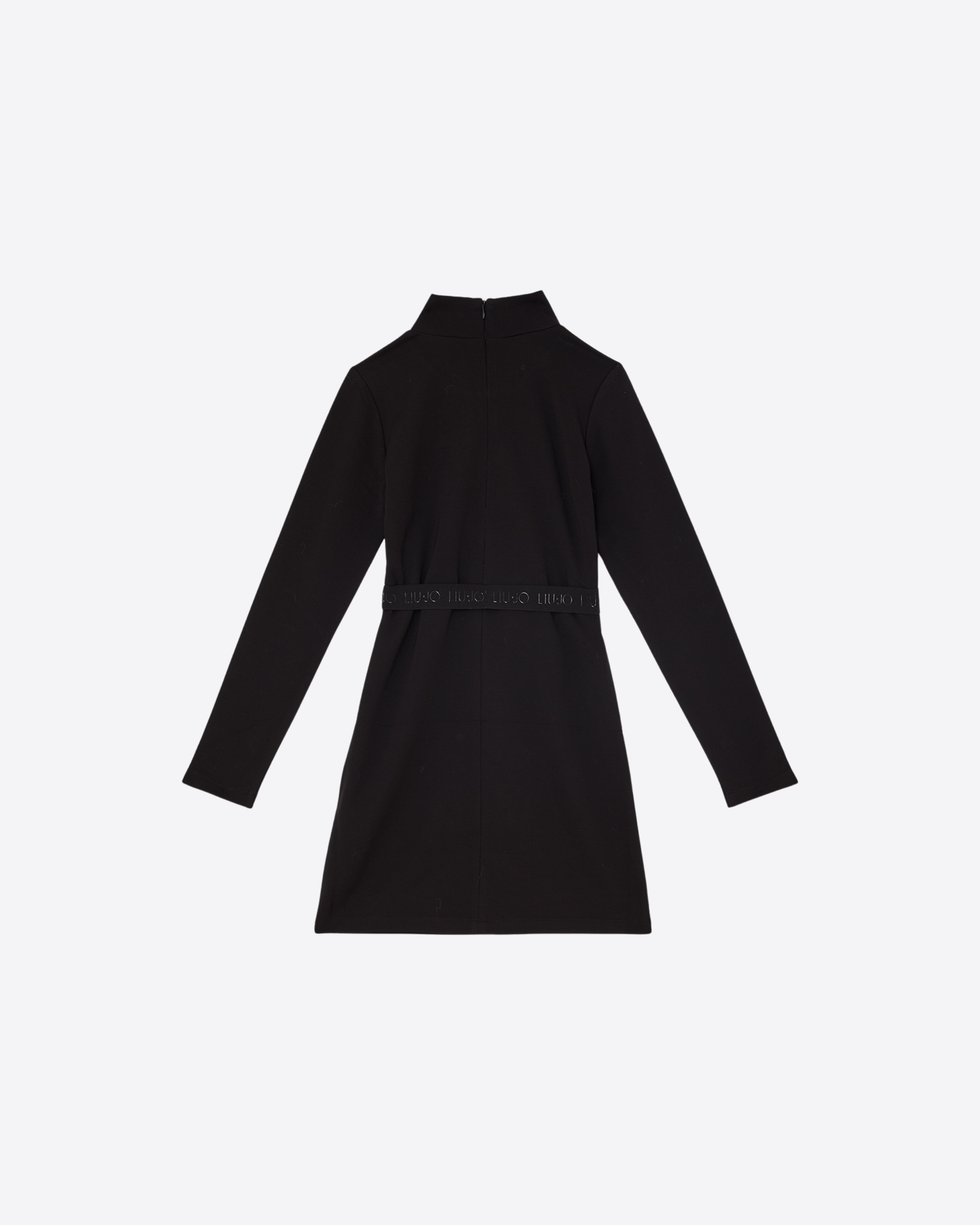 Abito corto Liu Jo Bambina in jersey di misto viscosa stretch, con collo alto e maniche lunghe. Completo di cintura logata tono su tono in abbinamento e chiusura con zip invisibile sul retro.