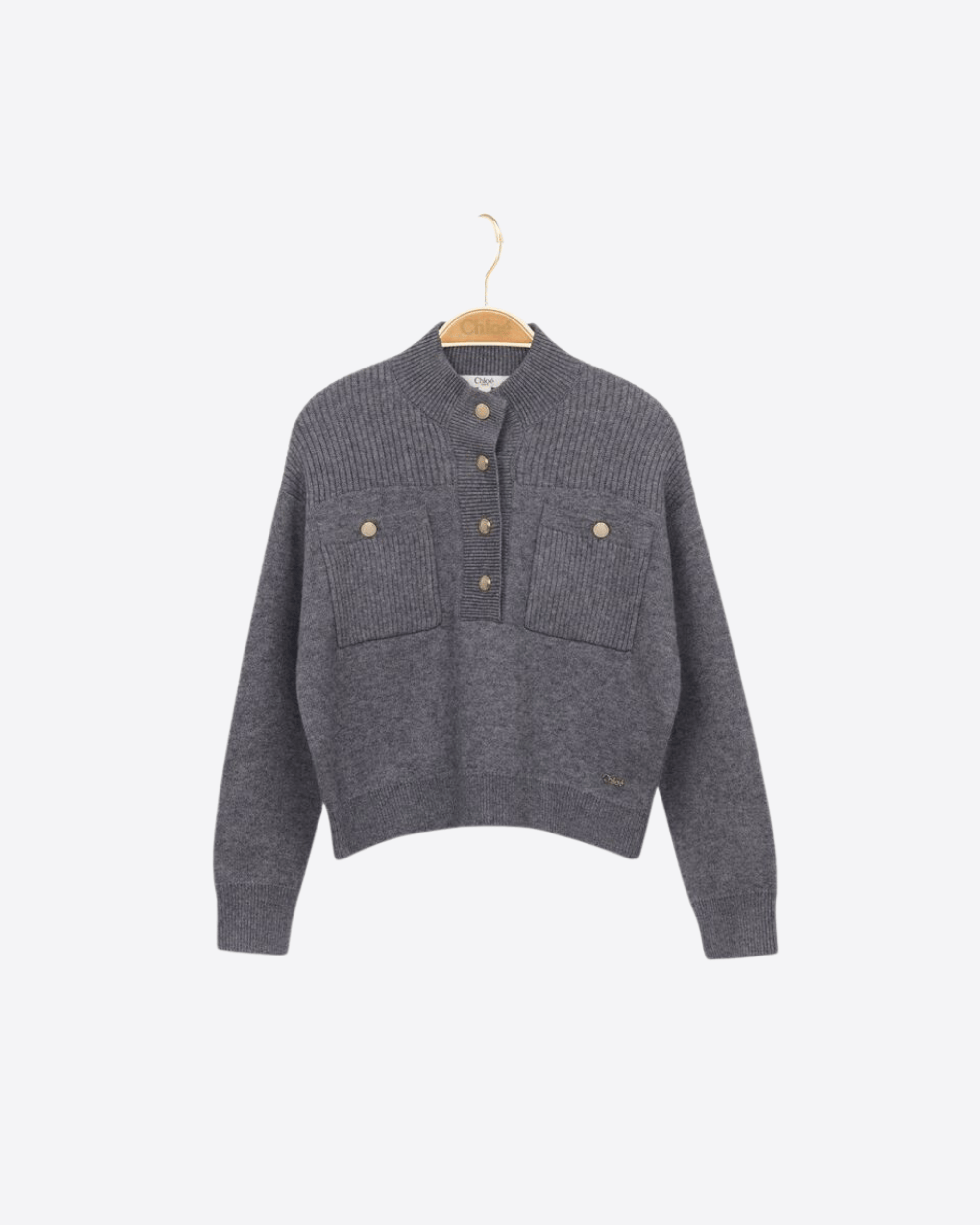 Maglia firmata Chloé, dal design elegante e senza tempo. Realizzata in tessuto morbido e confortevole, presenta una chiusura con bottoni con incisione Chloé su metà del davanti e due tasche con bottone sul petto. Un capo versatile e raffinato, ideale per completare con stile i look quotidiani delle più piccole.