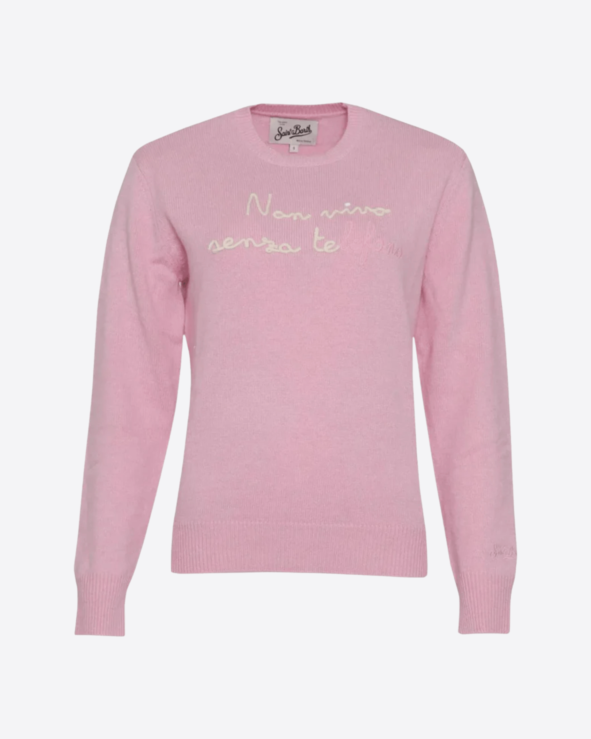 MAGLIA ROSA IN MISTO LANA CON SCRITTA