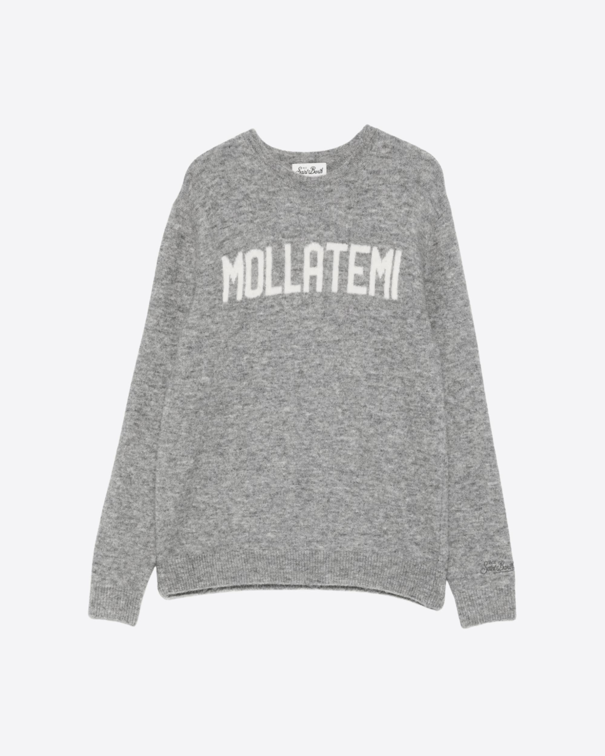 MAGLIONE GRIGIO IN MISTO LANA CON SCRITTA