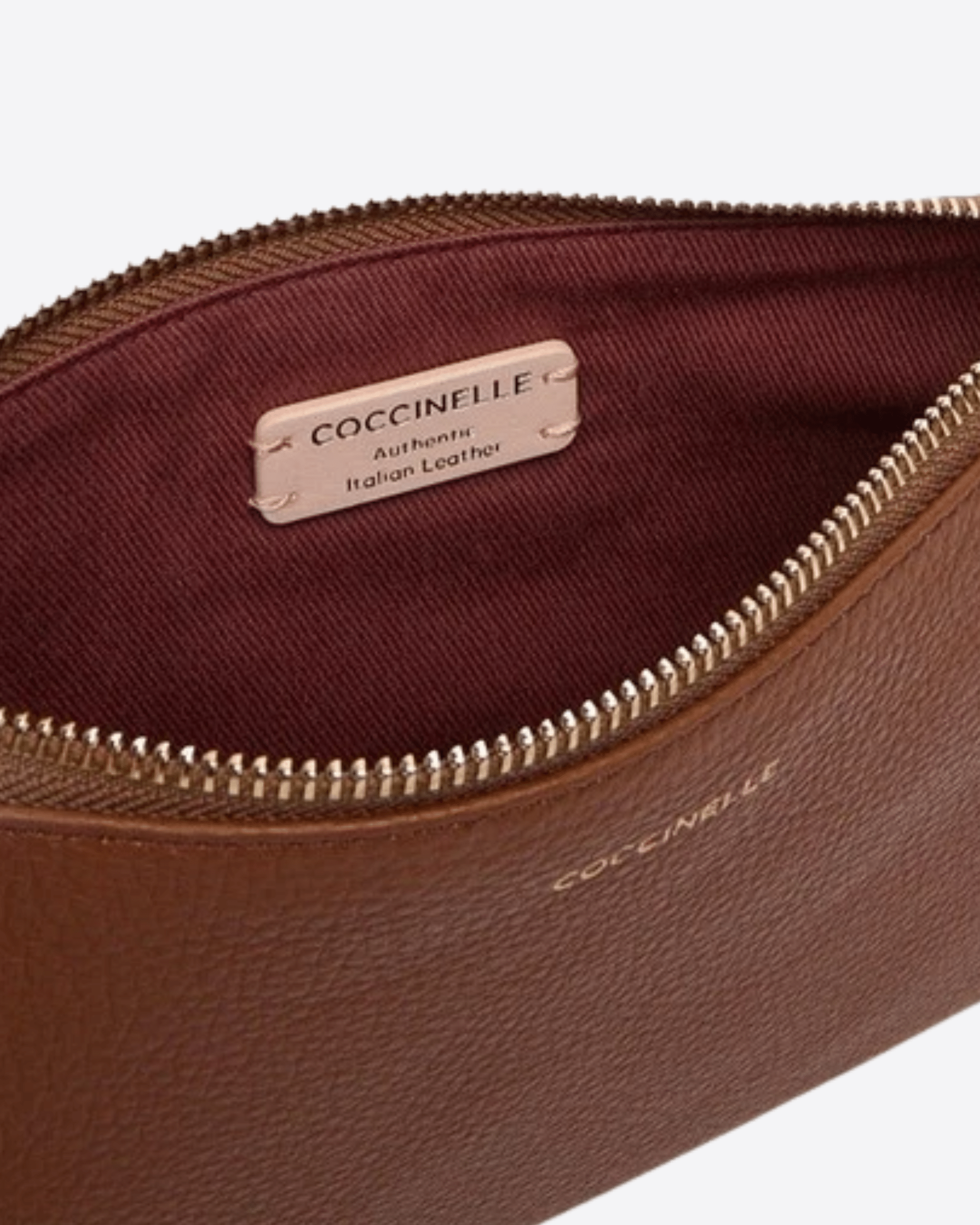 Minibag in pelle particolarmente pratica e capiente. Il suo design pulito ed essenziale la rende la perfetta compagna di viaggio. Questo modello è realizzato in pelle lavorata tramite specifici macchinari e poi bottalata al fine di mantenerne la morbidezza. È una pelle molto resistente che si presta a una facile pulizia, ideale per un uso quotidiano.