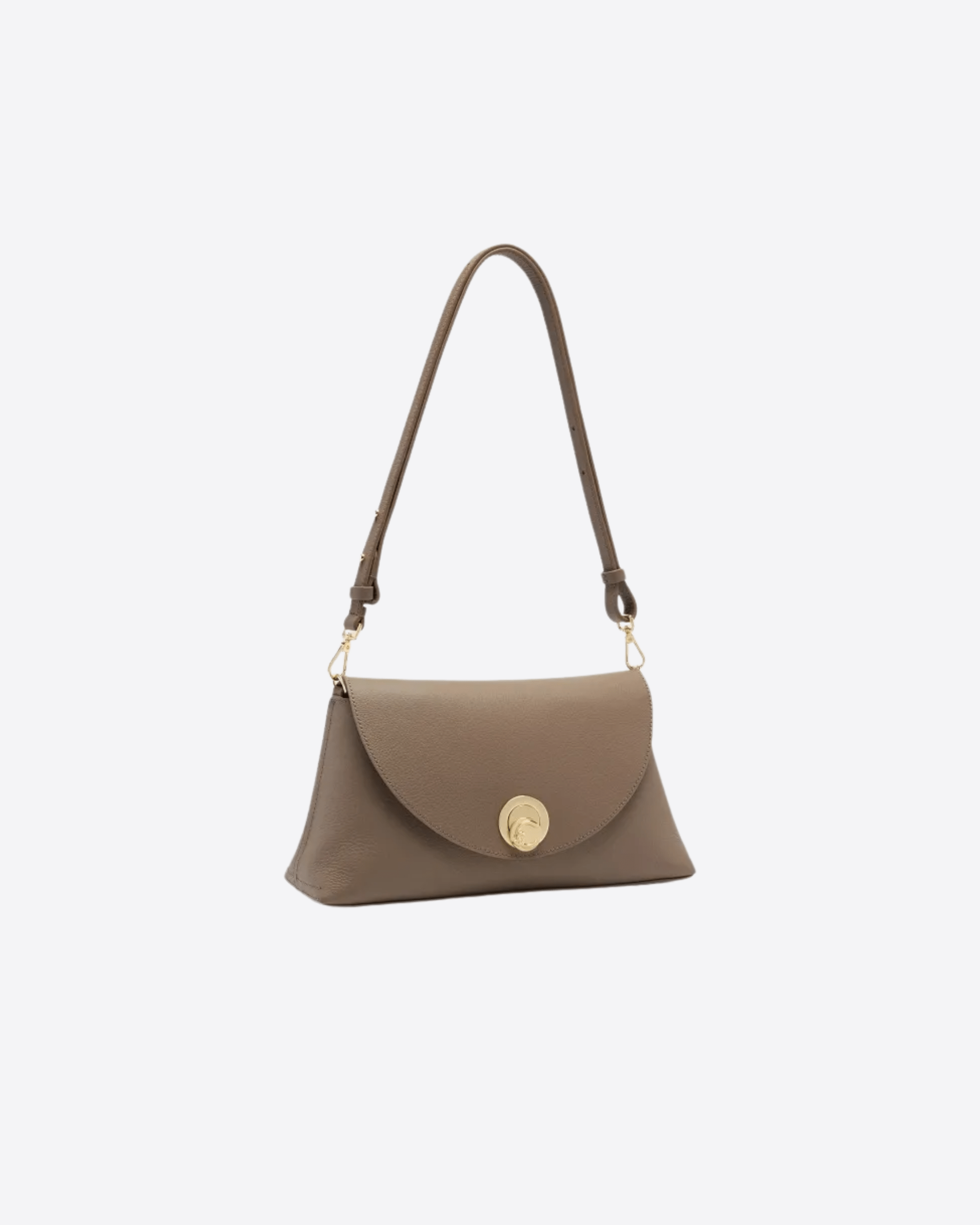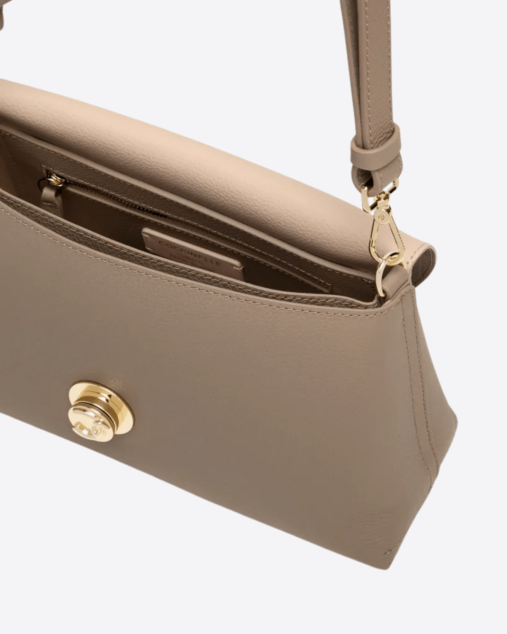 Per la linea Coccinelle Nikla il logo C-Me è trasformato in un prezioso girello che firma elegantemente questo modello con patta. Raffinata e moderna, ogni borsa concilia dettagli dall’eleganza senza tempo con una silhouette dai volumi contemporanei, enfatizzati dalla morbidezza della pelle. Il modello è caratterizzato da un interno capiente e da una tasca sul retro, oltre che una costruzione in pelle double.