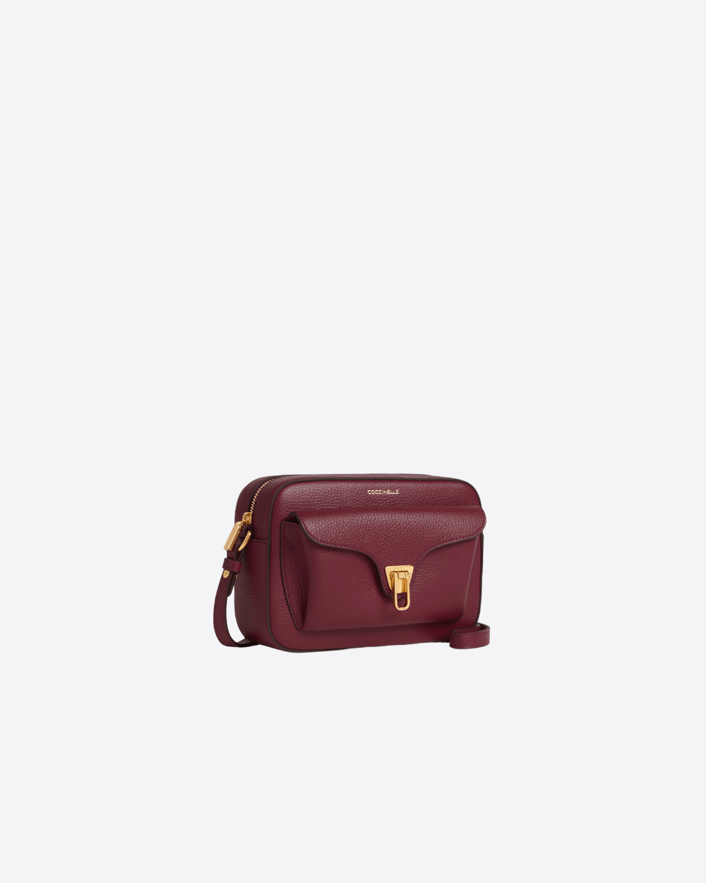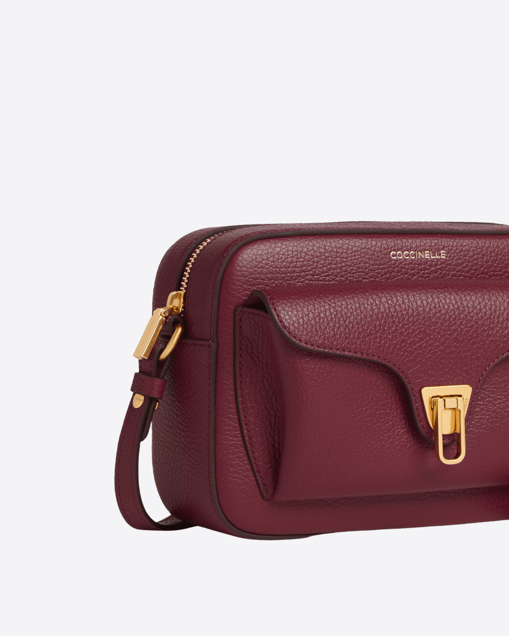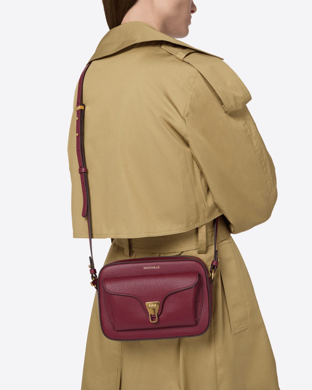Questa camera bag della linea Beat è facile da abbinare ad ogni tipo di outfit. È arricchita da una tasca esterna caratterizzata dall'iconica chiusura in metallo a forma di plettro, ideale per tenere sempre al sicuro i propri oggetti personali.