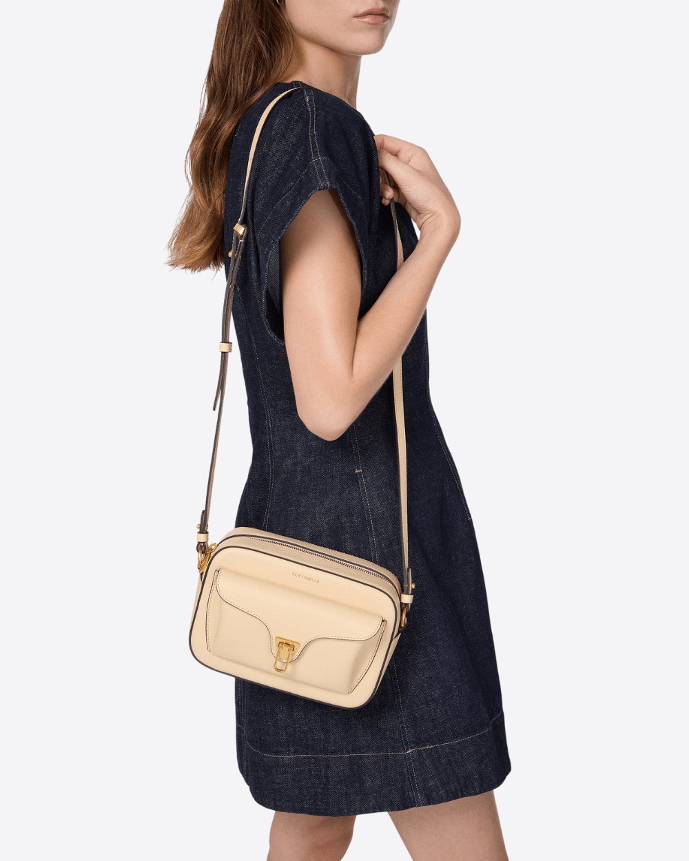 Questa camera bag della linea Beat è facile da abbinare ad ogni tipo di outfit. È arricchita da una tasca esterna caratterizzata dall'iconica chiusura in metallo a forma di plettro, ideale per tenere sempre al sicuro i propri oggetti personali.