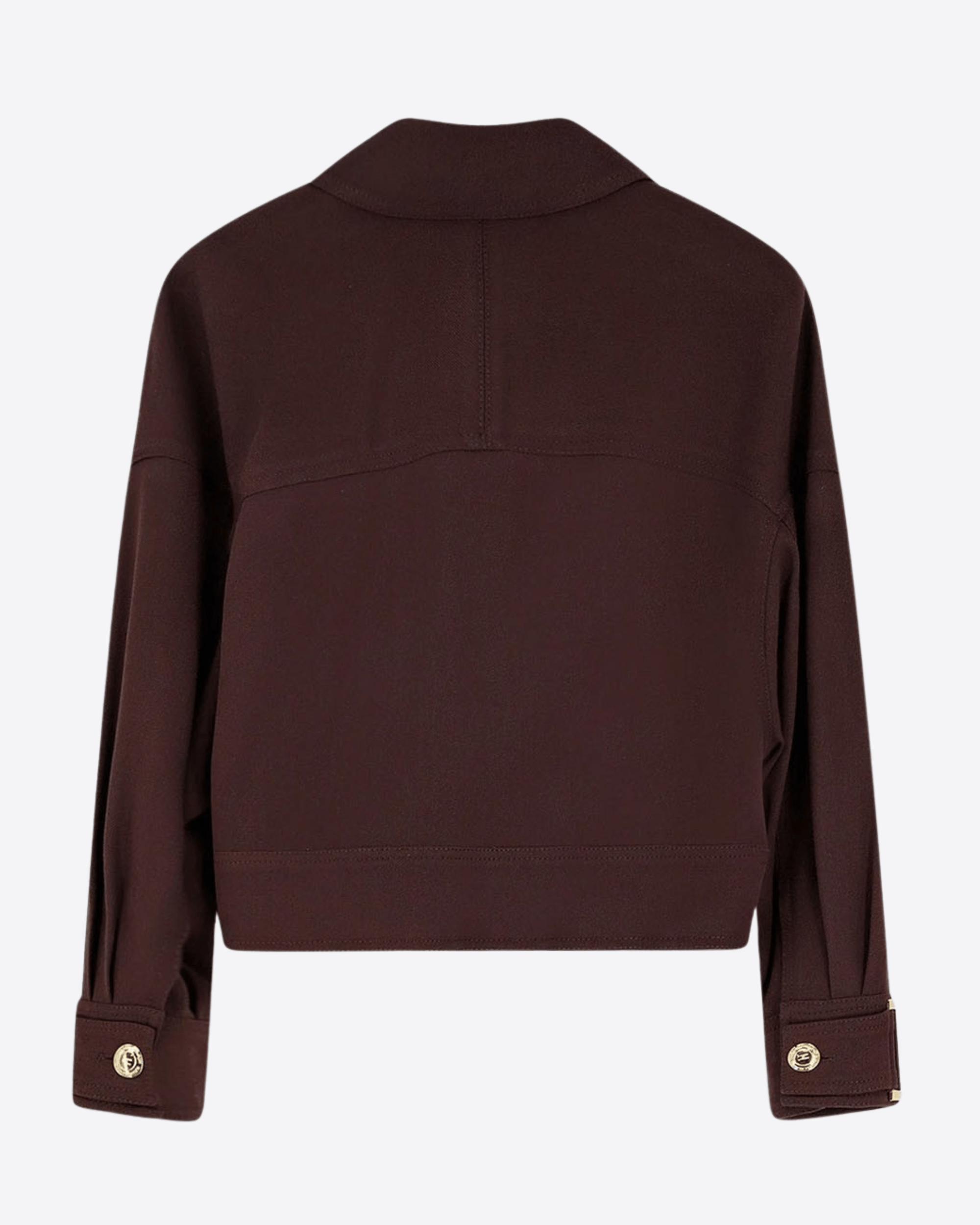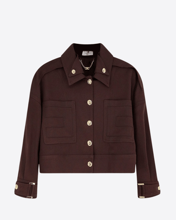 Caban in gabardina dalla vestibilità over, caratterizzato da doppio colletto e maniche ¾ con alamari. Il modello è arricchito da tasche ricamate con logo a filo e da bottoni in metallo dorato che aggiungono luminosità, per un mix di eleganza e stile contemporaneo.