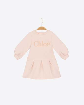 Abito firmato Chloé, caratterizzato da una linea semplice e raffinata. Realizzato in tessuto morbido e confortevole, presenta maniche lunghe e una zip posteriore che ne facilita la chiusura. Il logo sul davanti aggiunge un tocco distintivo e contemporaneo, rendendo questo capo perfetto per ogni occasione, dalla scuola al tempo libero.