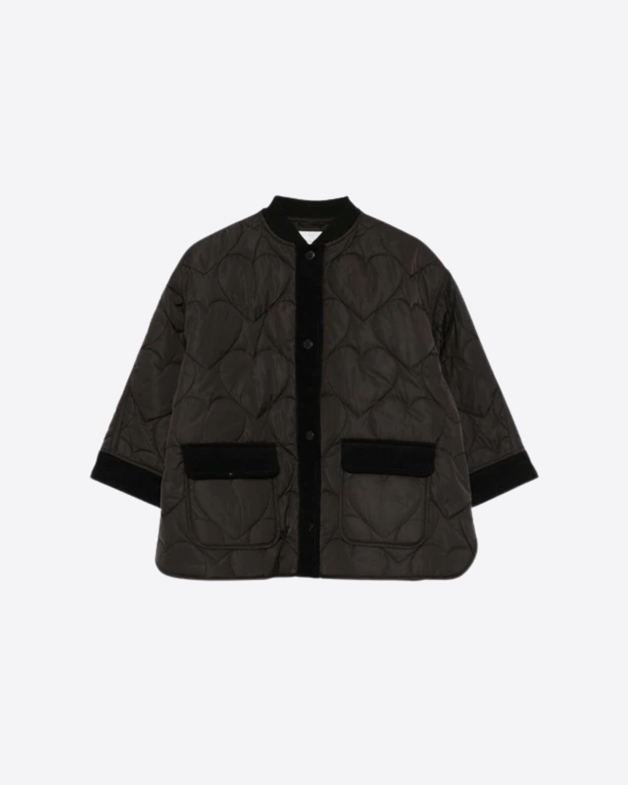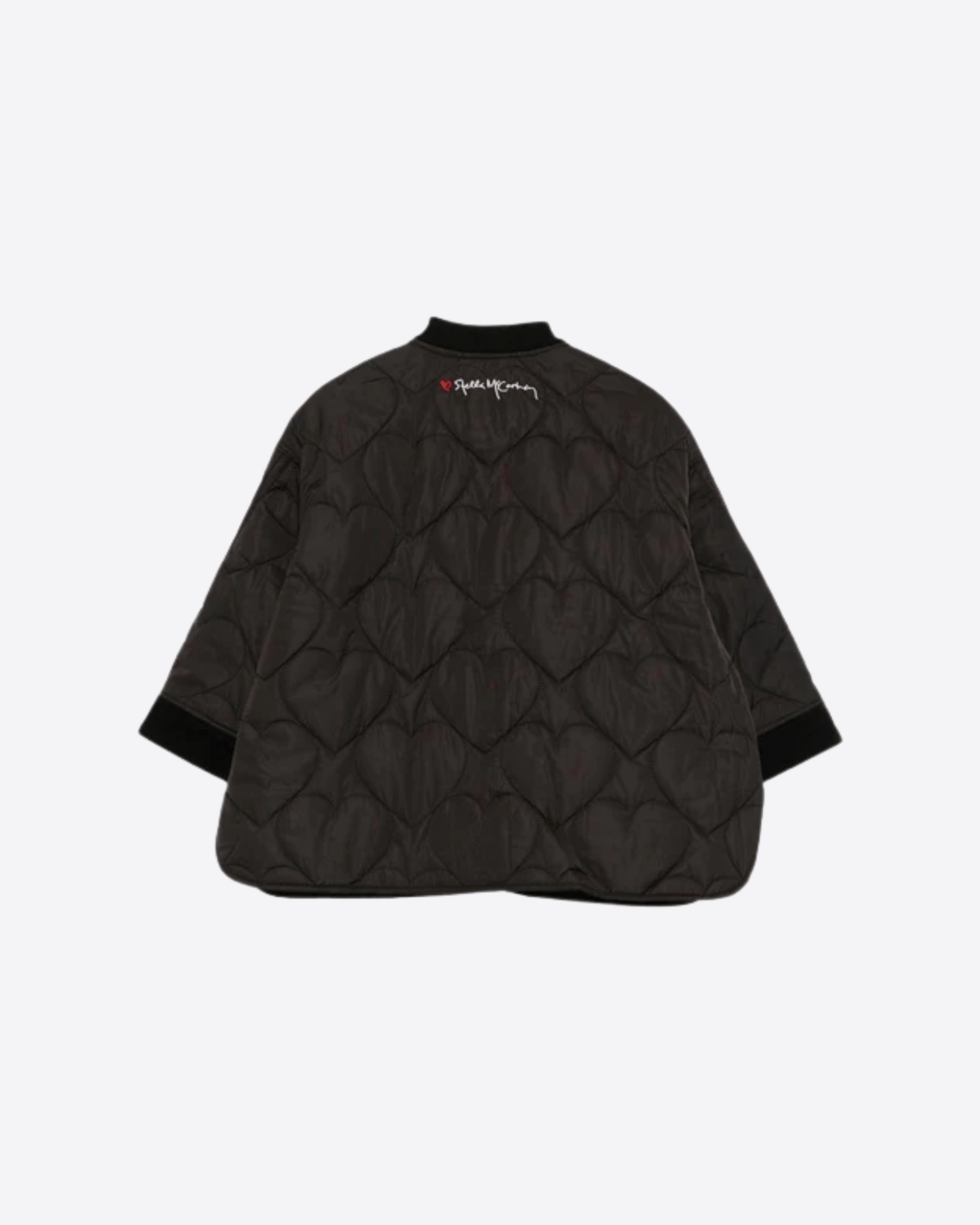 Giacca trapuntata da bambina in tessuto nero, caratterizzata da chiusura frontale con abbottonatura e pratiche tasche applicate sul davanti. Realizzata interamente in poliestere, offre comfort e resistenza, ideale per l'uso quotidiano nelle giornate più fresche. Un capo essenziale e versatile appartenente alla collezione Stella McCartney Kids.