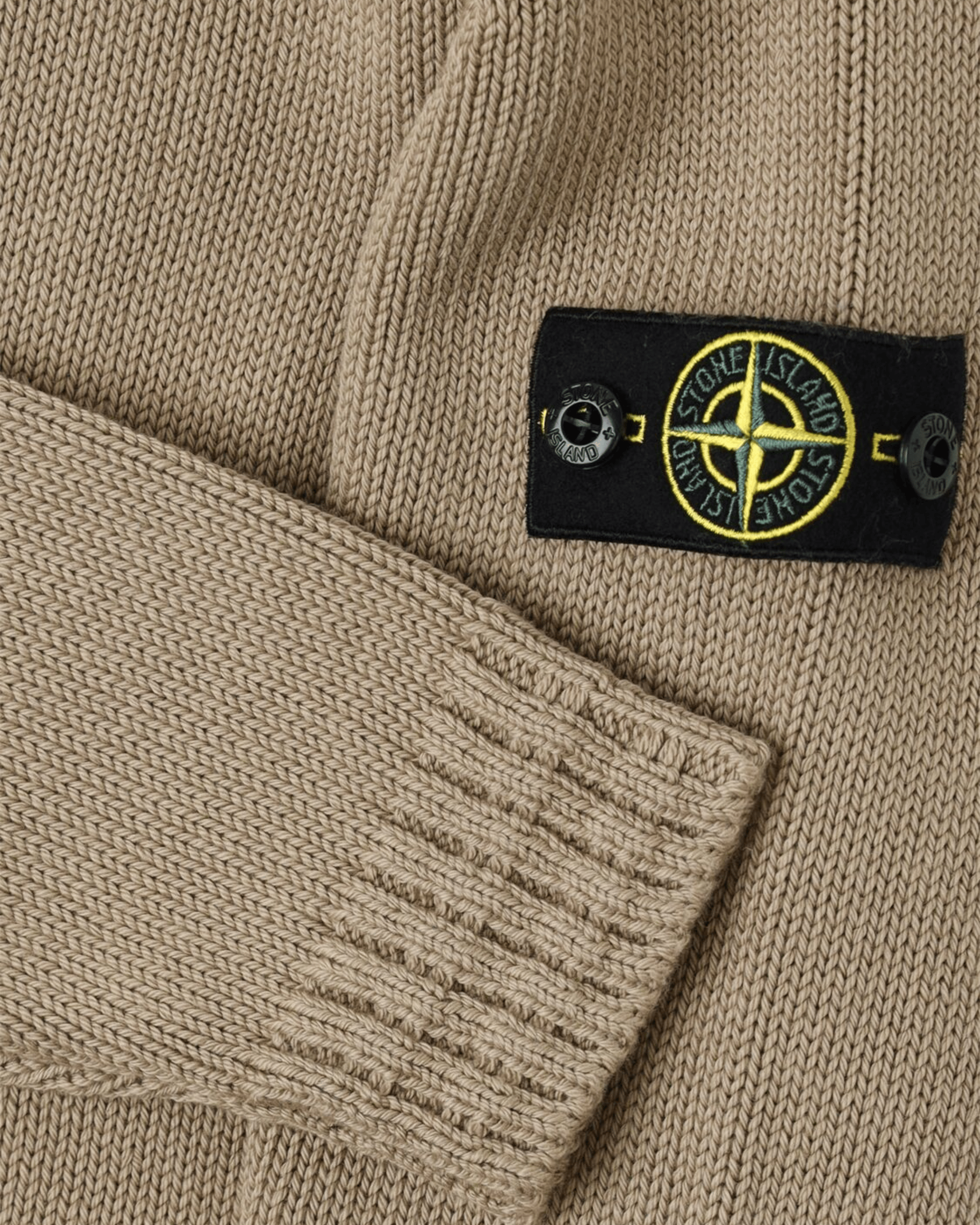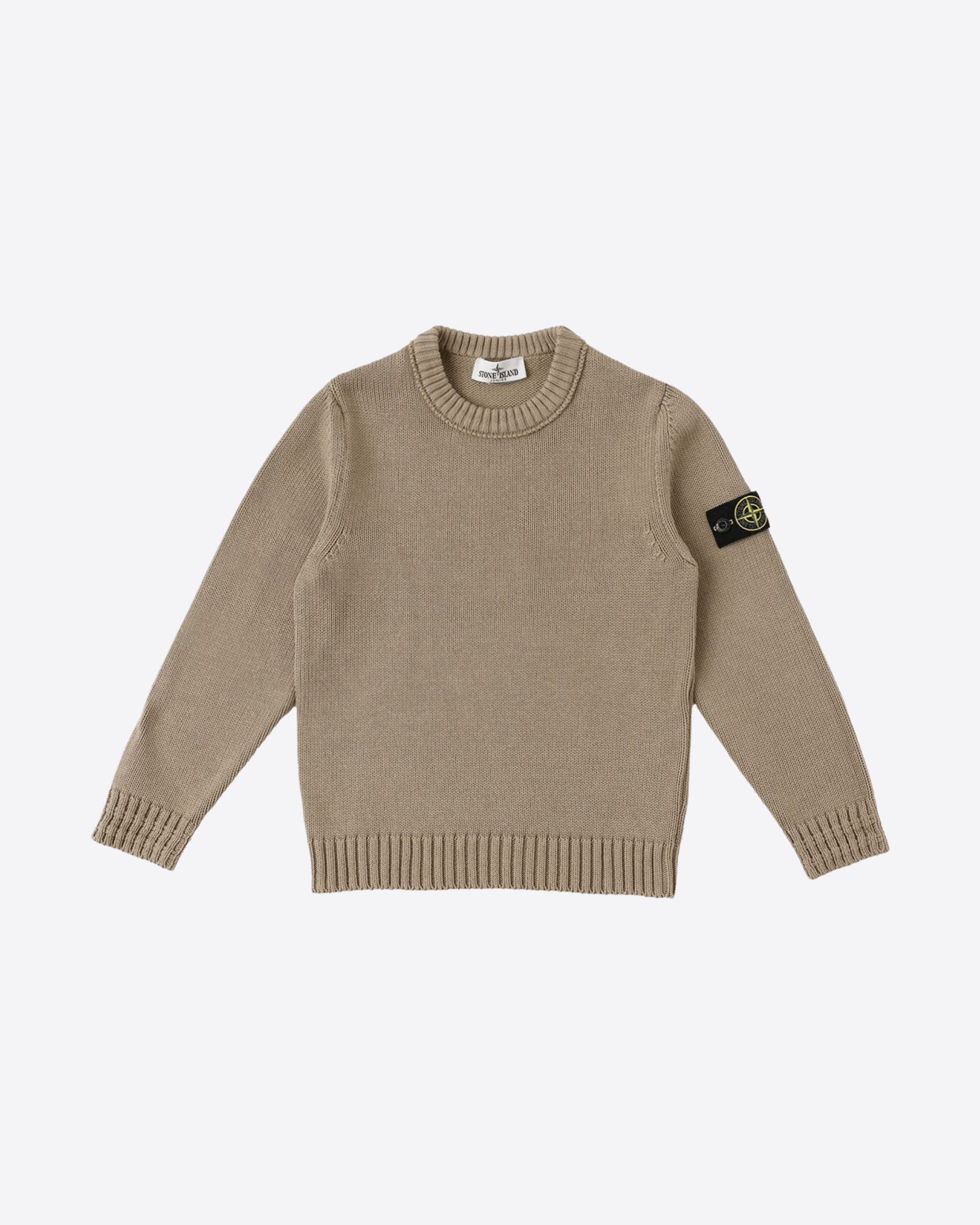 Maglia dal colore sabbia, caratterizzata da collo, fondo manica e fondo a costine che assicurano una vestibilità confortevole e una finitura curata. Il design essenziale è arricchito da una patch con logo applicata sulla manica, dettaglio distintivo che aggiunge un tocco di stile e riconoscibilità al capo. Perfetta per un look casual ma ricercato, ideale per completare outfit quotidiani con eleganza discreta.