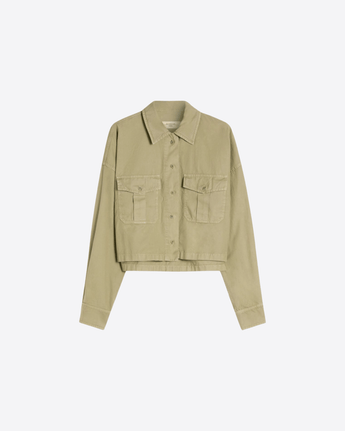 Camicia a maniche lunghe realizzata in panama di puro cotone, caratterizzata da una vestibilità boxy che dona al capo un aspetto contemporaneo e rilassato. Il design presenta spalla scesa e un fondo asimmetrico, leggermente più lungo sul retro, dettaglio che valorizza la linea fluida della silhouette. Il classico colletto a camicia e i polsini coordinati definiscono l’estetica essenziale del modello, mentre la chiusura frontale con bottoni a vista aggiunge un tocco pulito e versatile. Sul petto sono presenti tasche a soffietto con patta e bottone, elementi funzionali che arricchiscono il capo. Il fondo dritto con spacchetti laterali completa la struttura della camicia, assicurando comfort e libertà di movimento, ideale per look casual dal carattere moderno.