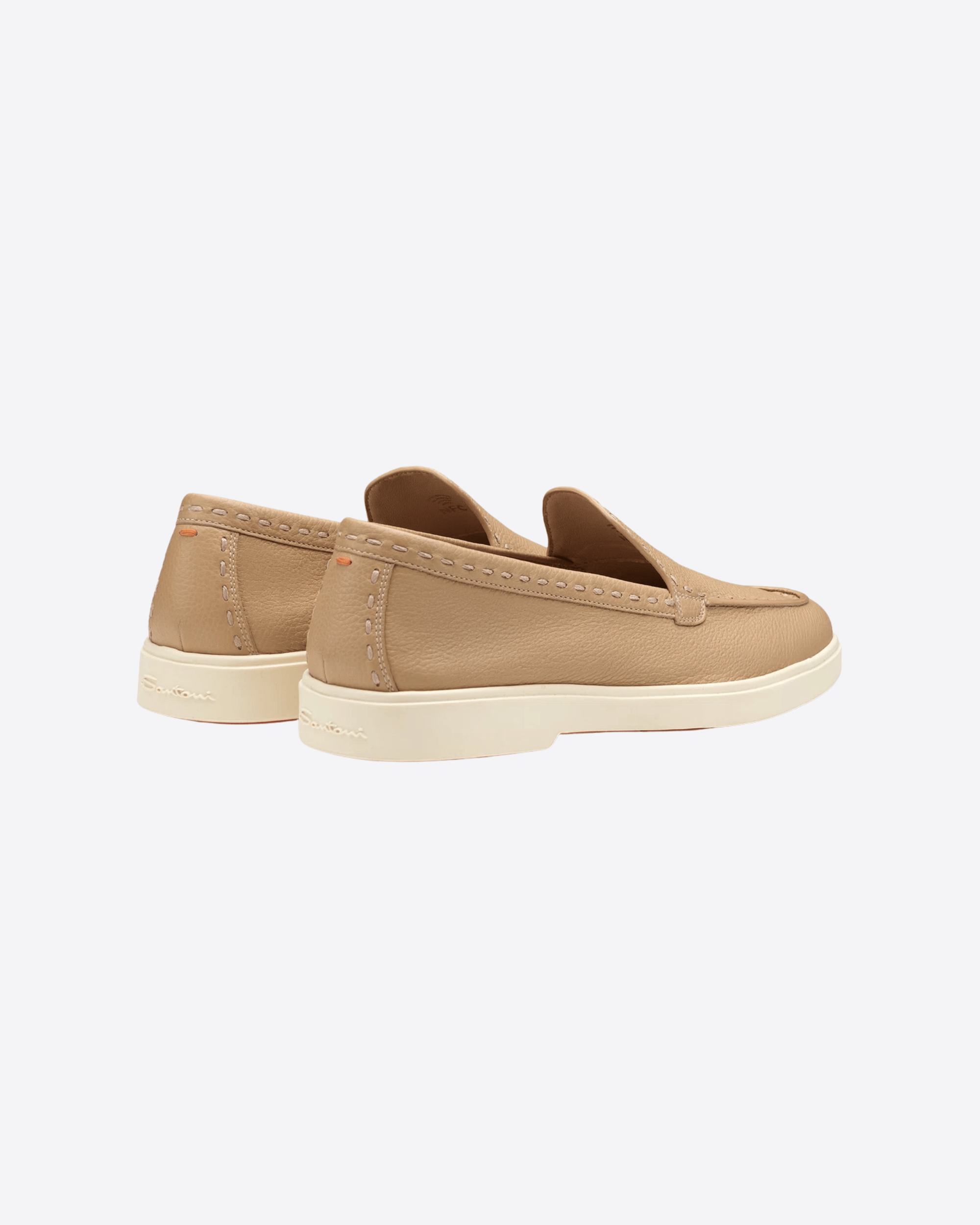 La linea classica a punta arrotondata è completata da vaschetta cucita, fondo in gomma liscia e dettagli iconici come la lavorazione Sigillo tono su tono sui profili e l’impuntura Sigillo Arancio Santoni sul retro. Il battistrada nell’iconica tonalità Arancio Santoni e il logo impresso sulla soletta valorizzano ulteriormente il richiamo all’heritage della maison. Colore Beige Miele, Made in Italy, per un equilibrio perfetto tra eleganza, comfort e stile riconoscibile.