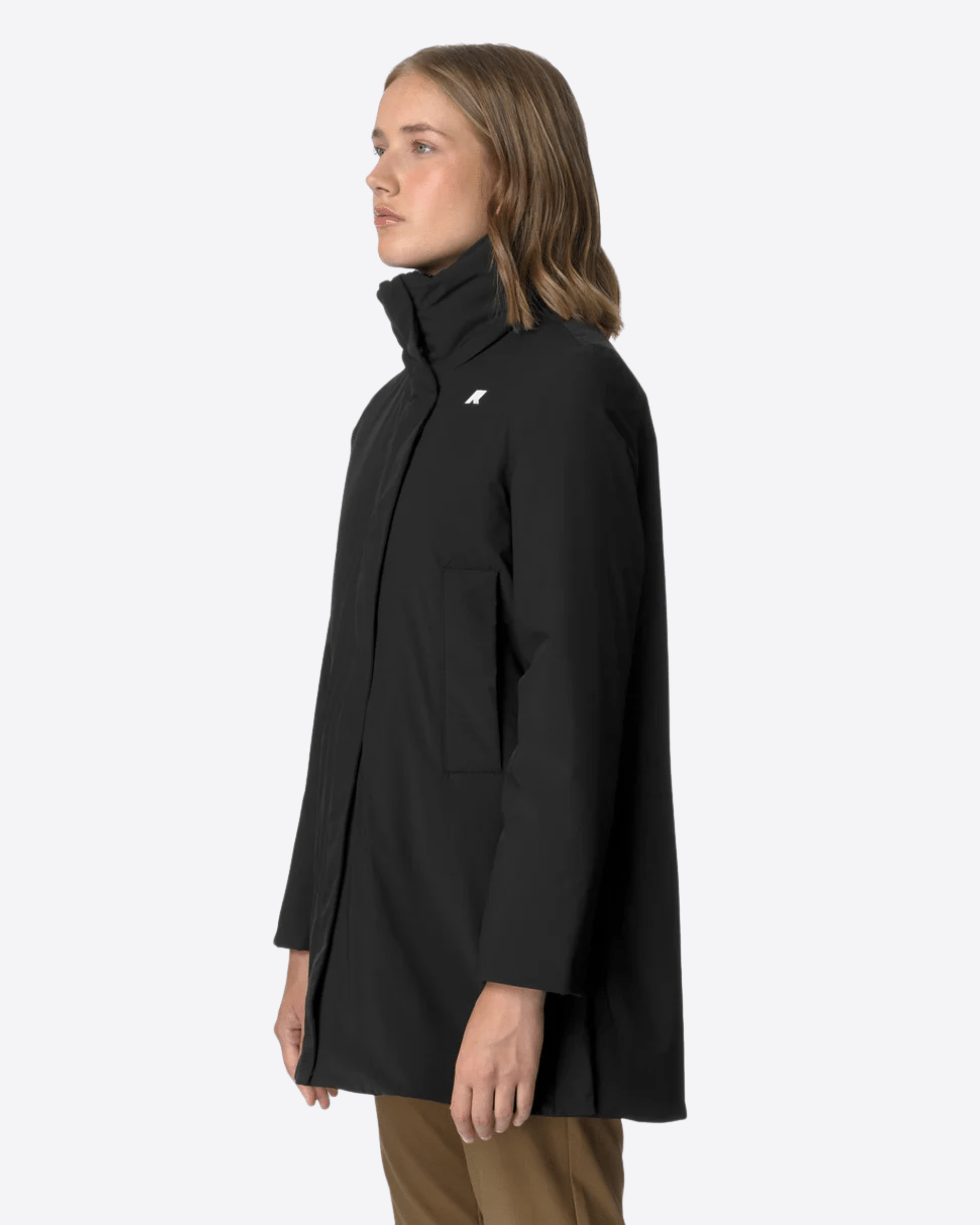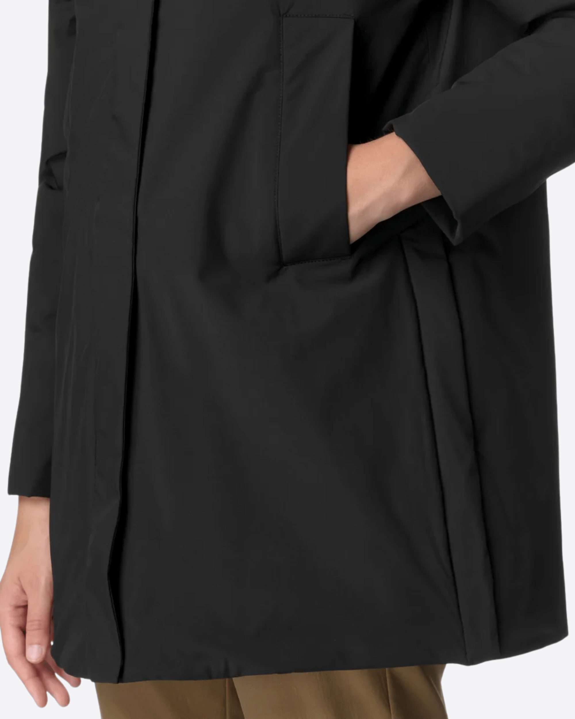 Marla è una giacca di lunghezza media da donna che interpreta in chiave elegante e femminile il classico capospalla funzionale e cittadino. Questa giacca presenta la possibilità di modulare le aperture sui fianchi con i pratici bottoni a pressione invisibili all'esterno, grazie ai quali è possibile rendere il capo da classico e semplice a femminile e accattivante. Il suo cappuccio integrato nel collo alto, facilmente estraibile in caso di pioggia improvvisa, conferisce al capo ulteriore praticità. Un grado di calore medio adatto ad autunno e inizio inverno è assicurato dall’imbottitura in fibra sintetica