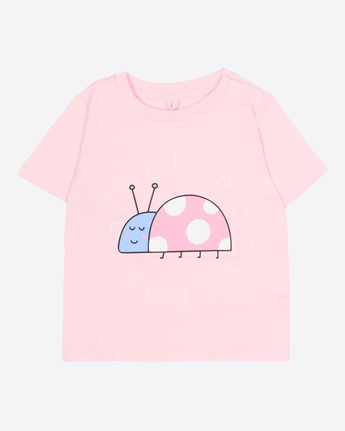 Per la Primavera Estate 2026, Stella McCartney Kids esplora i dettagli della natura, tra coccinelle, stampe floreali e personaggi musicali, in una collezione realizzata interamente con materiali responsabili. Questa t-shirt short è realizzata in cotone organico, pensato per garantire comfort e libertà di movimento durante le giornate calde e le attività all’aria aperta.