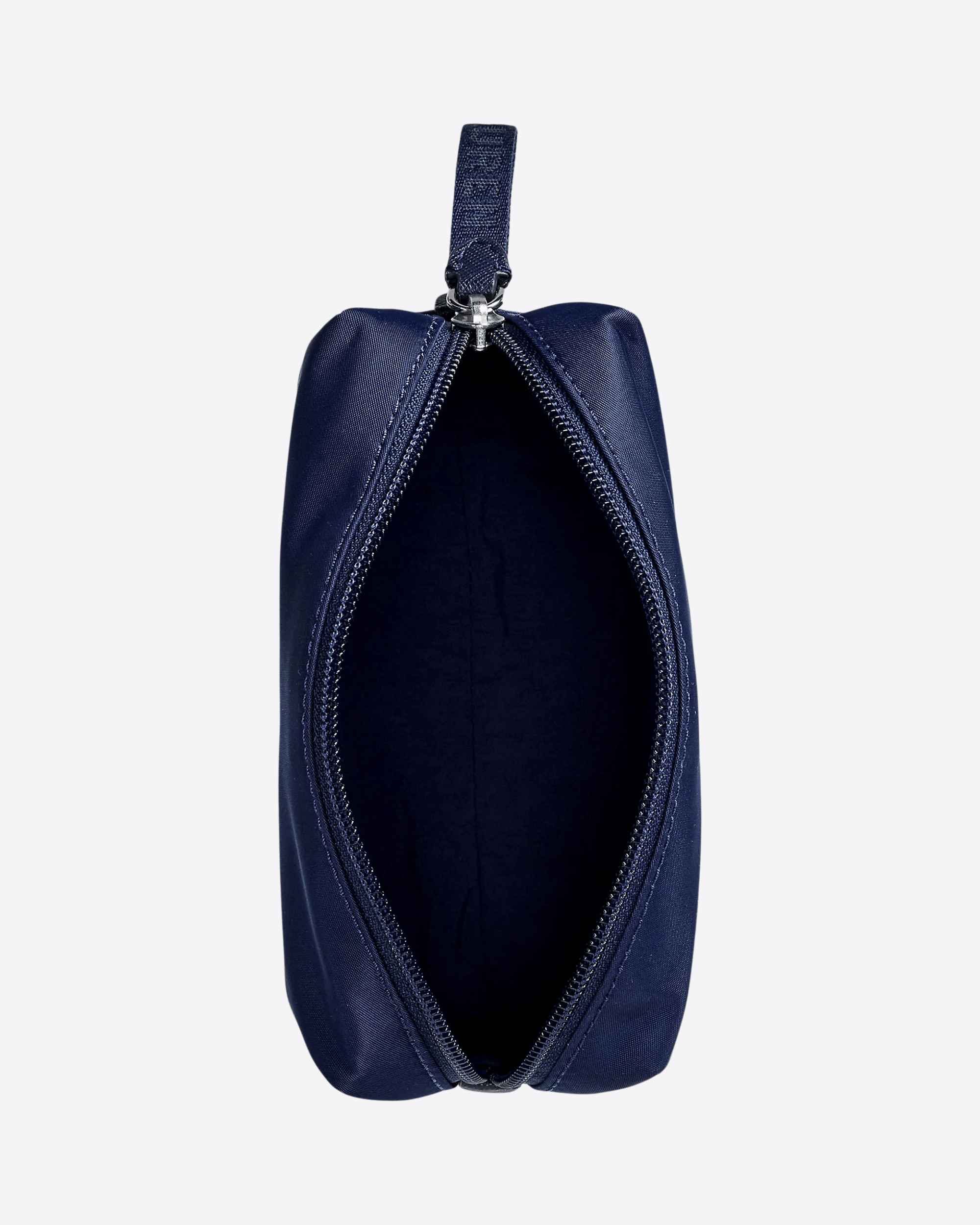 La chiusura con cerniera permette di tenere al sicuro tutto il necessario, rendendola perfetta da portare in borsa, in viaggio o nel beauty case. Il design monocromo in raffinato colore navy aggiunge un tocco di sobria eleganza, tipico del brand.