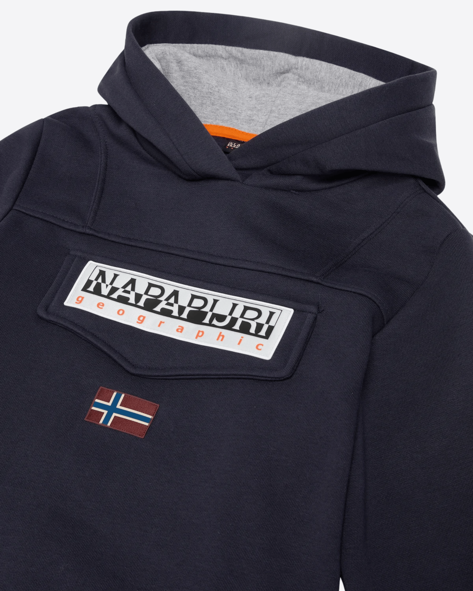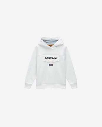 Realizzata in cotone coltivato organicamente, questa felpa spazzolata assicura morbidezza e calore grazie a una speciale tecnica di finitura, mentre l’inconfondibile grafica Napapijri, il comodo cappuccio e il sottogola donano un comfort avvolgente e uno stile autentico.