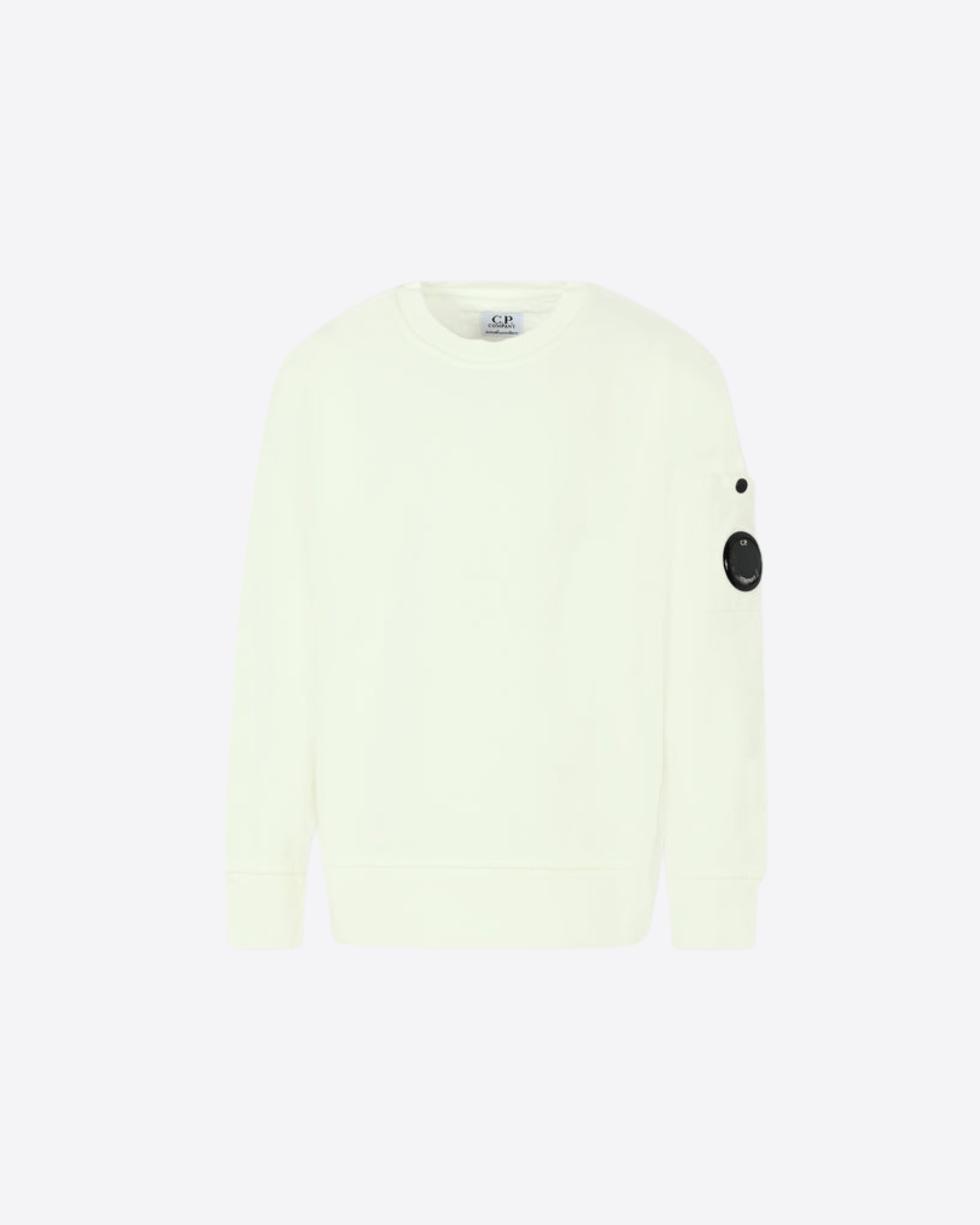 Felpa C.P. Company realizzata in cotone felpato, a maniche lunghe e caratterizzata da girocollo, polsini e orlo a costine. Il modello è completato dalla lente applicata su una manica.