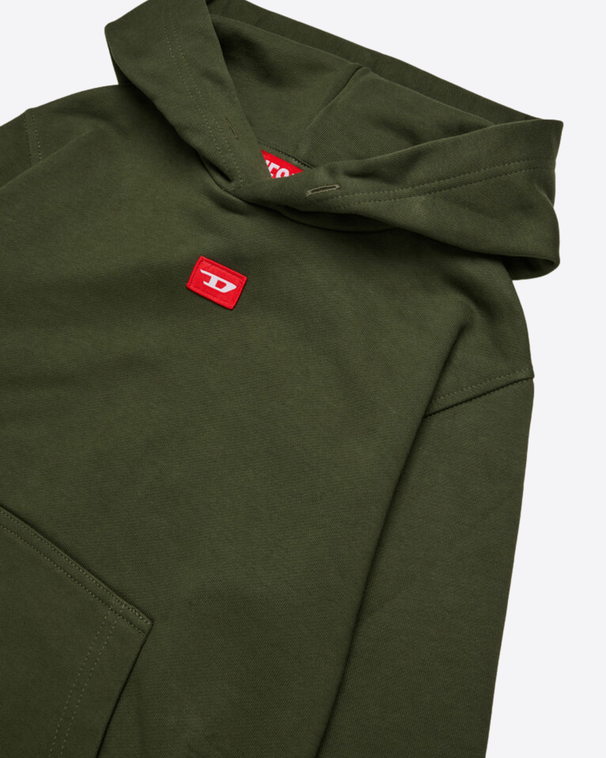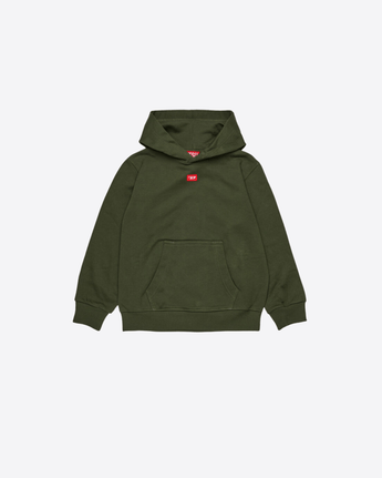 Felpa da bambino con cappuccio. Realizzata in cotone leggermente elasticizzato. Ha maniche lunghe e bordo a costine. Dettagli di stile includono la tasca a marsupio frontale e il logo su patch.