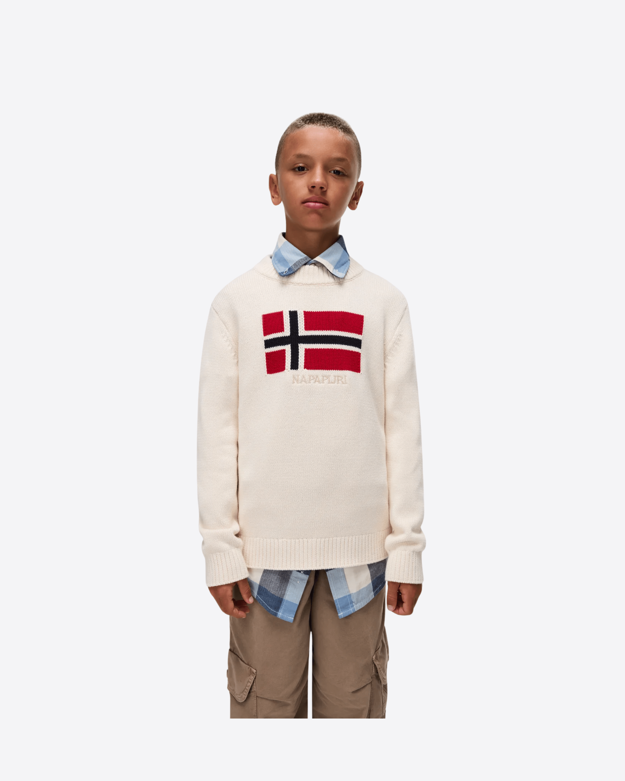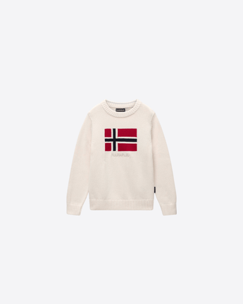 Caratterizzato dalla nostra riconoscibile grafica della bandiera norvegese sul davanti, il maglione Mura per bambini è un capo caldo e confortevole ispirato all'alpinismo e realizzato in 100% cotone. Ha un aspetto classico grazie alle costine su polsini, collo e orlo.