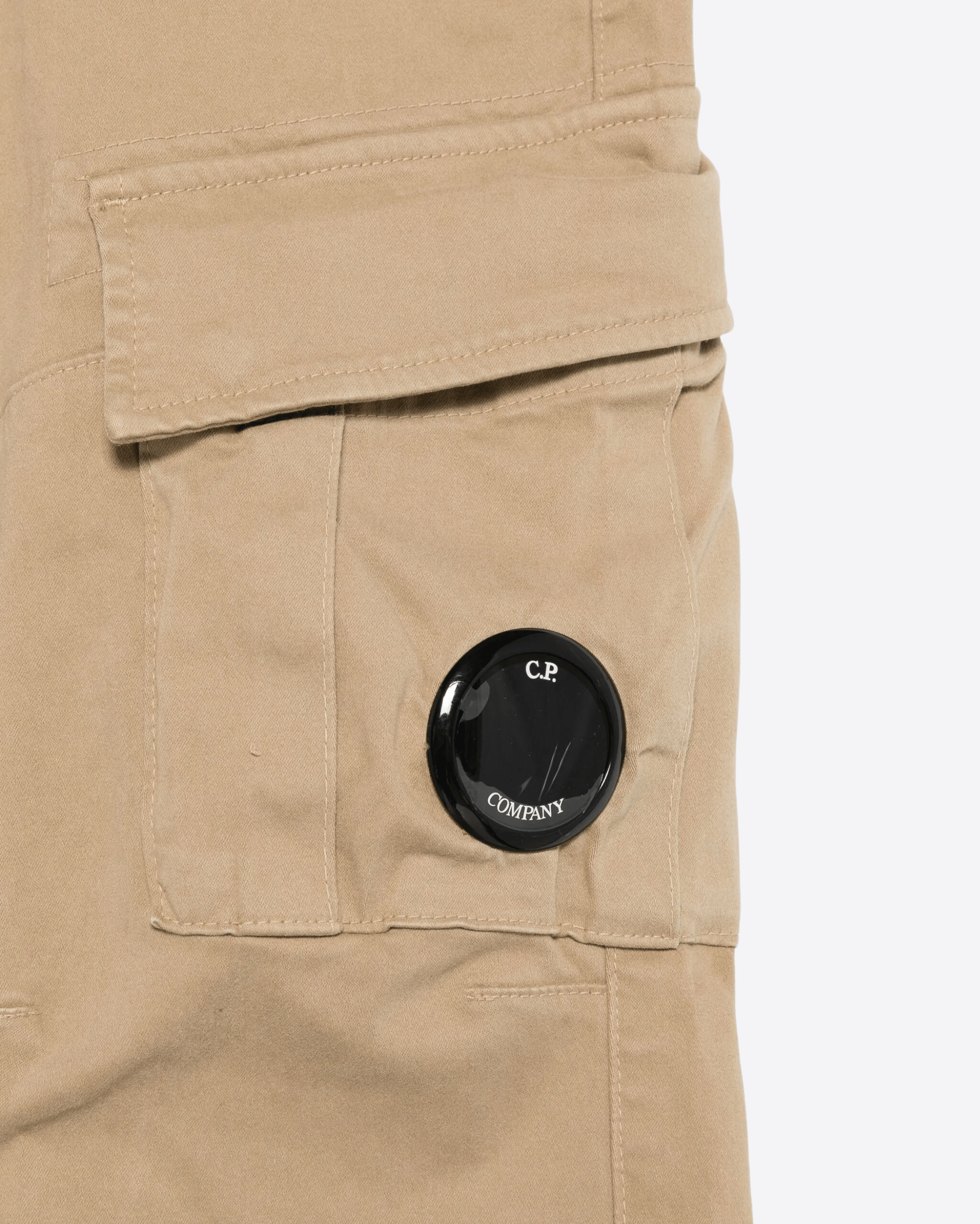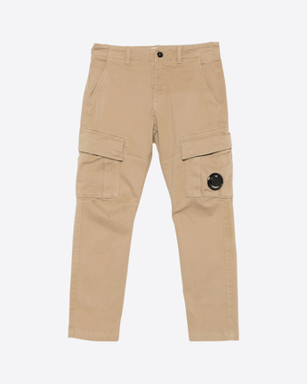 Pantaloni cargo C.P. Company realizzati in cotone beige, caratterizzati da un design funzionale e contemporaneo. Il modello presenta tasche cargo laterali, chiusura con bottoni, passanti per cintura e cuciture a vista che ne esaltano lo stile casual. L’iconico dettaglio Lens con logo distingue il capo, conferendo un tocco autentico e riconoscibile. C.P. Company consiglia di rimuovere eventuali accessori rimovibili prima del lavaggio.