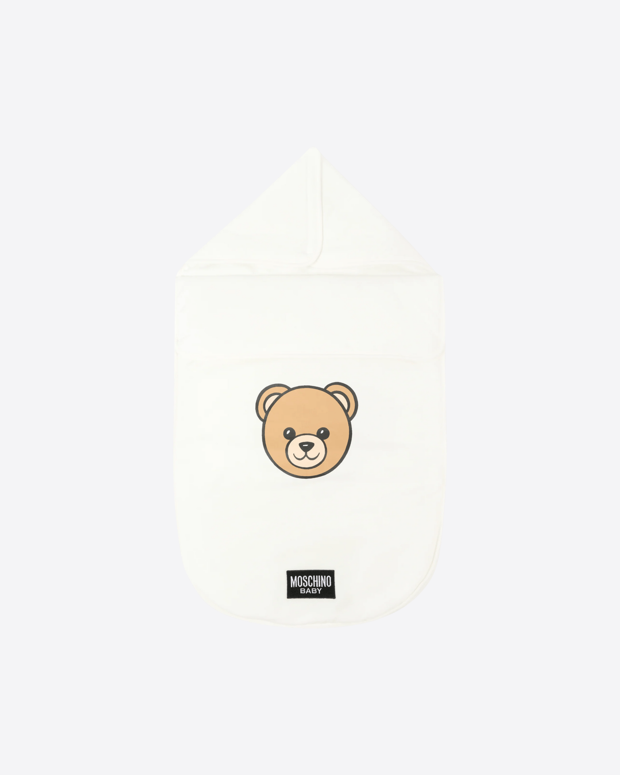 Sacco nanna avorio del brand Moschino Kids, in cotone, leggermente imbottito, con chiusura laterale con zip. È decorato con Teddy Bear e logo, sulla parte anteriore. Dimensioni (L x A): 80cm x43cm