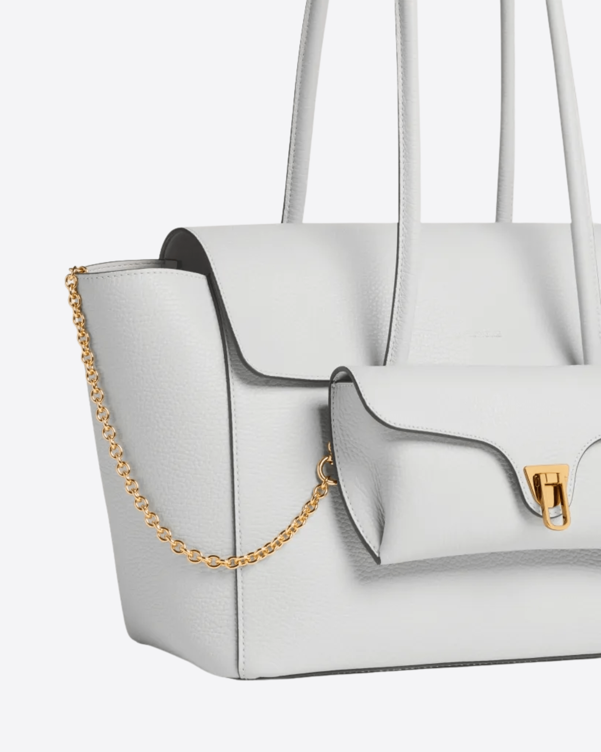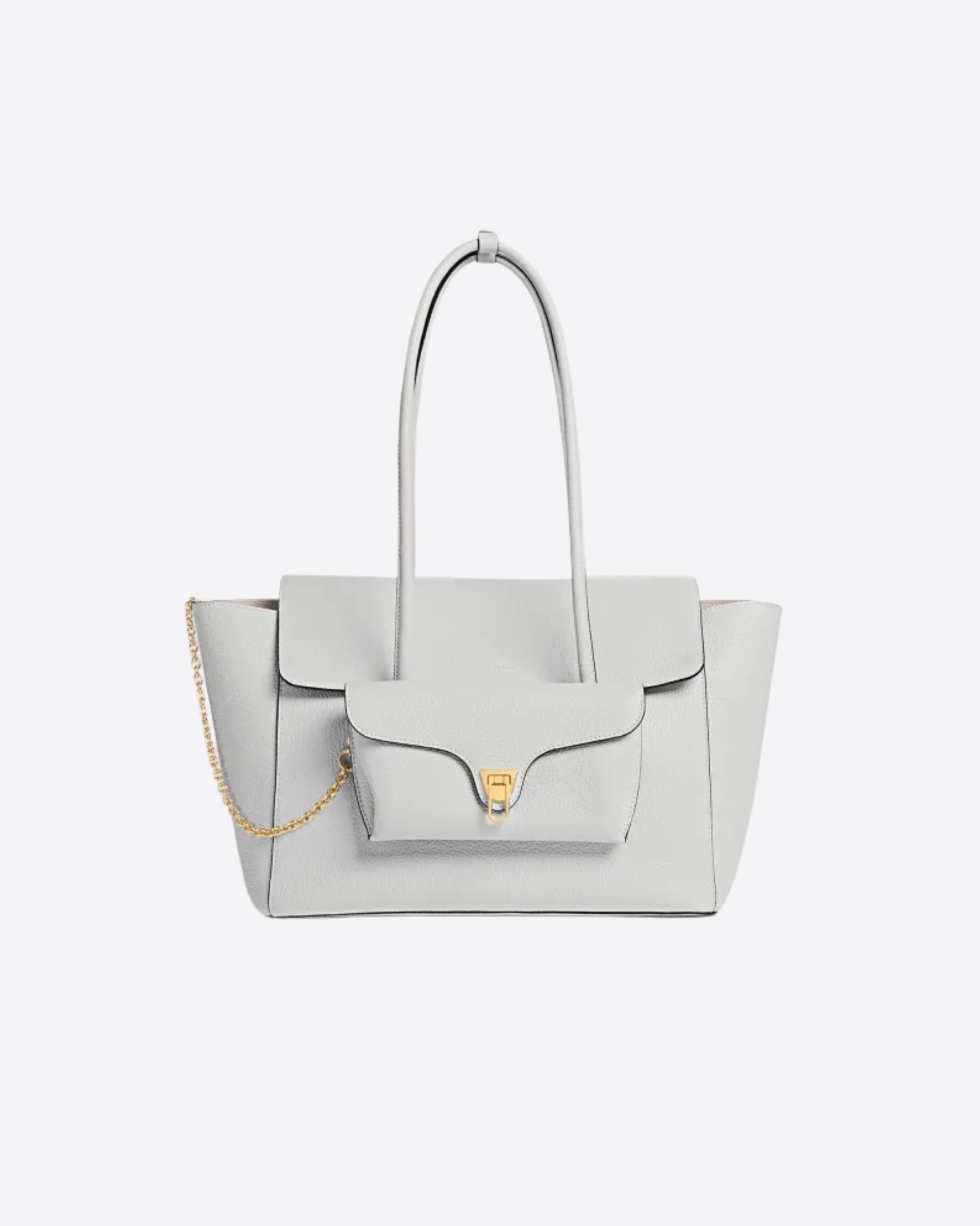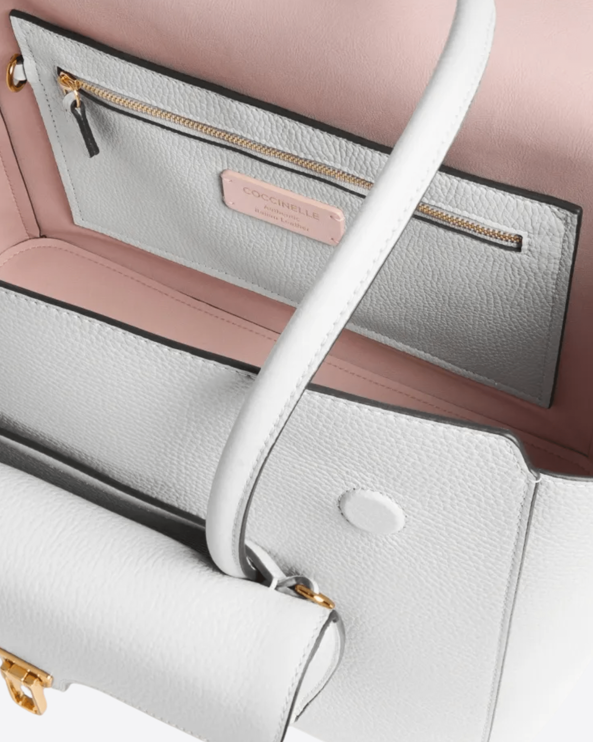 Coccinelle Double Beat è una vera daily companion, una borsa capiente con patta, dotata di pratici manici tubolari per essere indossata comodamente a spalla. Grazie ad un innovativo funzionamento, la tasca frontale è staccabile e si trasforma all’occorrenza in pouch portatutto o in elegante clutch da indossare per le occasioni più speciali. La tasca, infine, è anche simbolo di identità Coccinelle grazie all'iconico dettaglio plettro.