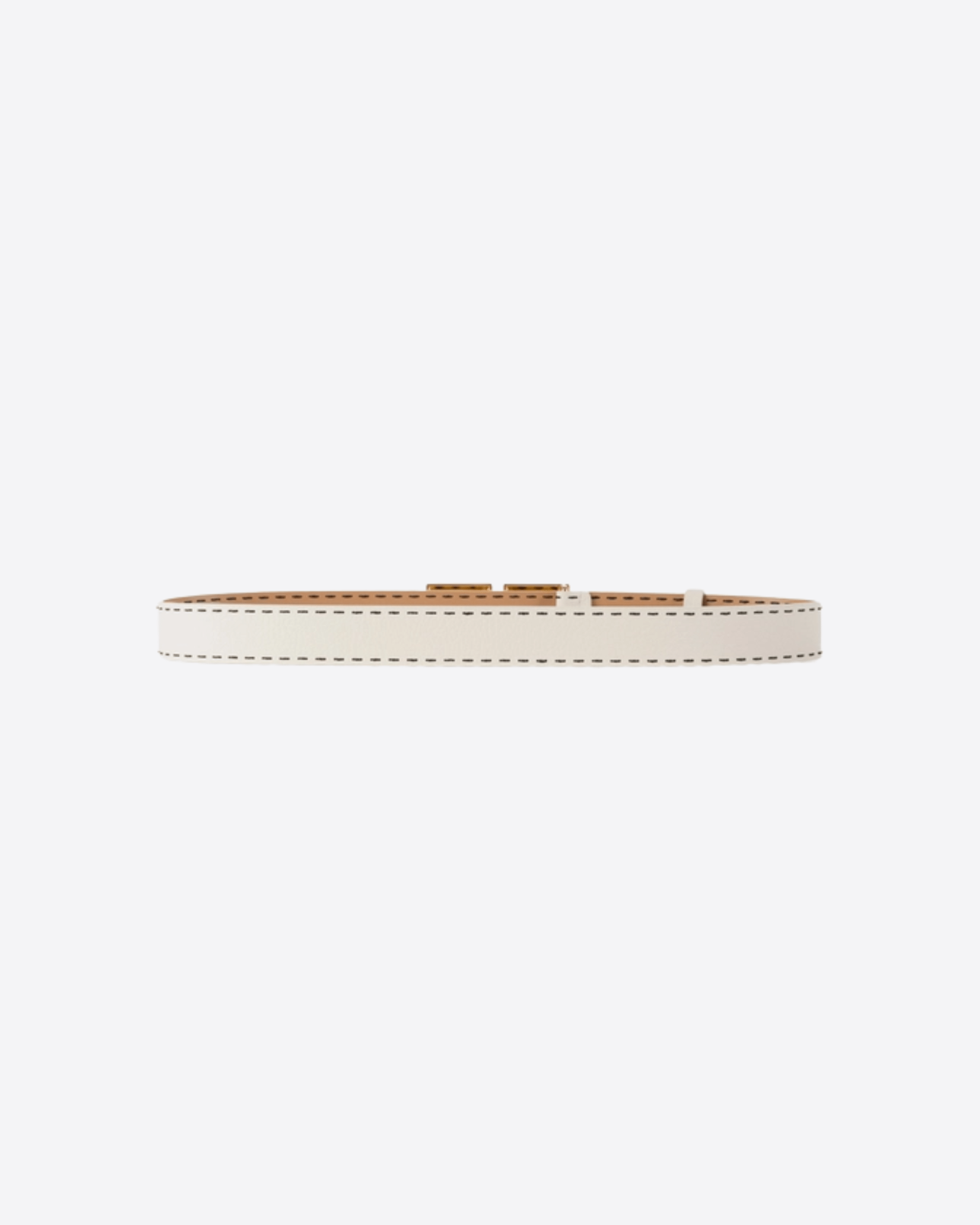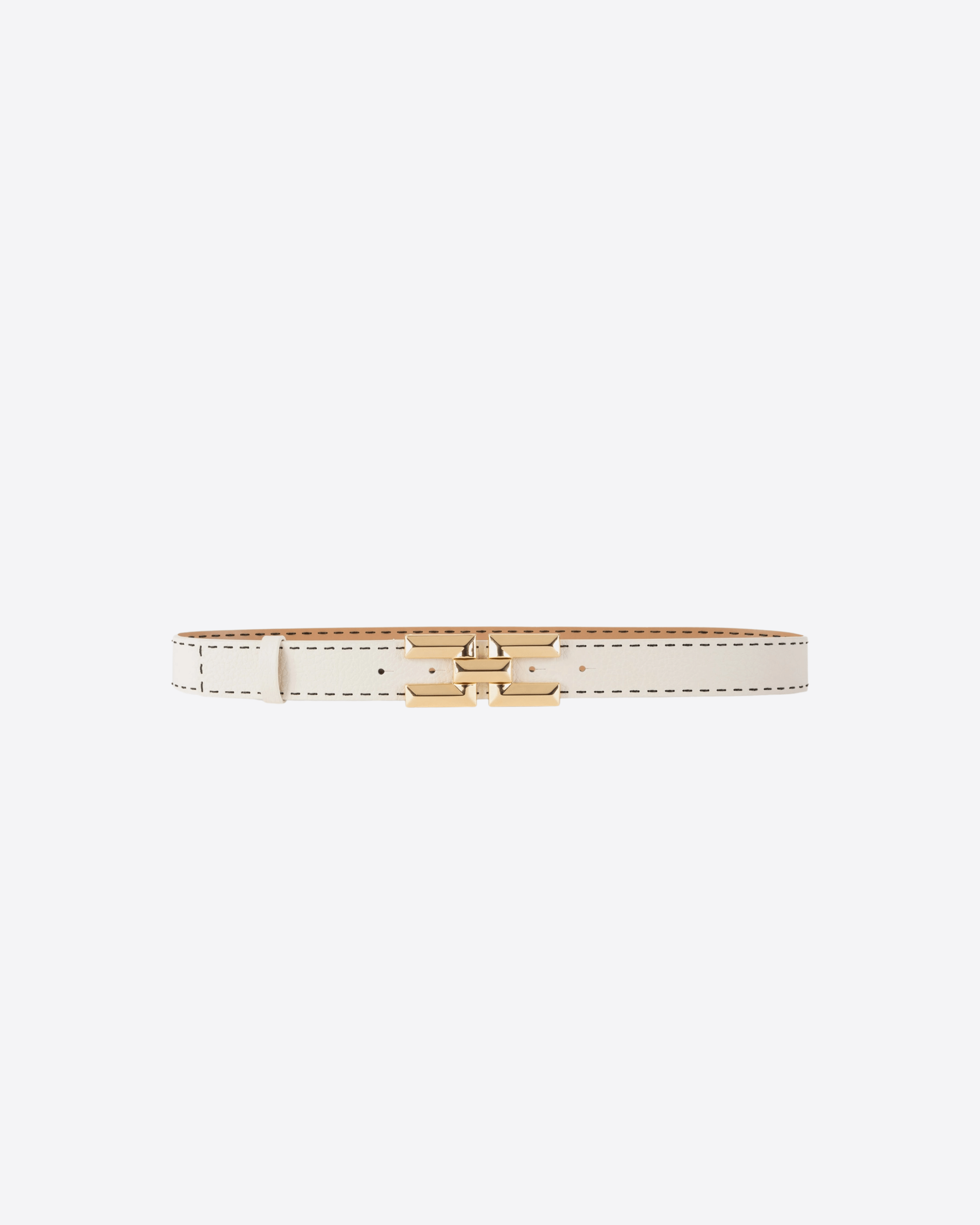 Cintura alta in pelle, arricchita da impunture a contrasto. La placca logo è ricoperta in pelle in tono.