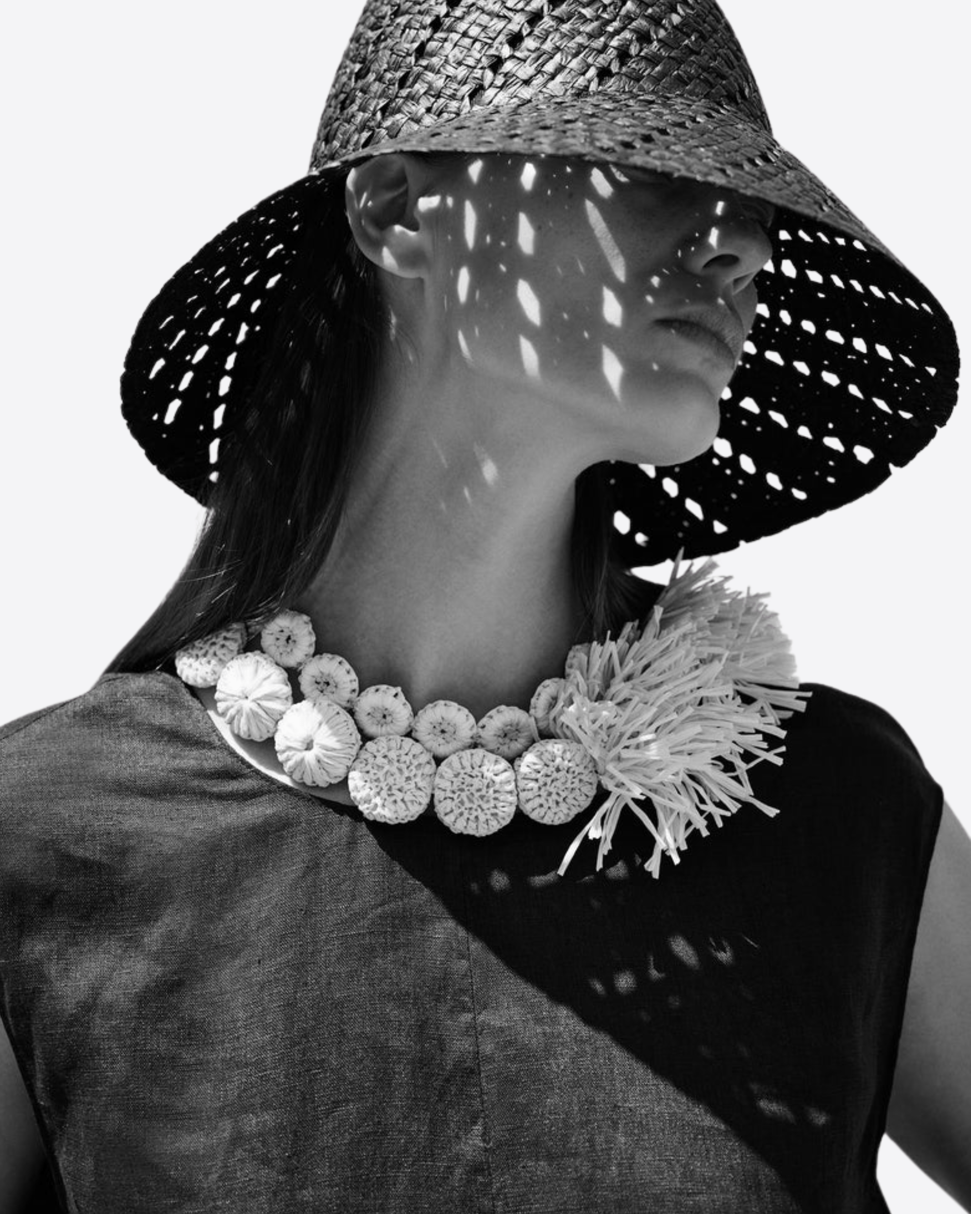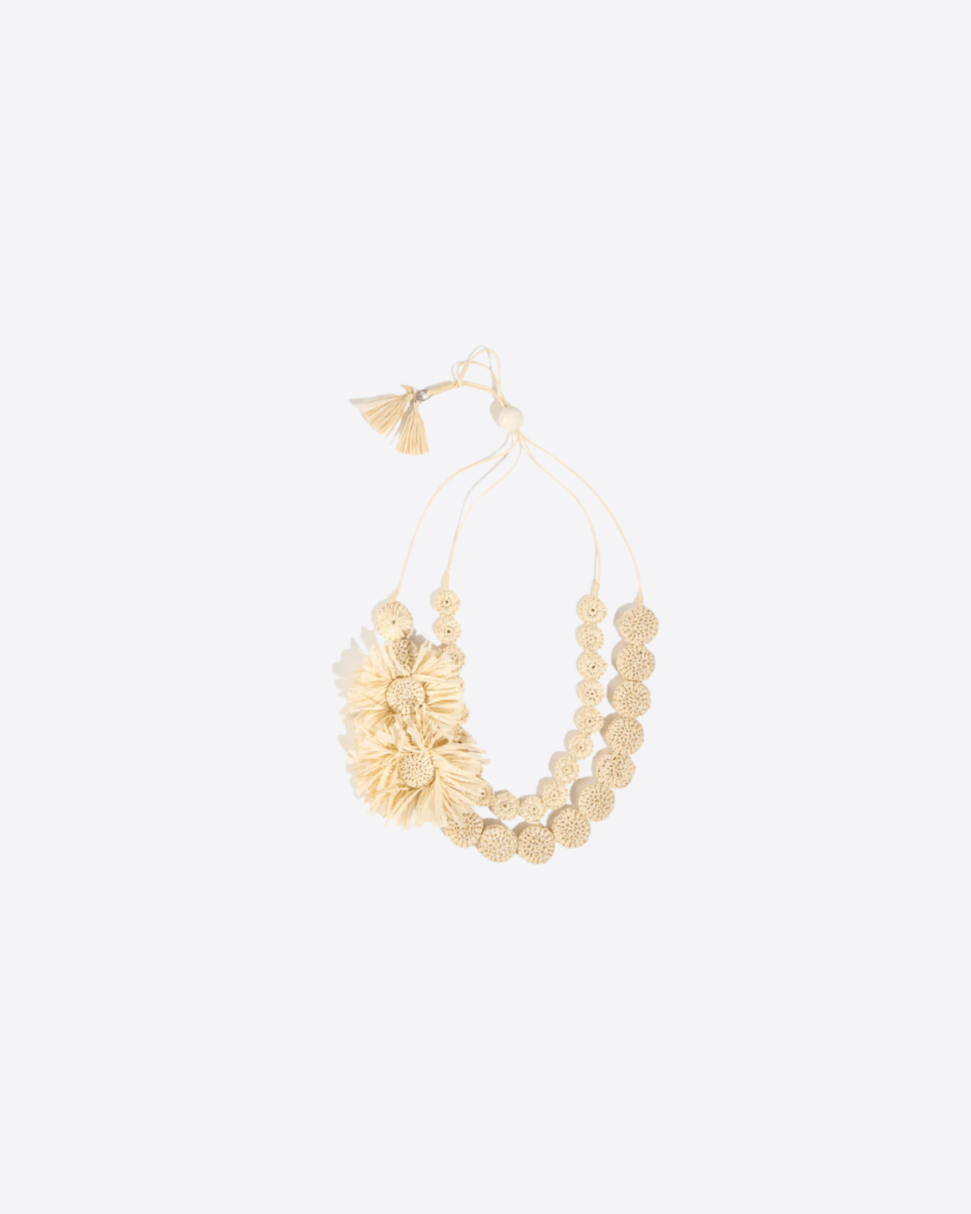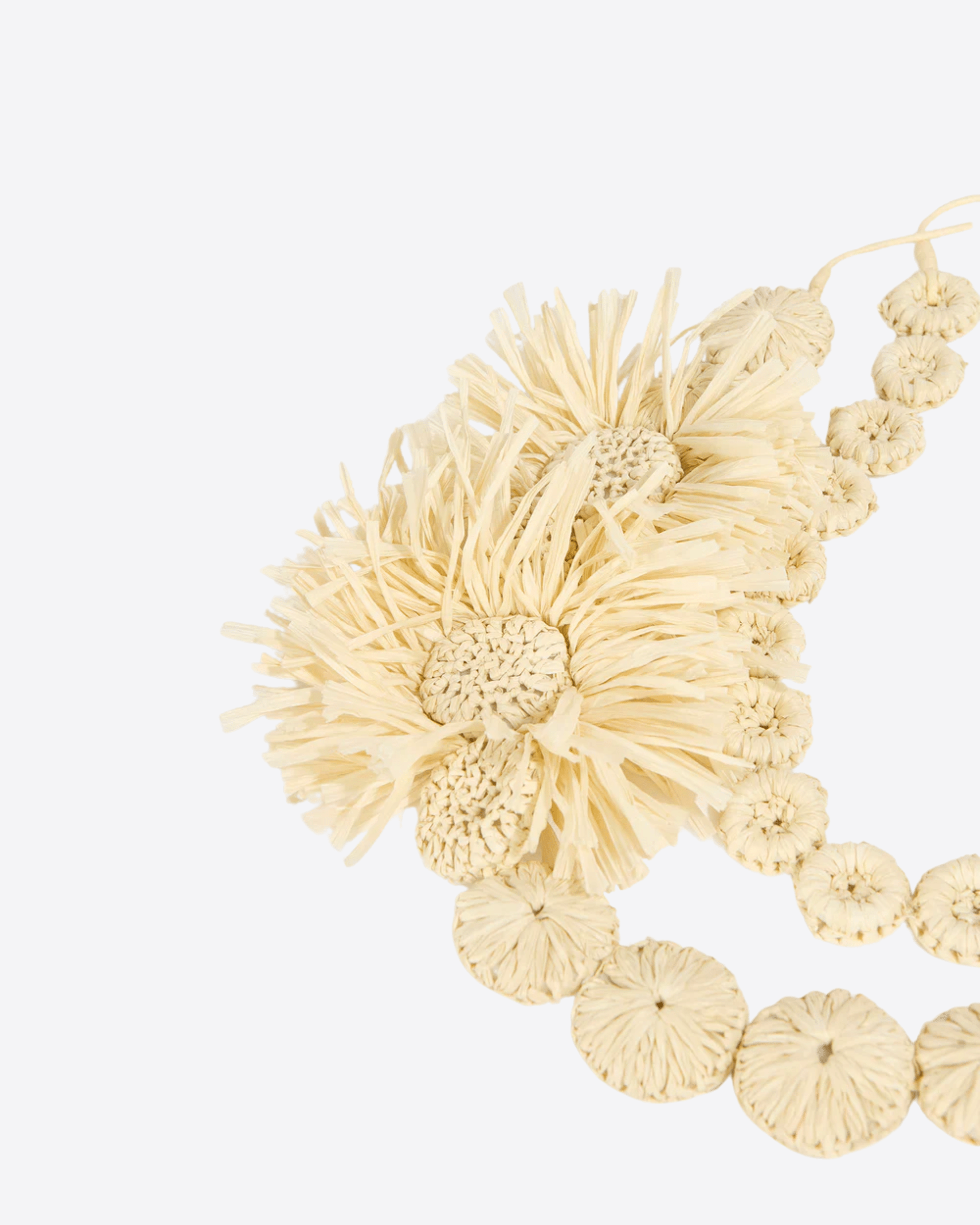 Collana doppio giro con fiori, in rafia naturale lavorata a mano.
