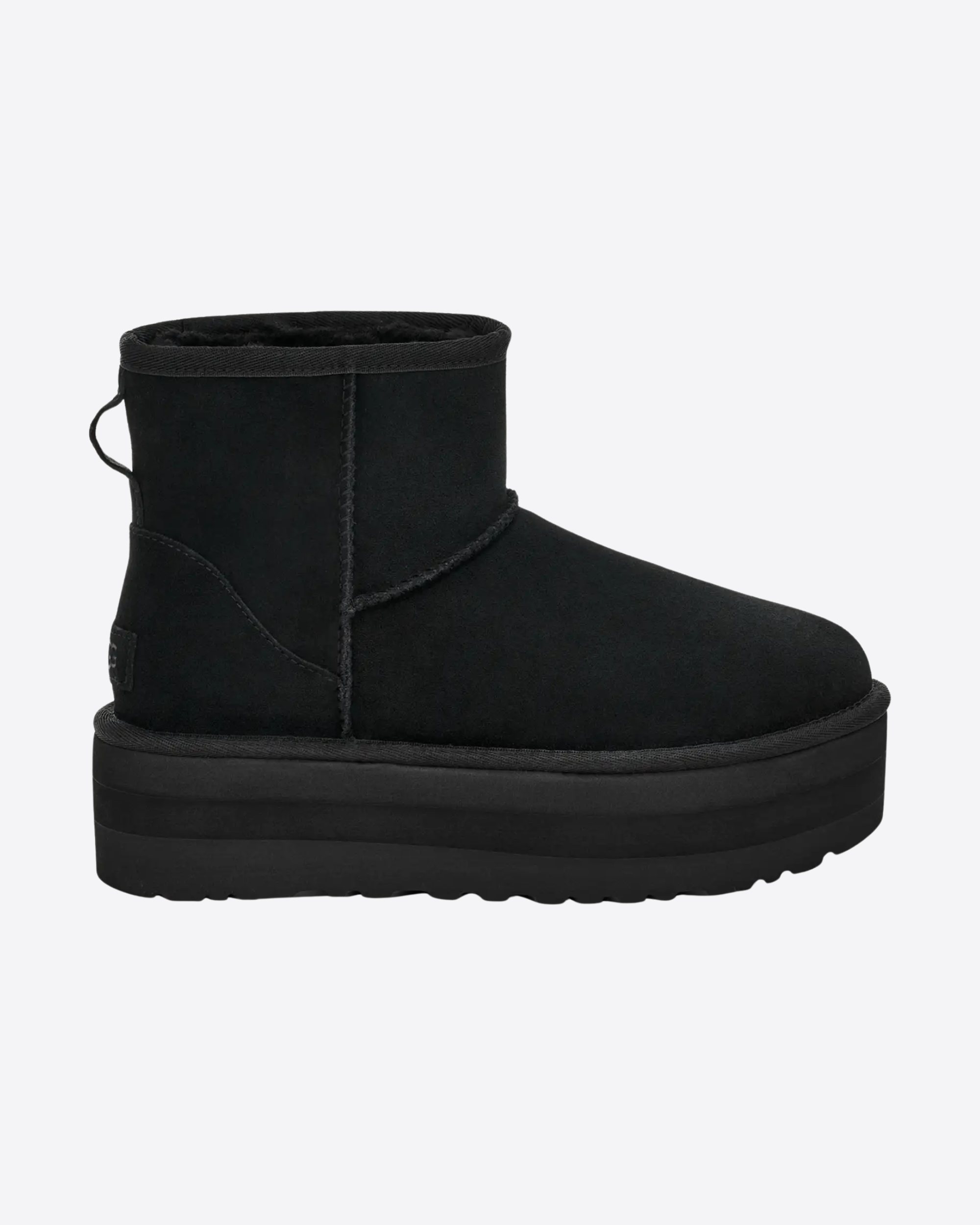 Con un gambale alto 12,7 cm e un plateau da 5,1 cm, questo modello offre un profilo moderno senza rinunciare alla praticità. Completano il look l’iconico logo UGG® e l’etichetta in pelle scamosciata sul tallone in rilievo, simbolo di autenticità e qualità.