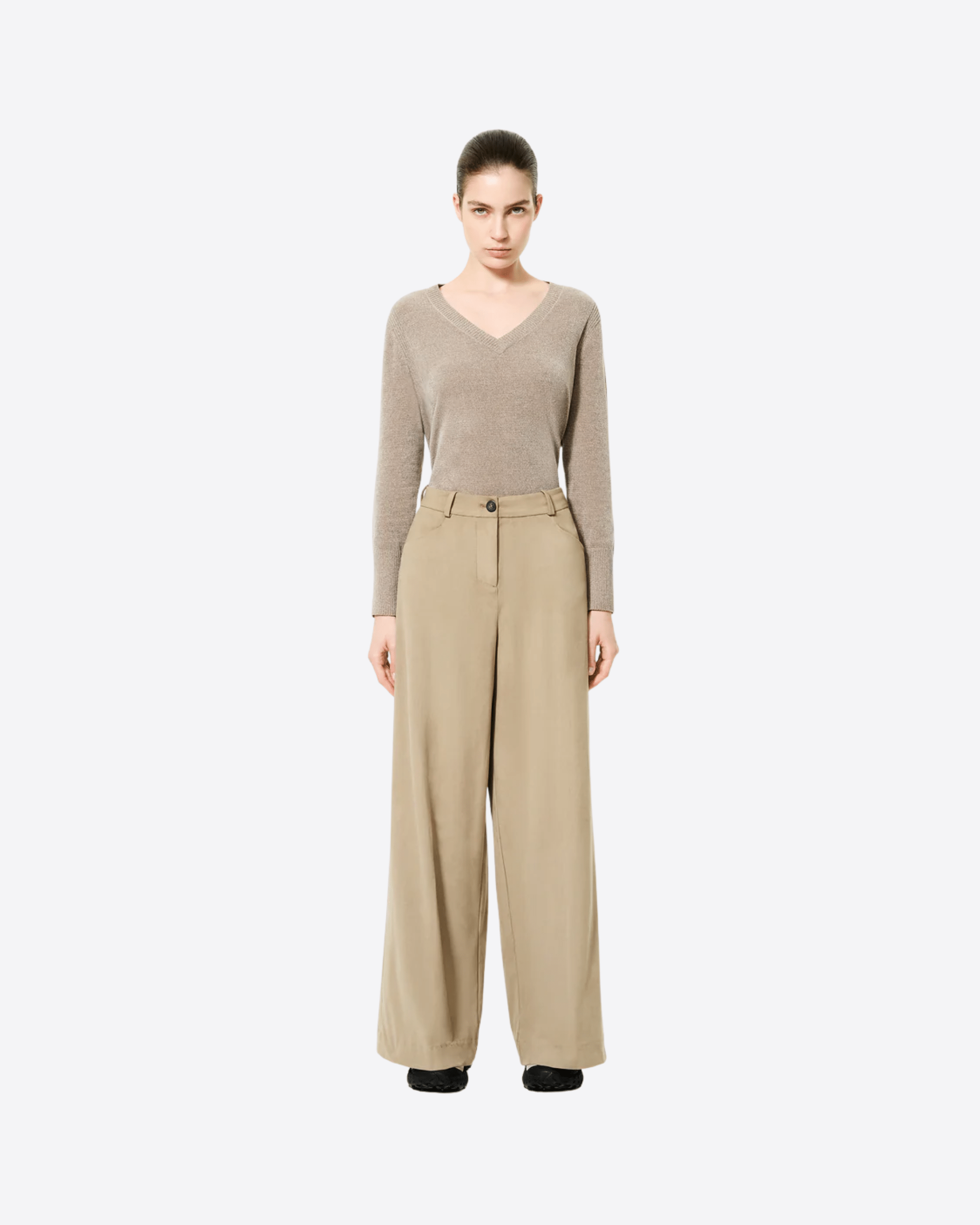 Coniugando disinvoltura e ricercatezza, questi pantaloni palazzo si distinguono per una linea fluida che avvolge la figura con eleganza, offrendo al tempo stesso comfort e libertà di movimento. Il tessuto eco suede elasticizzato, dal raffinato effetto nabuk, dona al capo un aspetto vellutato e una sensorialità morbida al tatto. La costruzione sartoriale, definita dalla vita regolare, dalle tasche alla francese e dalla sottile cintura con passanti, valorizza la silhouette con sobrietà. Proposti in una palette di tonalità stagionali, questi pantaloni si prestano con naturalezza alla creazione di look versatili e distintivi. Ideali per il quotidiano, rivelano tutta la loro versatilità se abbinati a una maglia in ciniglia dal taglio nitido e al Montecristo Thermo Parka Jkt, per un insieme che unisce stile urban e funzionalità.