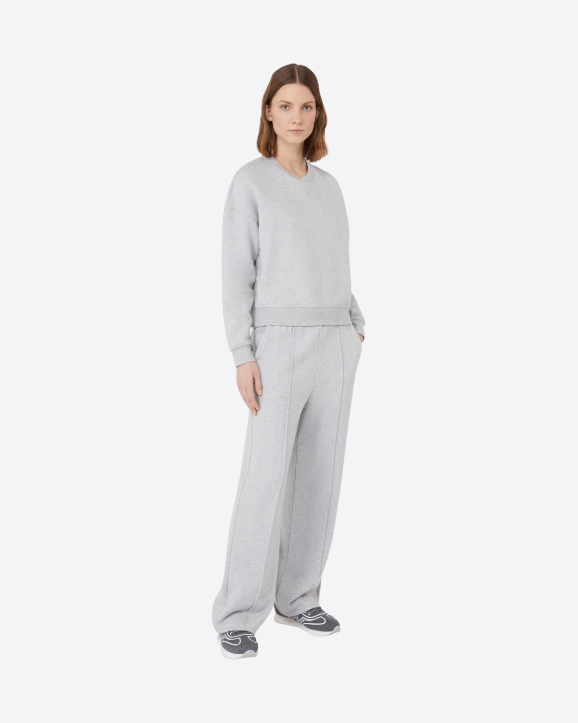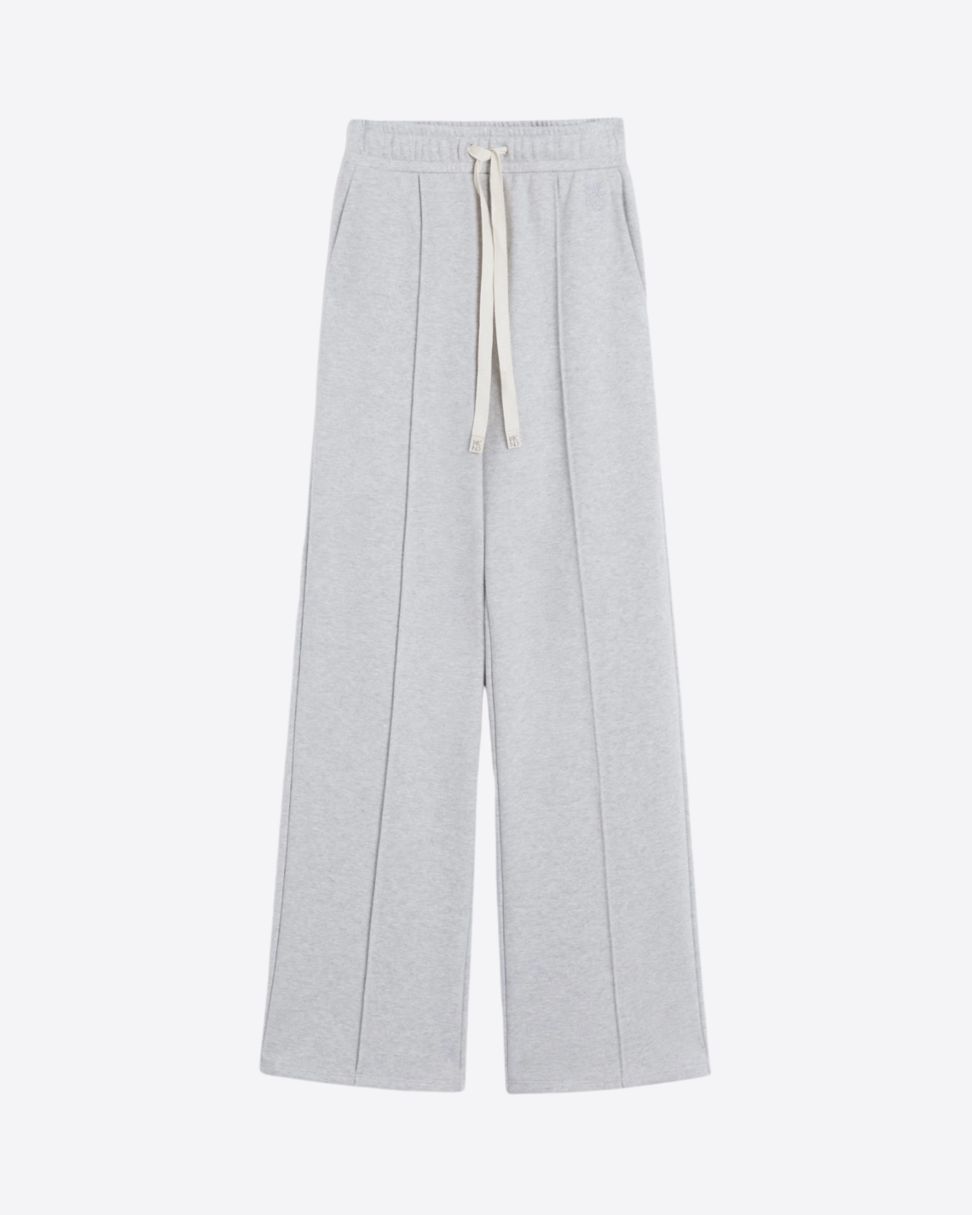 Pantalone dalla texture morbida, con gamba larga e piega cucita sul davanti.