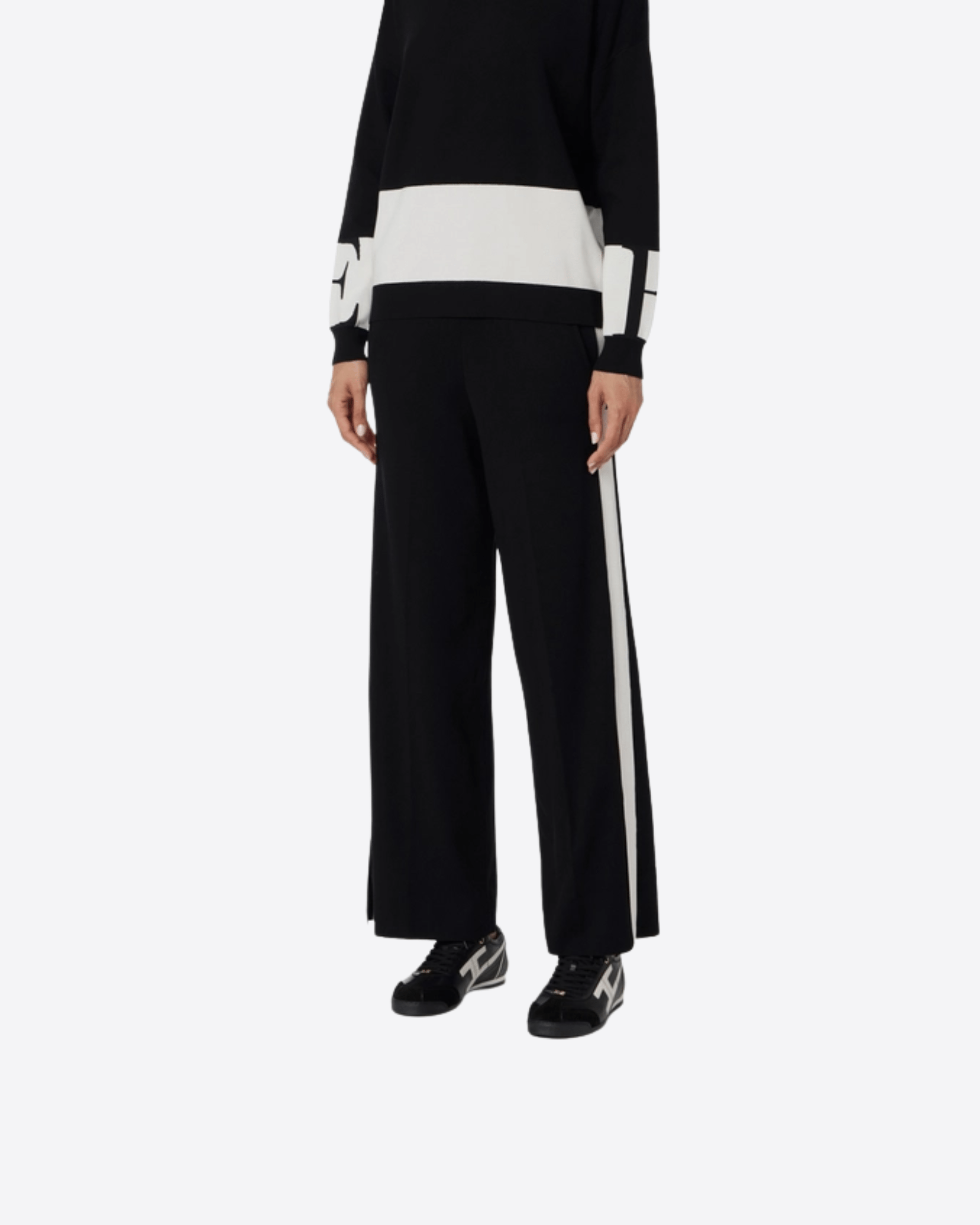 PANTALONI IN VISCOSA CON BANDE LUCIDE