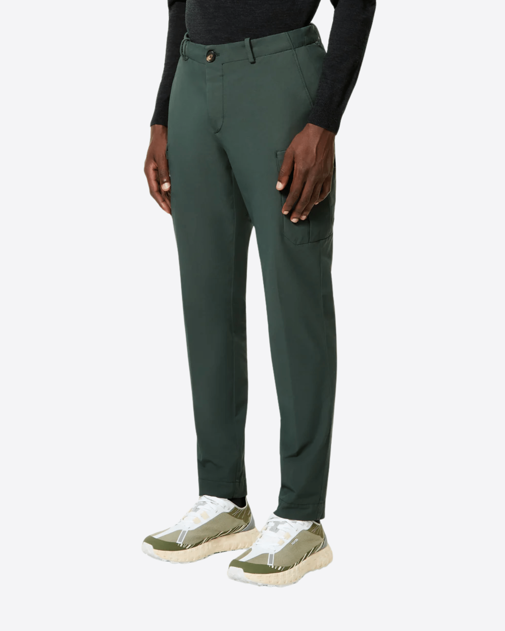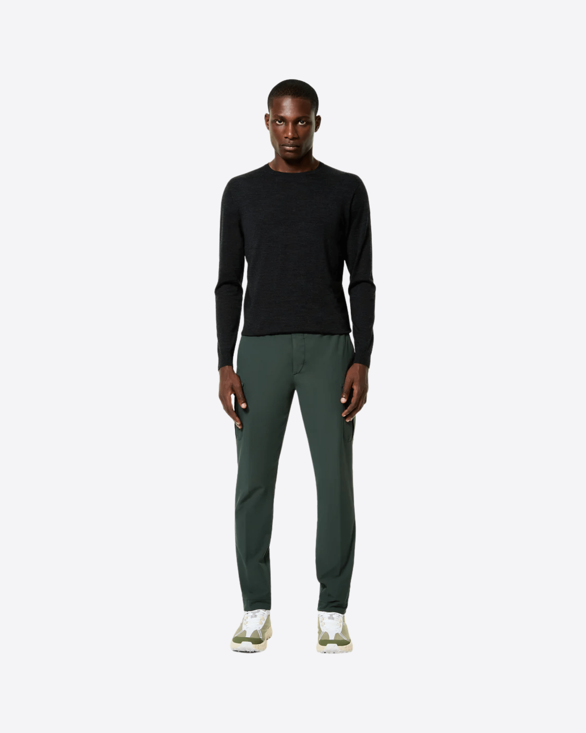 Sintesi di eleganza rilassata e design funzionale, il pantalone cargo è realizzato in tela di cotone elasticizzata, tinta in capo per un delicato effetto vissuto. La linea regolare garantisce una vestibilità agile e naturale, ideale sia nelle giornate intense, sia durante il tempo libero. I dettagli di ispirazione sartoriale, come l’abbottonatura in corno celata dalla patta e le tasche laterali alla francese, conferiscono al modello un'eleganza essenziale. Le tasche applicate con soffietto sulla gamba e le posteriori a filetto, impreziosite dal jacron a contrasto, completano il design con coerenza. All’interno, la fascia in vita rivela la stampa allover tono su tono dell’esclusivo Monogram Razzle Dazzle. Ideale per interpretare diversi look casual contemporanei, Albert Wash Cargo Pant si abbina con facilità alle maglie e ai capispalla della Collezione.
