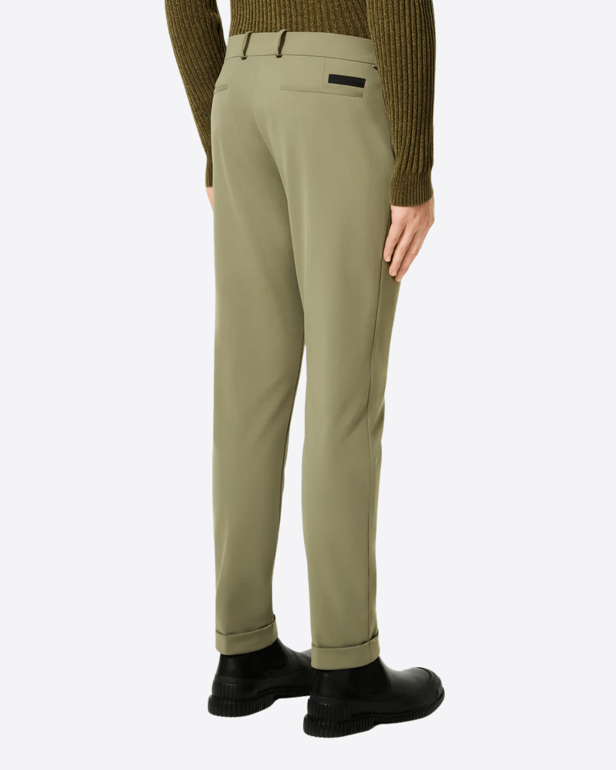 I pantaloni chino invernali dal fit regolare e dalla gamba dritta, con risvolto alla caviglia, si distinguono per il touch estremamente morbido e confortevole dell'esclusivo tessuto stretch SURFLEX® smerigliato. Il look opaco tipico della gabardina è valorizzato dalla costruzione classica, con la vita a passanti e la chiusura a zip nascosta dalla patta. Il modello presenta le tasche anteriori alla francese e le posteriori a filetto, impreziosite dall'inconfondibile logo a microiniezione nero. La fascia interna è stampata nel Monogram Razzle Dazzle e sottolineata dalla termonastratura "Made with love, designed in Tuscany". Le qualità antipiega ed easy care rendono il chino una scelta ideale per le lunghe giornate in ufficio e nelle occasioni formali, oltre che un affidabile compagno di viaggio, nel completare un blazer coordinato in un outfit professionale distintivo.