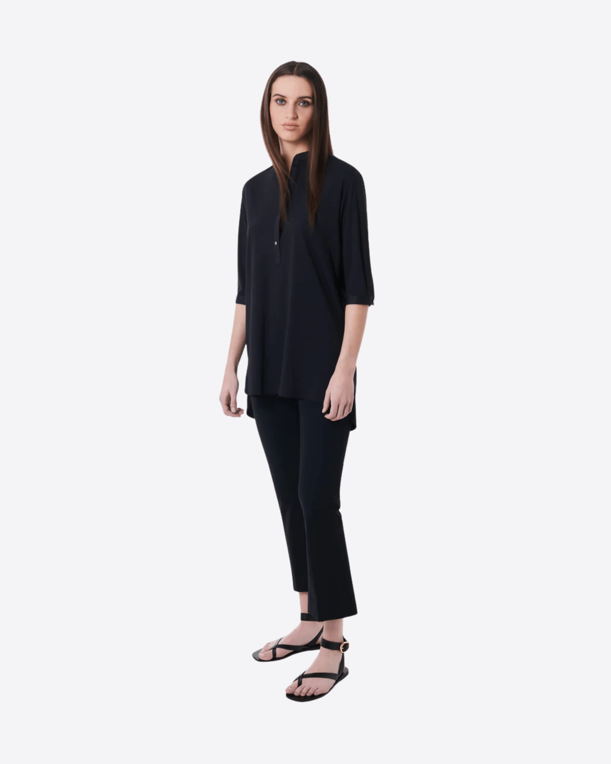 La camicia con maniche a tre quarti si distingue per il suo design raffinato e lineare, caratterizzato dal colletto alla coreana che aggiunge un tocco di modernità. Il modello realizzato in morbido e leggero Oxford, fresco e traspirante, presenta un'estetica pulita ed essenziale. La chiusura frontale è impreziosita dai delicati bottoni in madreperla, un dettaglio discreto ma sofisticato che esalta l’eleganza del capo. Oxford Kor Wom Shirt diventa una scelta versatile per la stagione estiva quando si sceglie di unire lo stile al comfort, perfetta su un paio di pantaloni classici per un look più formale, o sui Marina Joanie Wom Pant per uno stile casual-chic.