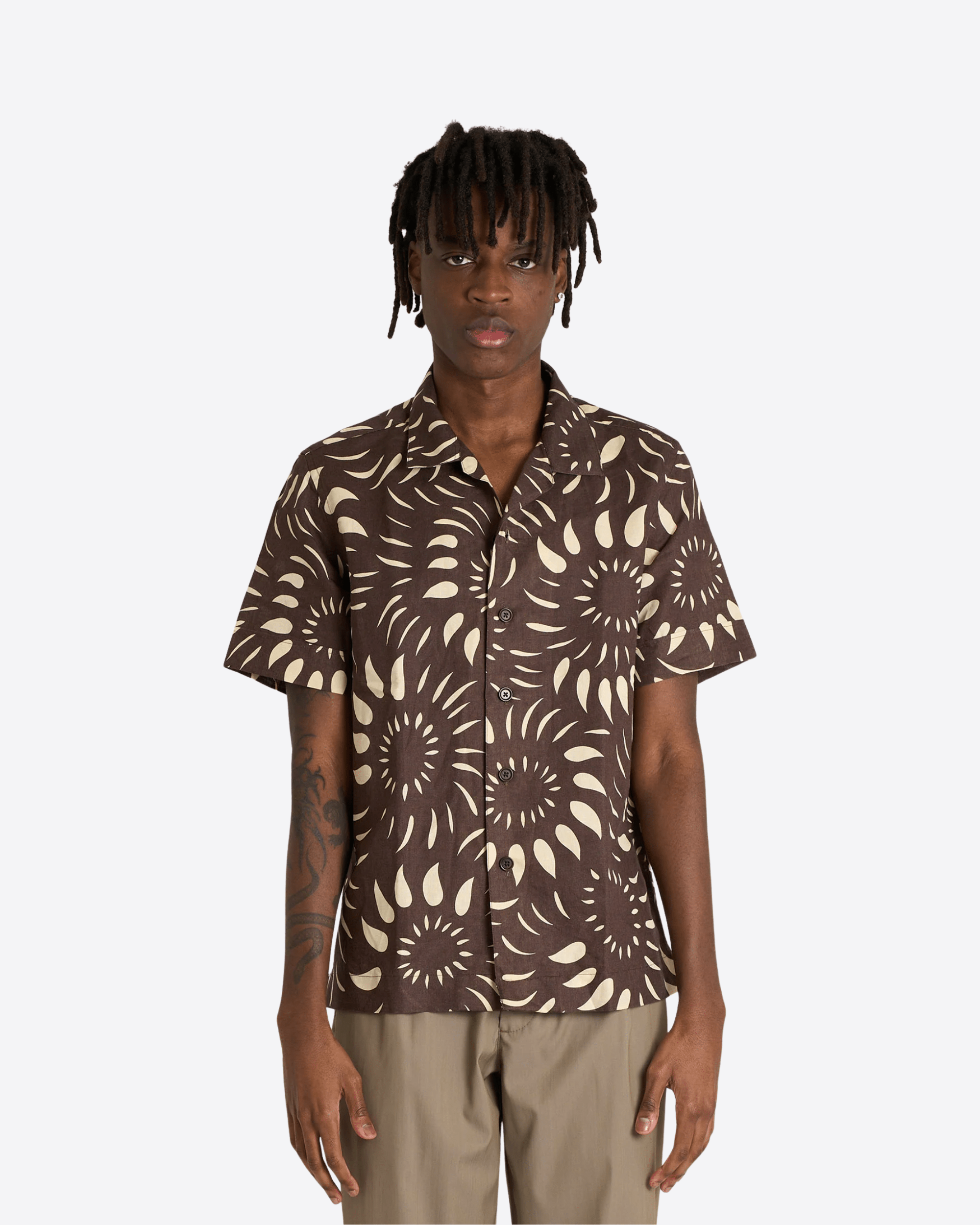 Camicia regular fit in lino stampato a fantasia caratterizzata da collo hawaii