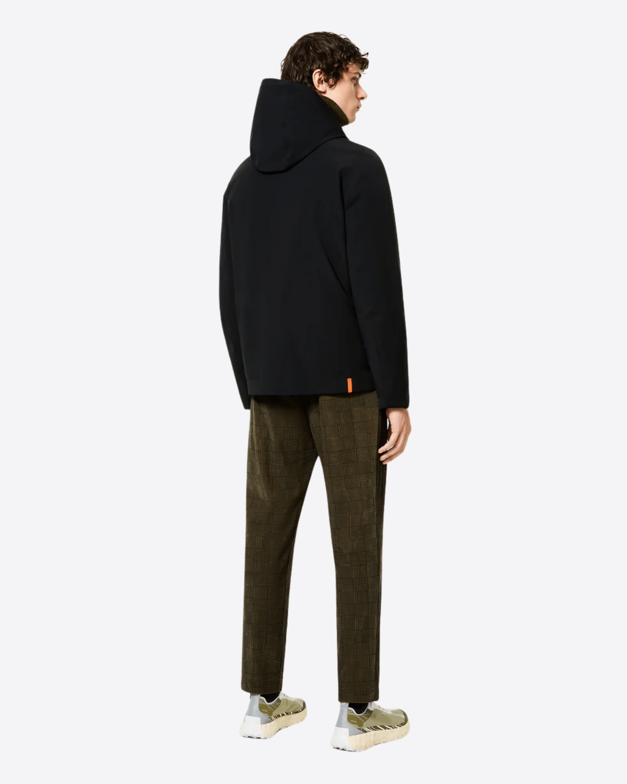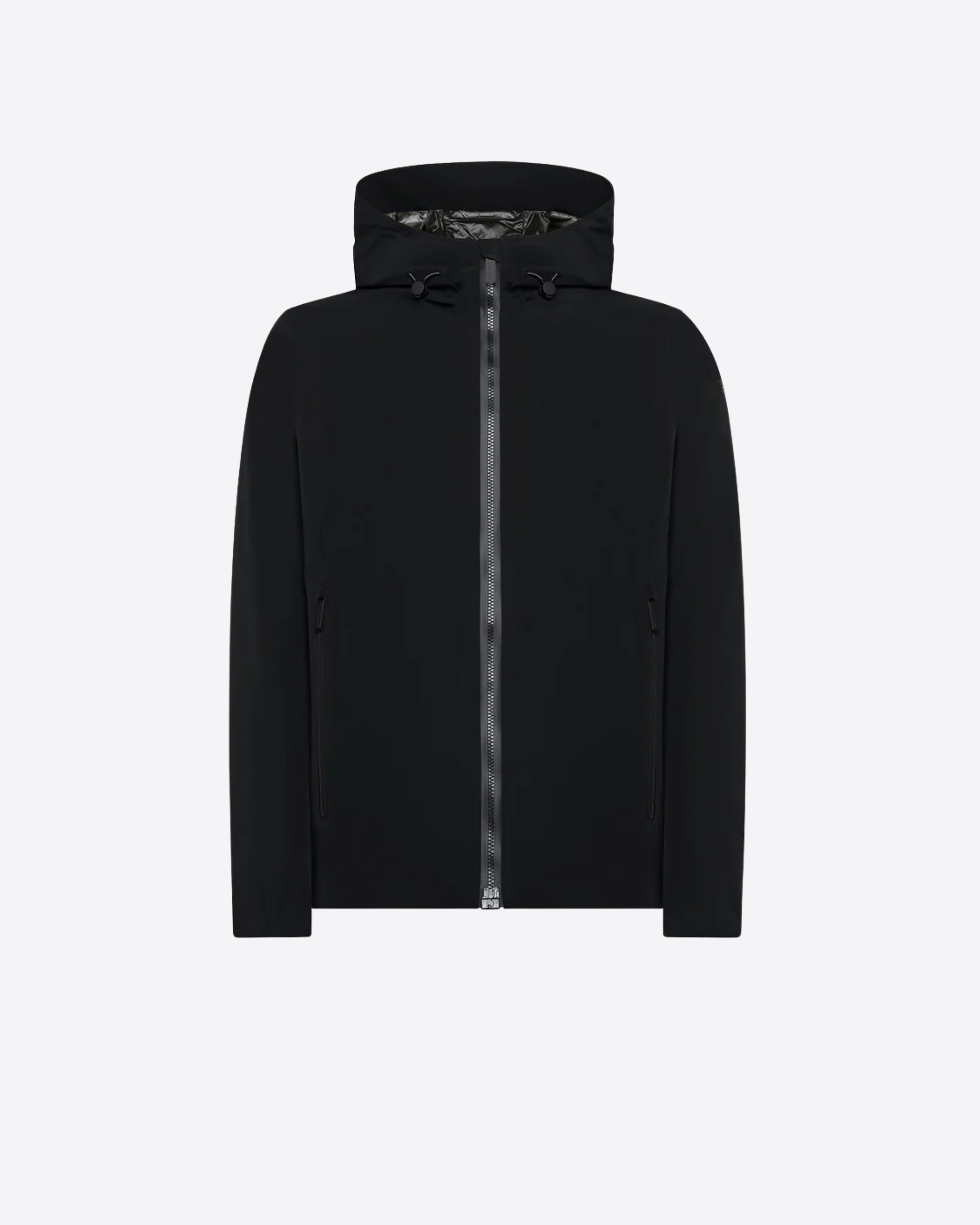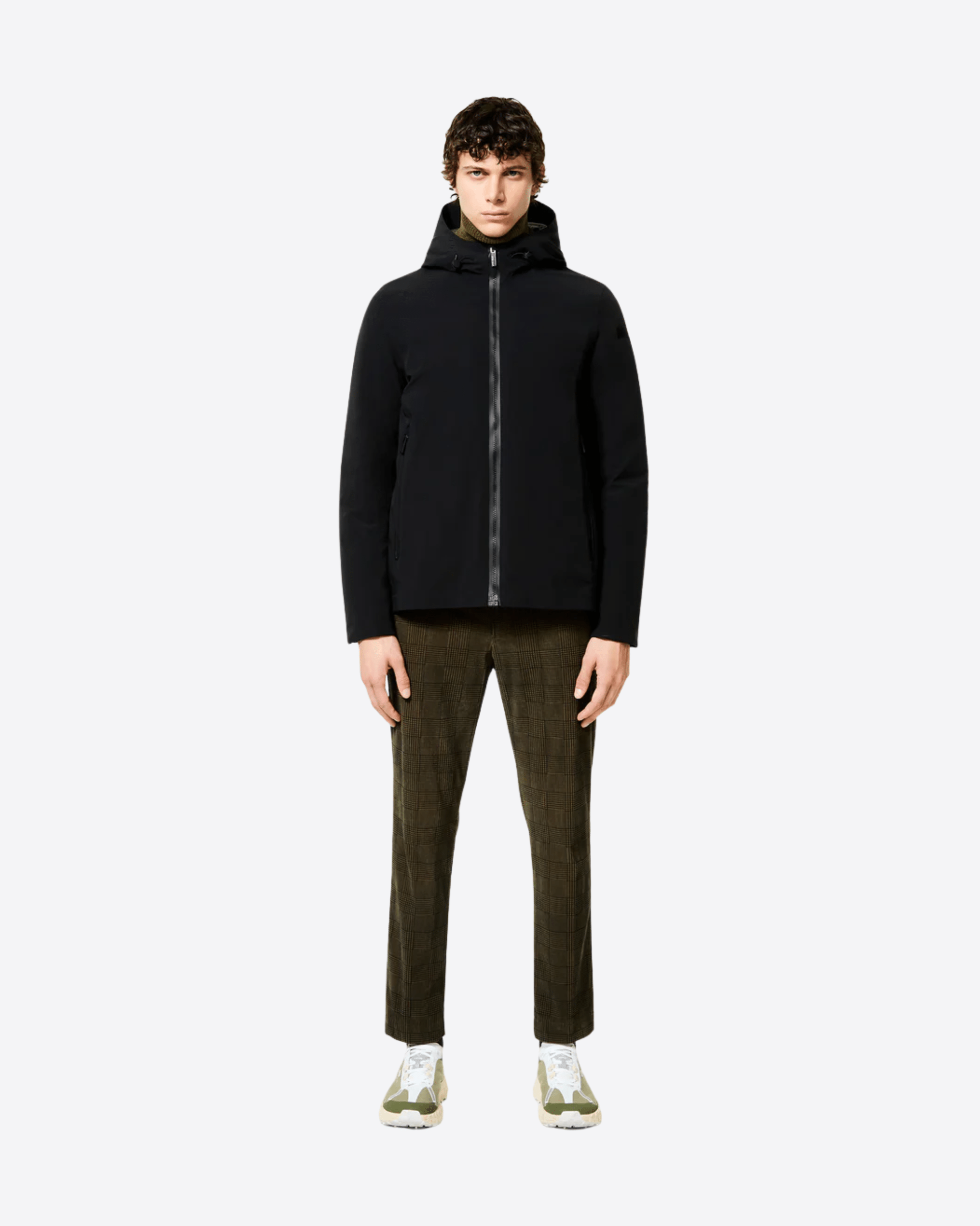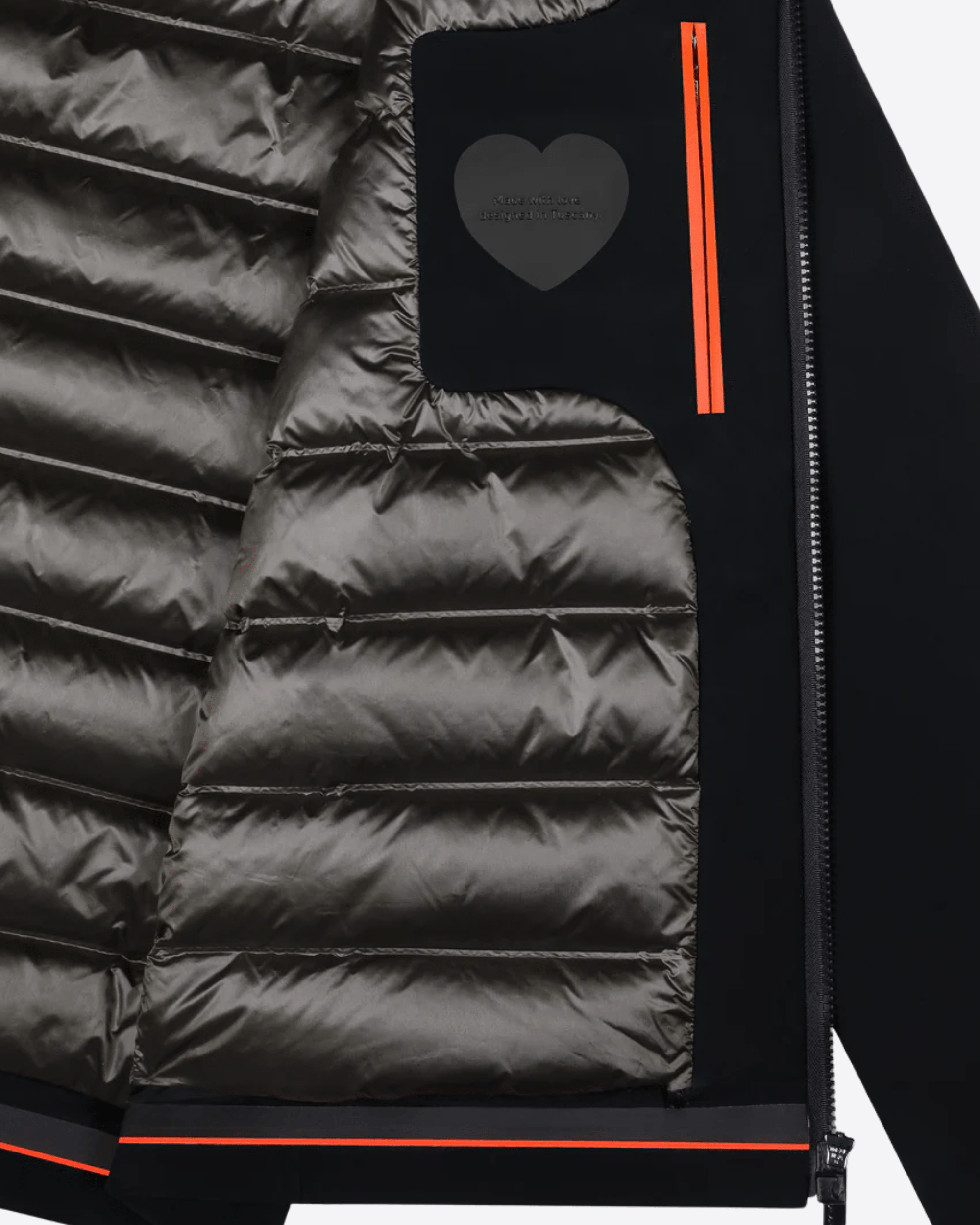 La tradizionale giacca cerata fisherman si evolve in una giacca invernale agile e contemporanea, grazie al design minimalista e alla ricerca dei materiali hi-tech. Caldo e leggero da indossare, il capospalla dal fit asciutto si distingue per l'essenzialità dello stile e la raffinatezza della costruzione interamente termonastrata, che la rende a prova di pioggia e di vento. ll tessuto a membrana Stratofabric#3, elasticizzato e traspirante, presenta il look super opaco dell'esterno in Montecristo, che enfatizza la pulizia delle linee. Il davanti è slanciato dalla zip a chiusura magnetica, che sale a chiudere il colletto verticale e il cappuccio avvolgente imbottito, dotato di frontino e regolabile a cordini elastici. Le ampie tasche laterali sono chiuse dalle zip termonastrate. Il calore è assicurato dalla soffice imbottitura in piuma d'anatra 90/10, contenuta nei canali tubici dell'esclusivo sistema Floating Shield, che assicura elevato comfort e una vestibilità perfetta. L'interno presenta un taschino con zip invisibile, impreziosito dal doppio filetto arancione fluo e dall'iconica tag a cuore "Made with love, designed in Tuscany". Il logo a microiniezione nero sulla manica sinistra completa il capospalla versatile e performante.