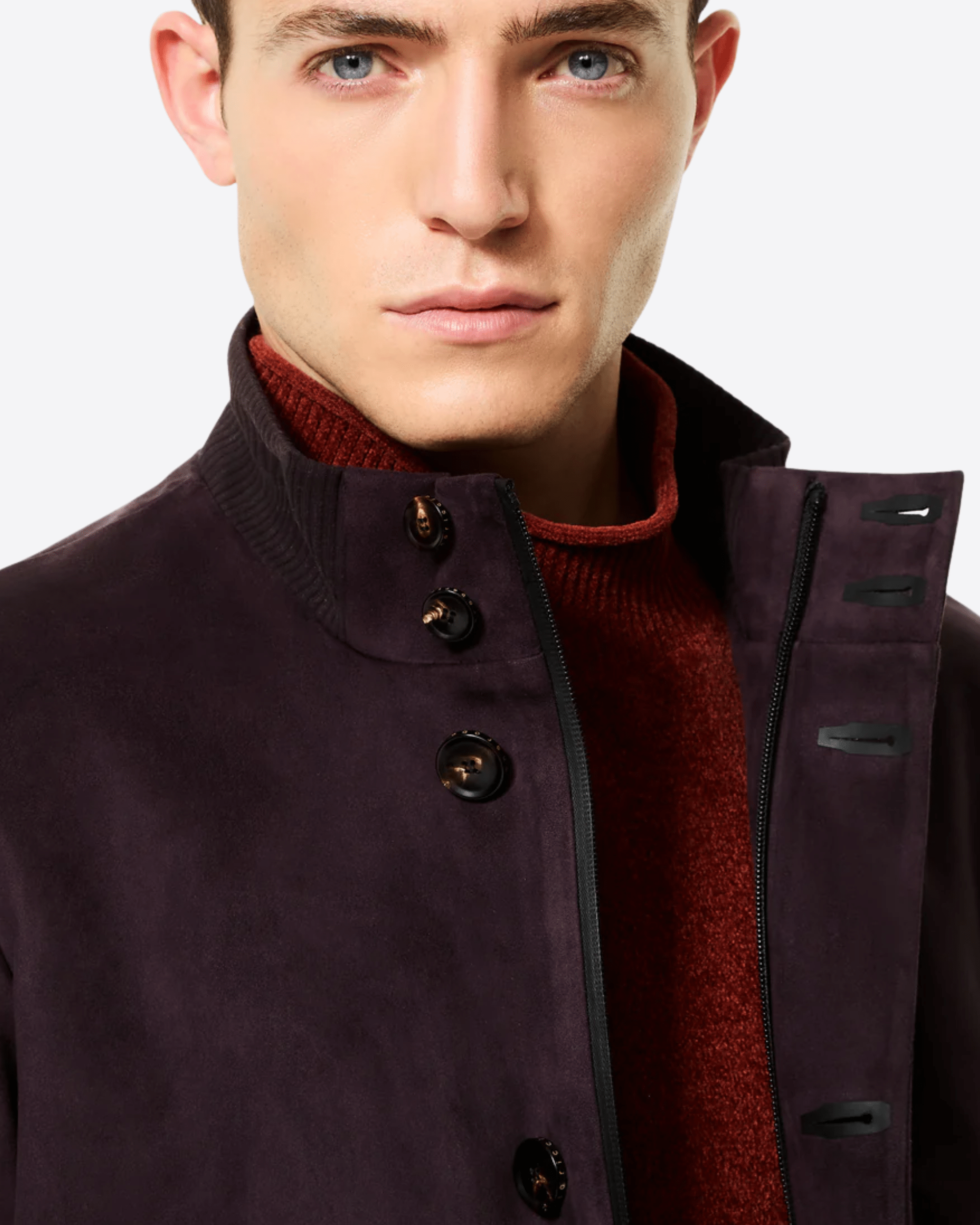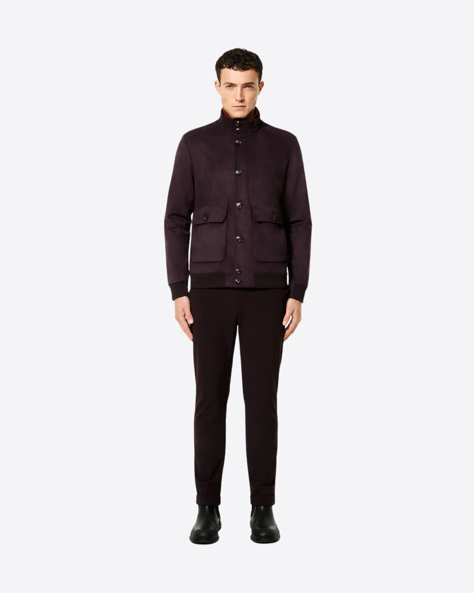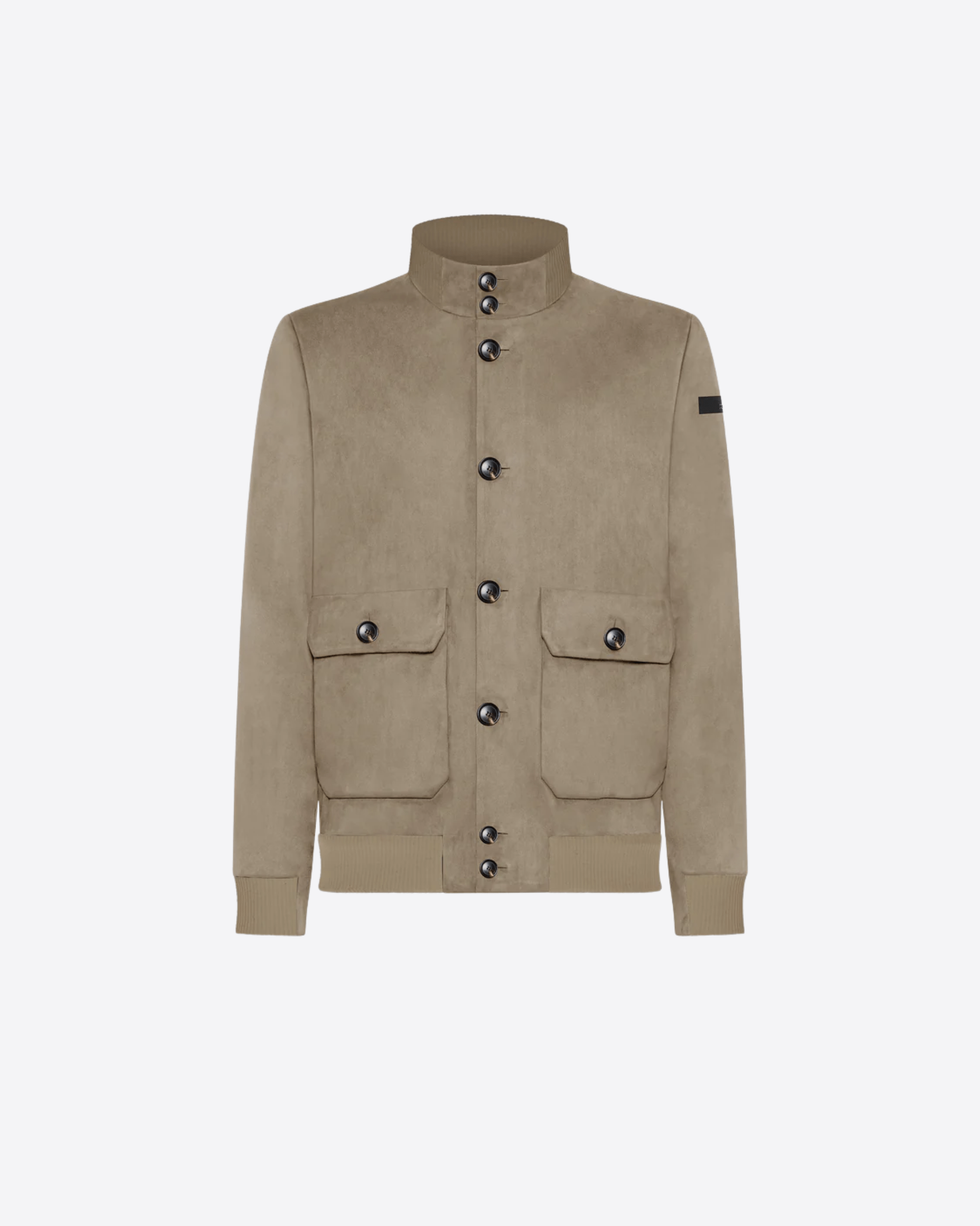 Con un'eleganza discreta che richiama l’estetica riconoscibile degli anni 60, questa giacca di mezza stagione interpreta in chiave attuale un classico intramontabile. Il tessuto tecnico eco suede, dalla mano vellutata e dall’effetto nabuk opaco, conferisce al capo un aspetto raffinato e insieme funzionale, evocando il design vintage con uno sguardo contemporaneo. La costruzione è arricchita da dettagli emblematici: l’abbottonatura in corno aggiunge un tocco di ricercatezza, mentre i generosi tasconi laterali con pattina interpretano con coerenza l’ispirazione del modello. Il fit regolare è perfezionato dalle finiture in maglina elasticizzata su colletto, polsi e fondo. Il taschino interno è rifinito da un doppio filetto arancio fluo e dalla tag a cuore “Made with love, designed in Tuscany”. Il logo nero a microiniezione sulla manica sinistra completa un capo disponibile in una palette di raffinati toni di stagione, ideale per accompagnare con stile il tempo libero in un casual look rilassato ma attento ai dettagli, in perfetto equilibrio tra ispirazione retrò e contemporaneità.