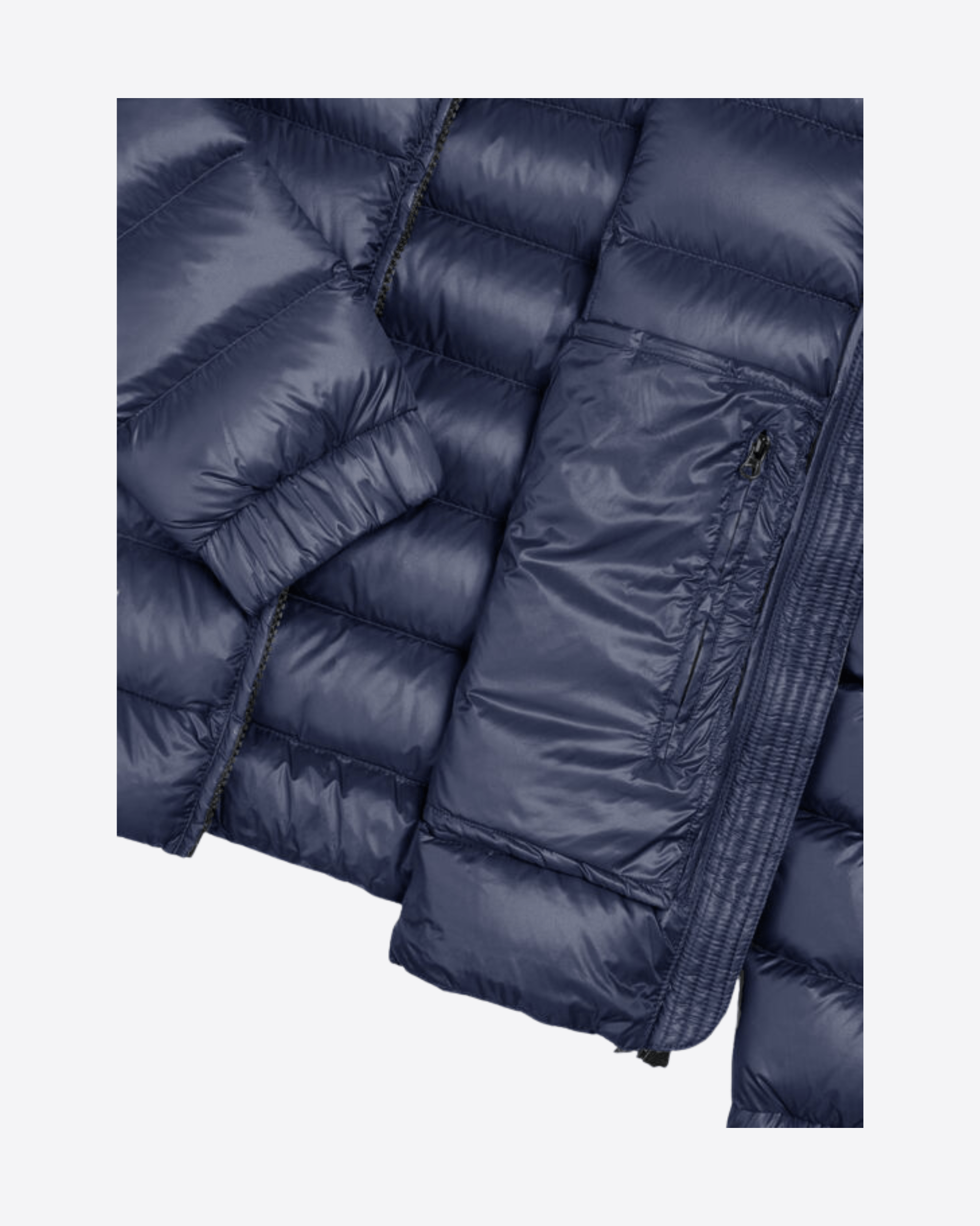 Con un tocco distintivo dato dal tessuto lucido, questo piumino è ideale per il quotidiano. Il cappuccio e le tasche laterali garantiscono protezione dal freddo, mentre la brillantezza del colore aggiunge un tocco di stile. I polsini elasticizzati e la coulisse sul fondo completano il design, mentre il logo tono su tono ne esalta la raffinatezza.