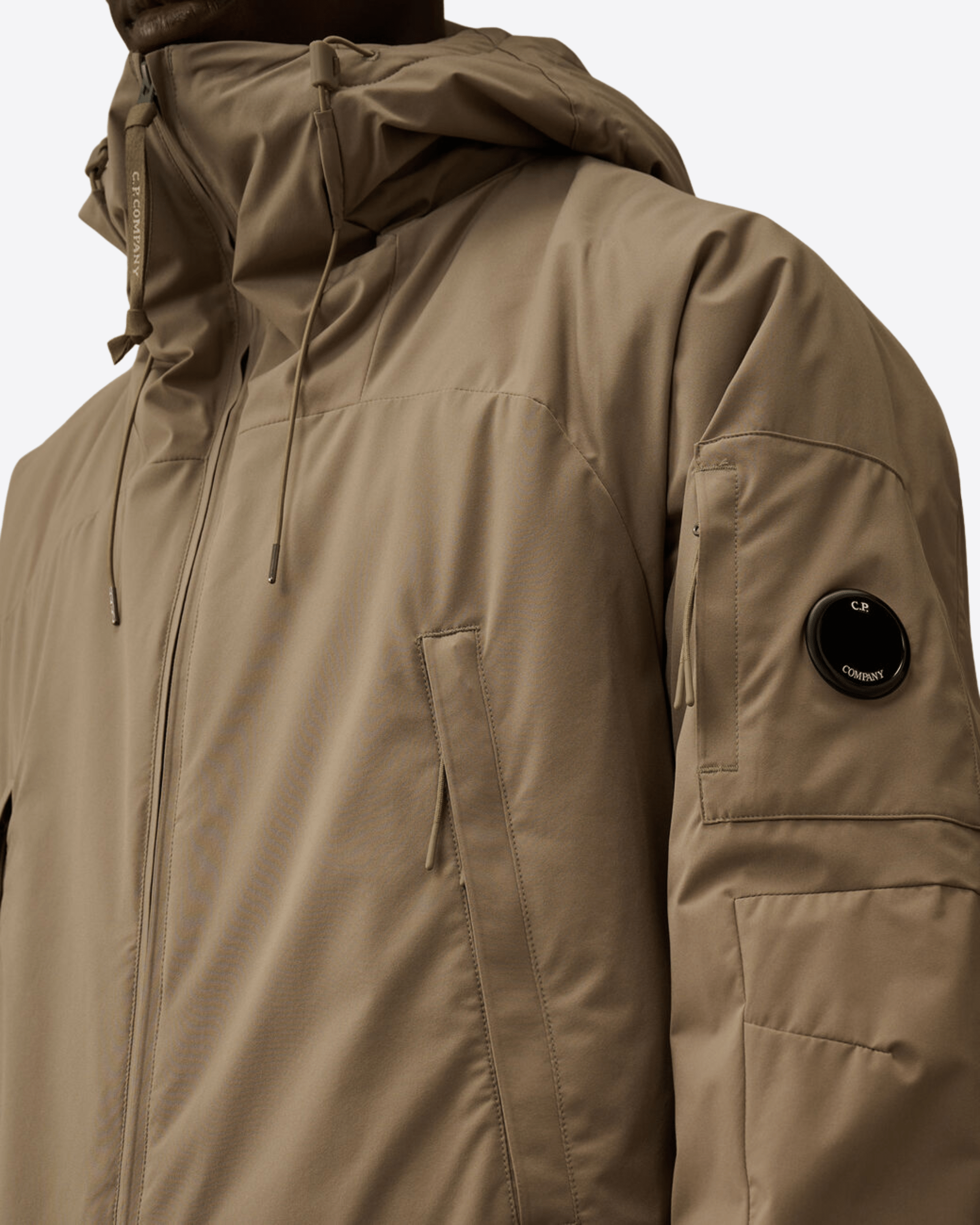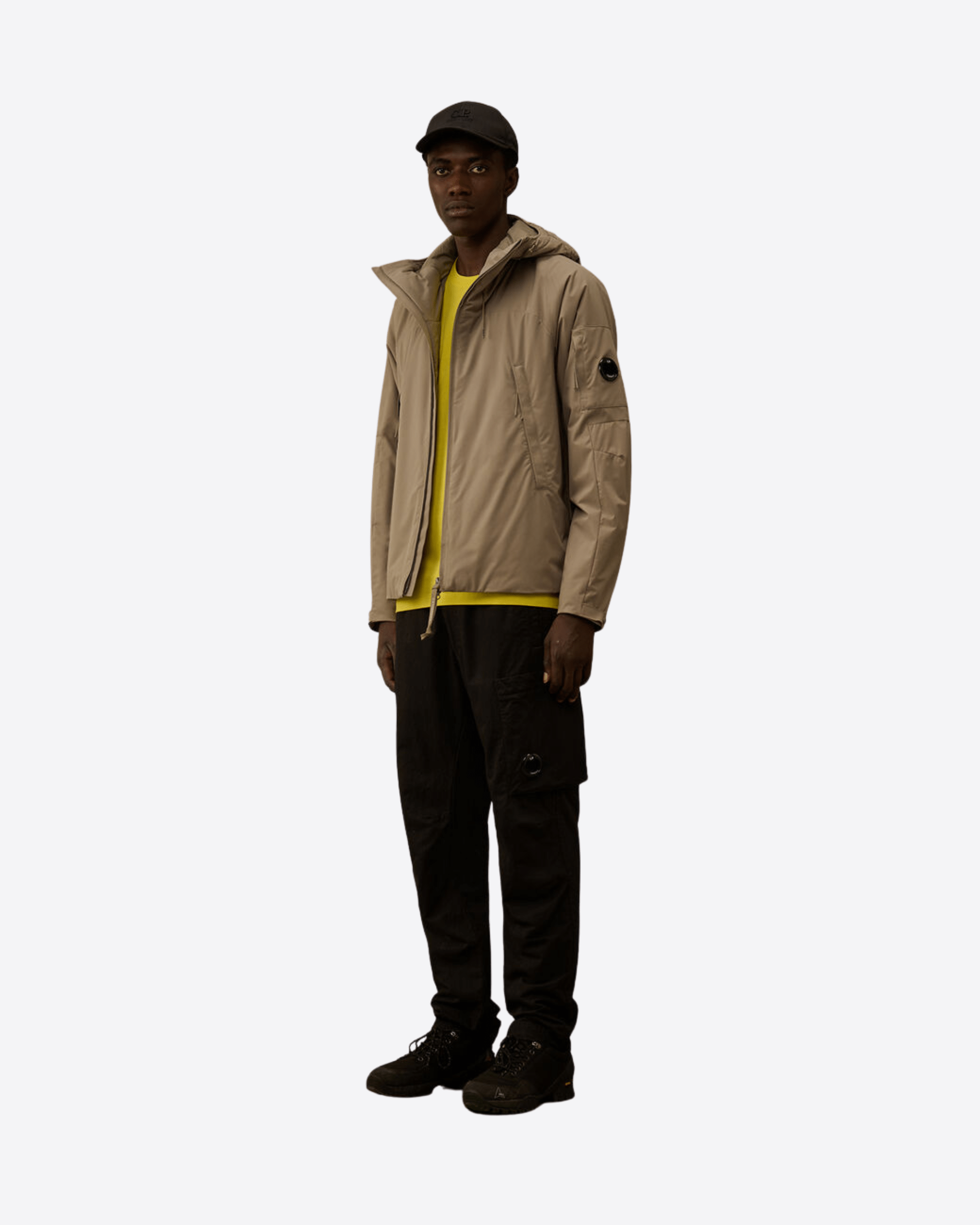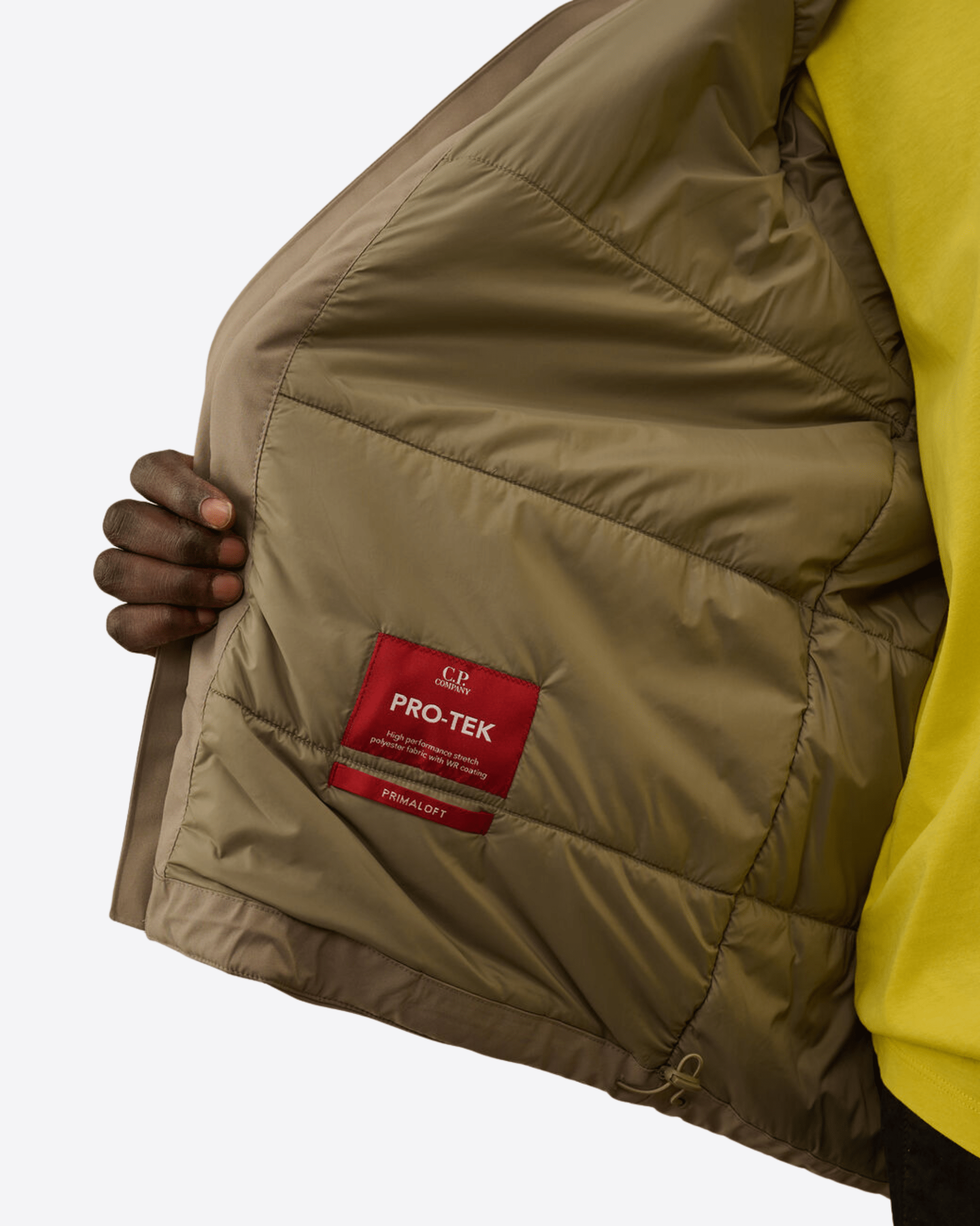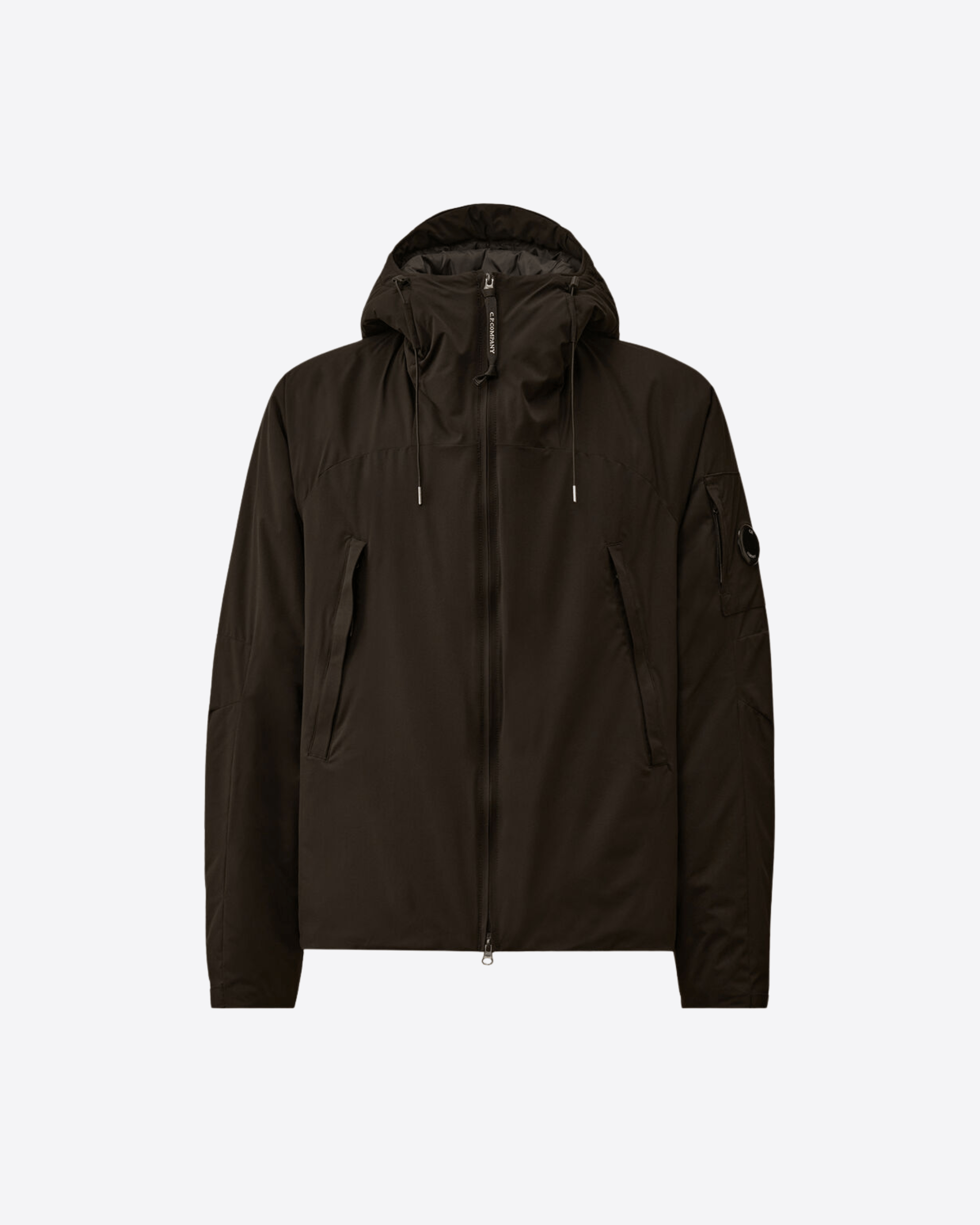 Giacca imbottita con cappuccio realizzata in Pro-Tek, un poliestere mechanical stretch, che combina il peso e il comfort di una maglia con la protezione di un capospalla. Il capo presenta l’iconica Lente di C.P. Company, una chiusura full zip a doppio cursore e tasche laterali con zip. Imbottita con ovatta Primaloft® Silver, una soluzione isolante con elevate proprietà termiche e traspiranti. Trattata anti-goccia. Regular fit.