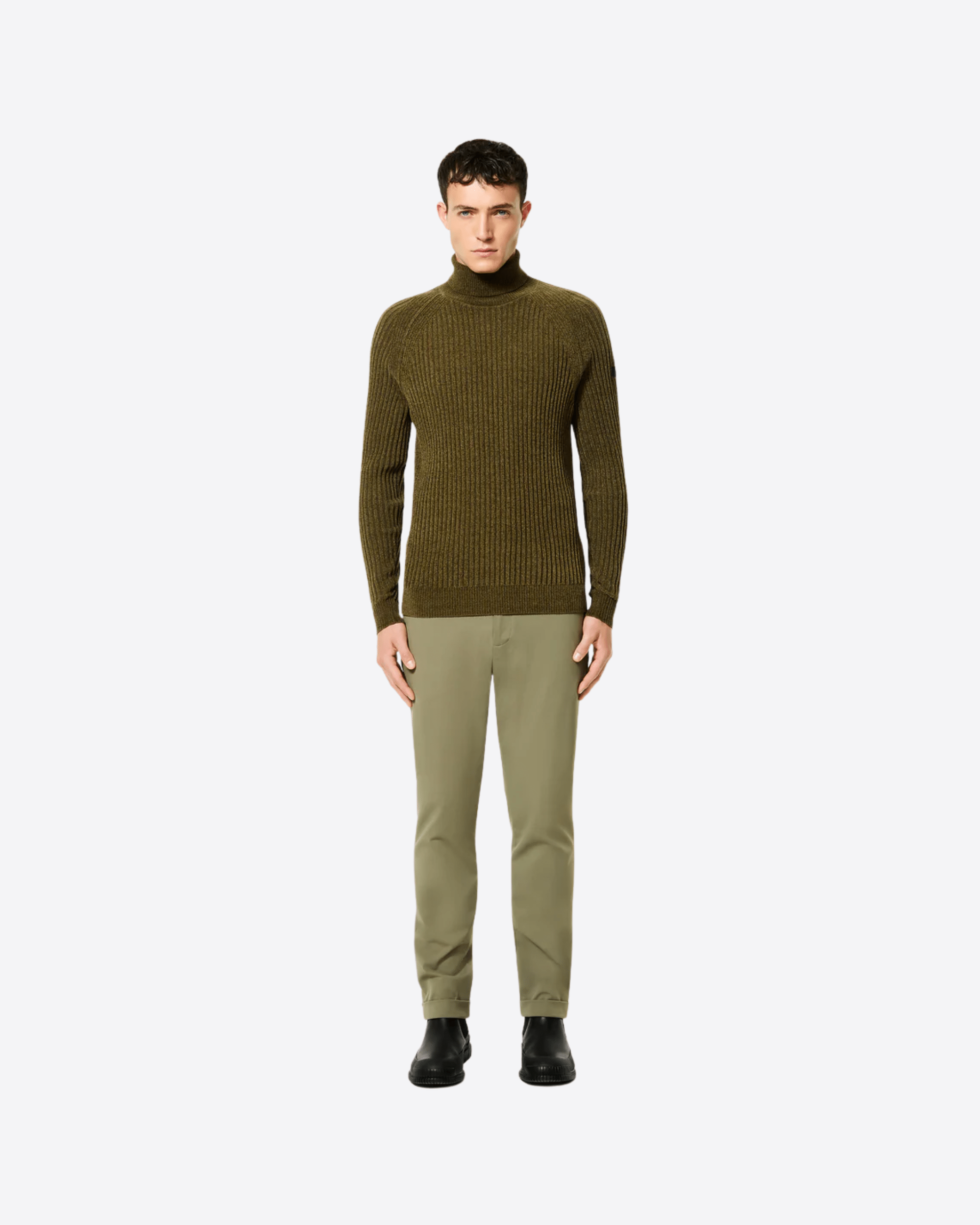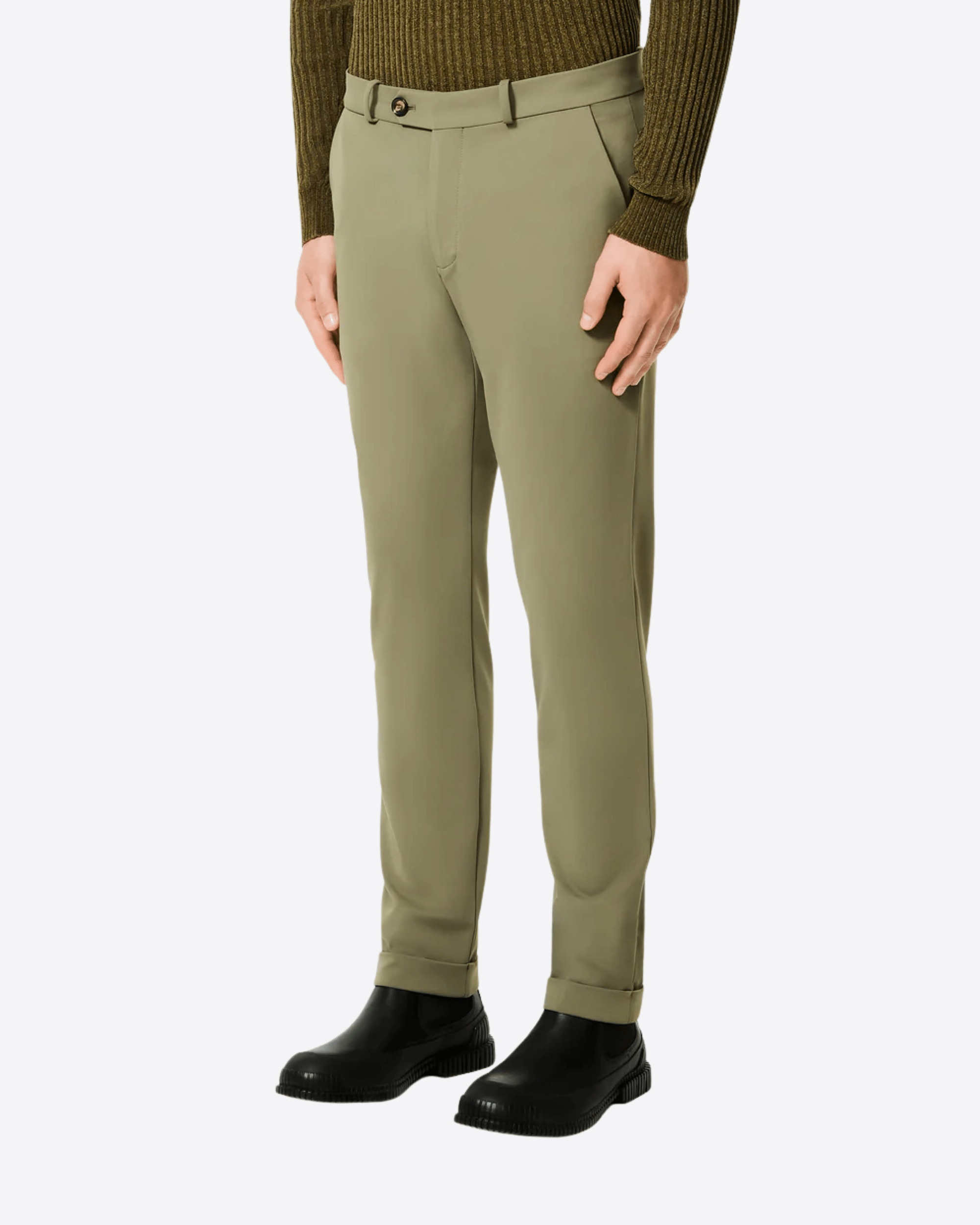 I pantaloni chino invernali dal fit regolare e dalla gamba dritta, con risvolto alla caviglia, si distinguono per il touch estremamente morbido e confortevole dell'esclusivo tessuto stretch SURFLEX® smerigliato. Il look opaco tipico della gabardina è valorizzato dalla costruzione classica, con la vita a passanti e la chiusura a zip nascosta dalla patta. Il modello presenta le tasche anteriori alla francese e le posteriori a filetto, impreziosite dall'inconfondibile logo a microiniezione nero. La fascia interna è stampata nel Monogram Razzle Dazzle e sottolineata dalla termonastratura "Made with love, designed in Tuscany". Le qualità antipiega ed easy care rendono il chino una scelta ideale per le lunghe giornate in ufficio e nelle occasioni formali, oltre che un affidabile compagno di viaggio, nel completare un blazer coordinato in un outfit professionale distintivo.