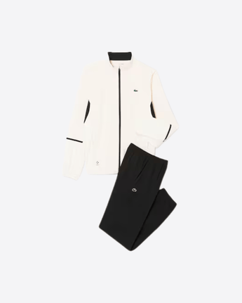 Questa tuta, provata e testata dal campione Novak Djokovic, è una testimonianza di 90 anni di esperienza nel tennis Lacoste. Realizzata in misto tessuto double face e il nostro caratteristico taffetà a rombi per il comfort e la libertà di movimento. Un mix di stile e design tecnico, con sottili dettagli a contrasto e una grande stampa coccodrillo.