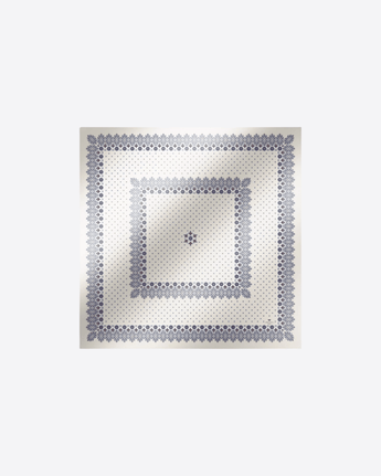 Maxi carré quadrato in twill di pura seta, arricchito da un motivo di collezione stampato all over. I bordi finemente cuciti sottolineano la qualità artigianale del modello. Con le sue dimensioni di 90 x 90 cm, è un accessorio versatile ed elegante, ideale da indossare al collo, come fascia per capelli o come dettaglio su borse e capispalla.