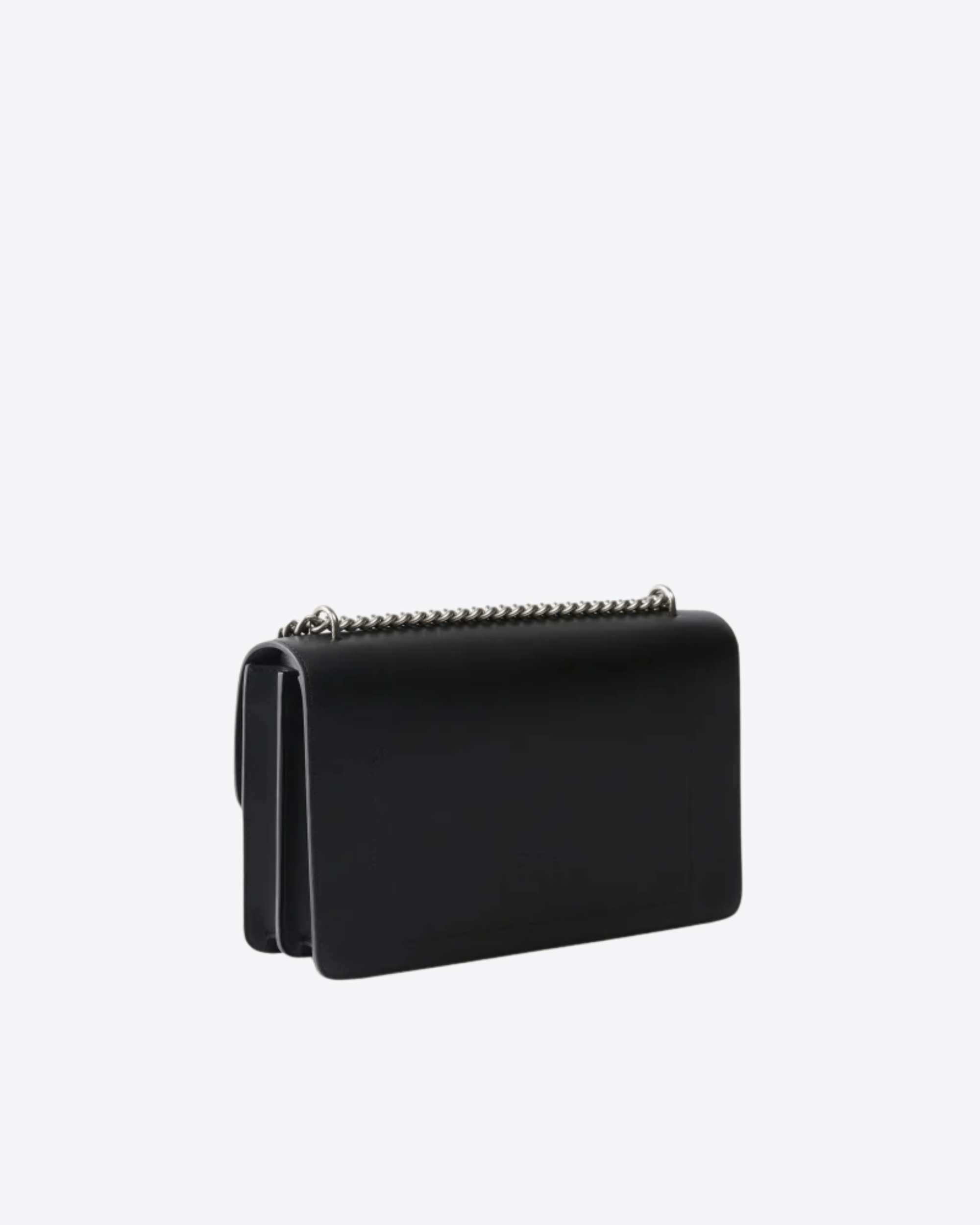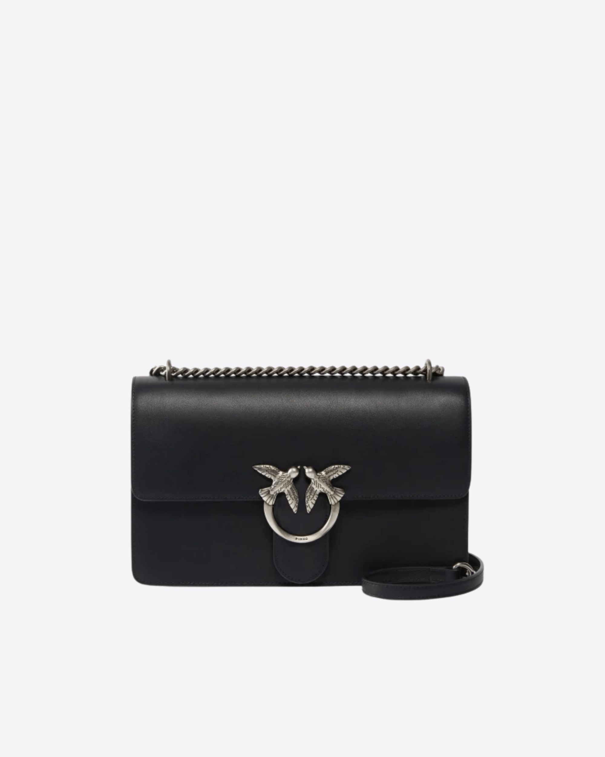 Piccola borsa a tracolla Mini Love Bag in morbida pelle mano seta, dalla texture liscia. La chiusura con patta è completata dall'iconica fibbia Love Birds Diamond Cut in metallo. L'interno è foderato in tessuto effetto scamosciato e comprende tramezza chiusa con zip e pratica tasca a parete in pelle. La borsa è completa di tracolla che combina la classica catena rotonda al pratico spallaccio in pelle regolabile, ed è possibile doppiare la tracolla e indossare la borsa a spalla.