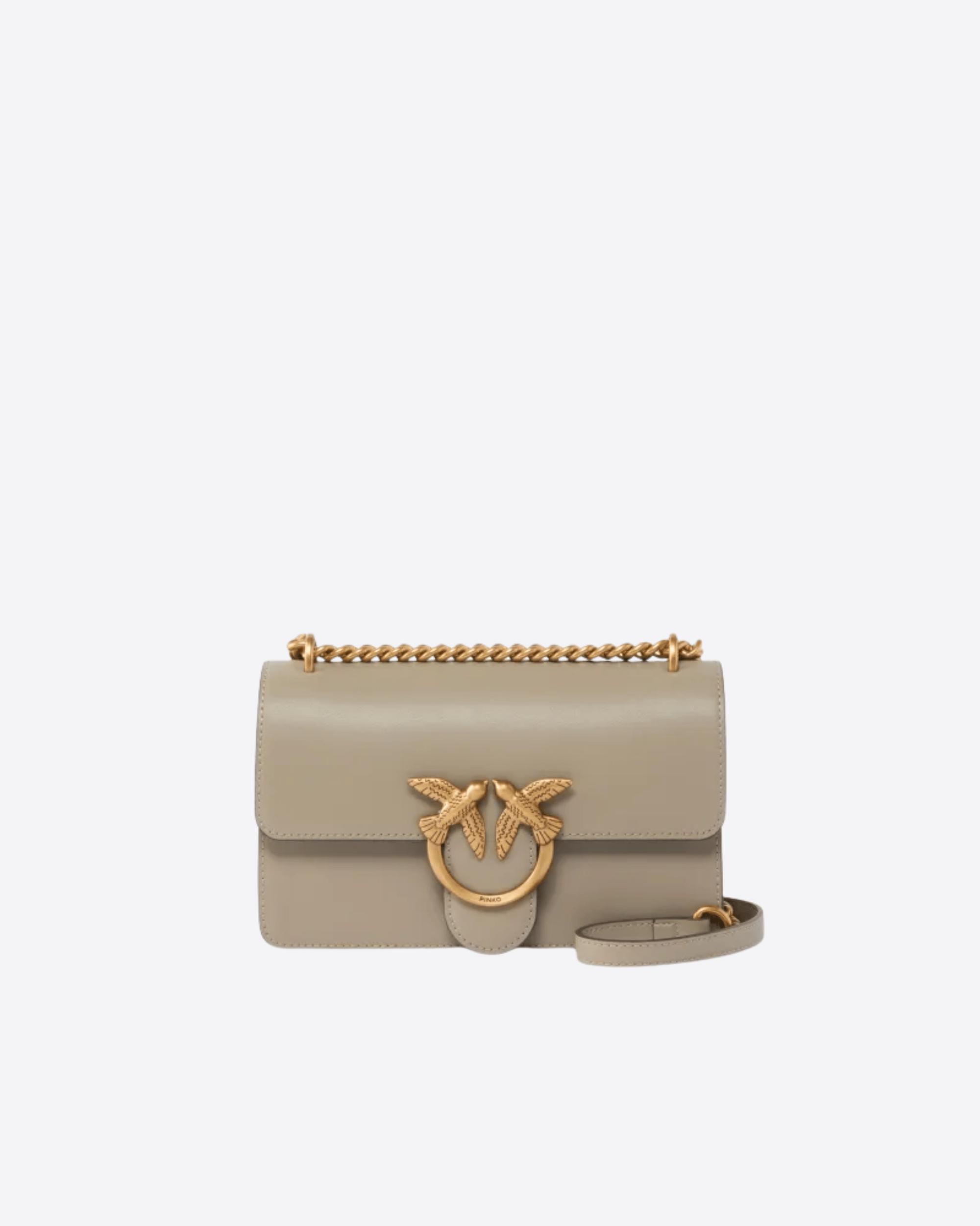 Mini Love Bag One in morbida pelle mano seta. La chiusura è completata dall'iconica fibbia in metallo Love Birds Diamond Cut in metallo. L'interno è foderato in microfibra scamosciata e comprende tramezza chiusa con zip e tasca a parete in pelle. La tracolla combina la classica catena rotonda al pratico spallaccio in pelle regolabile.
