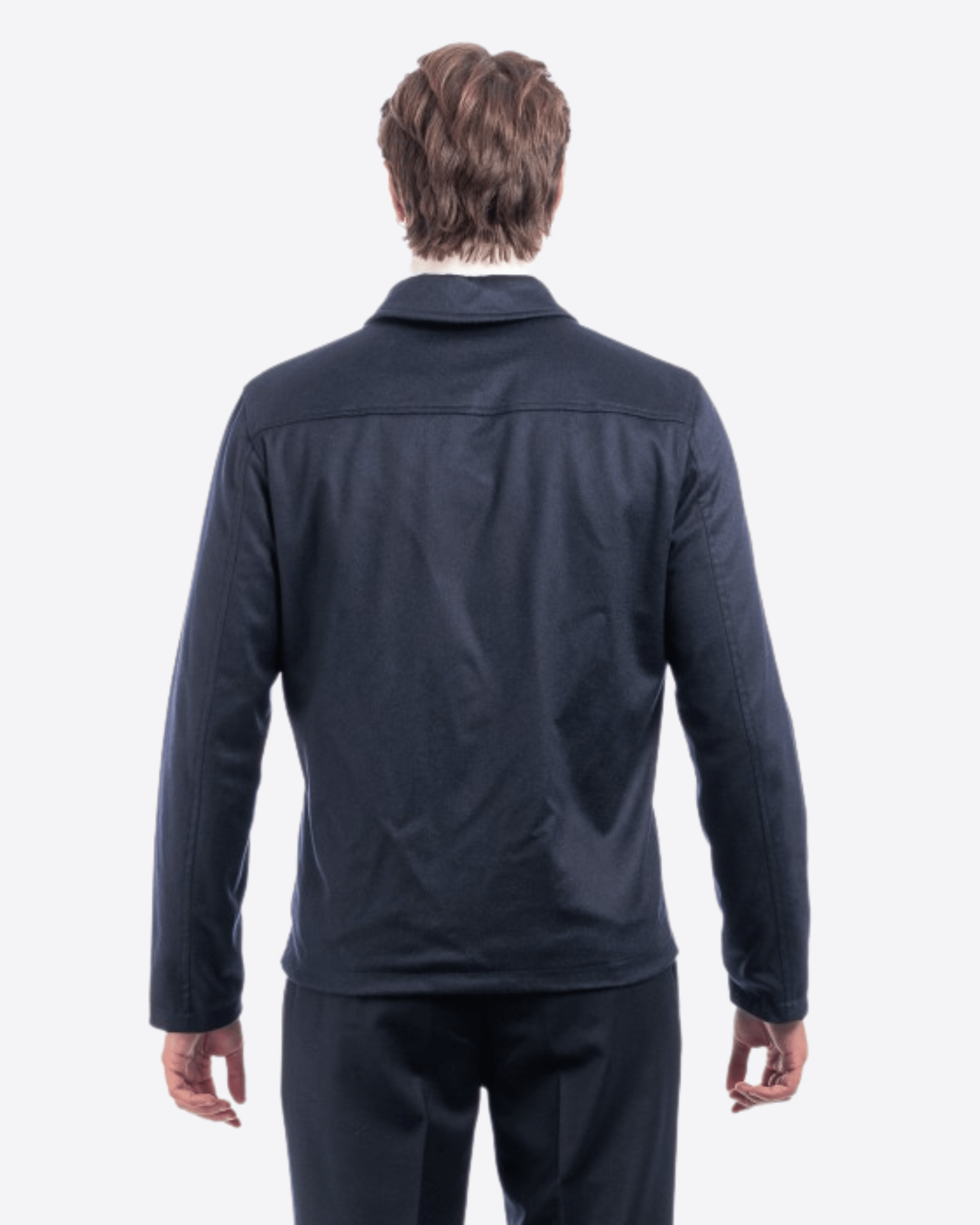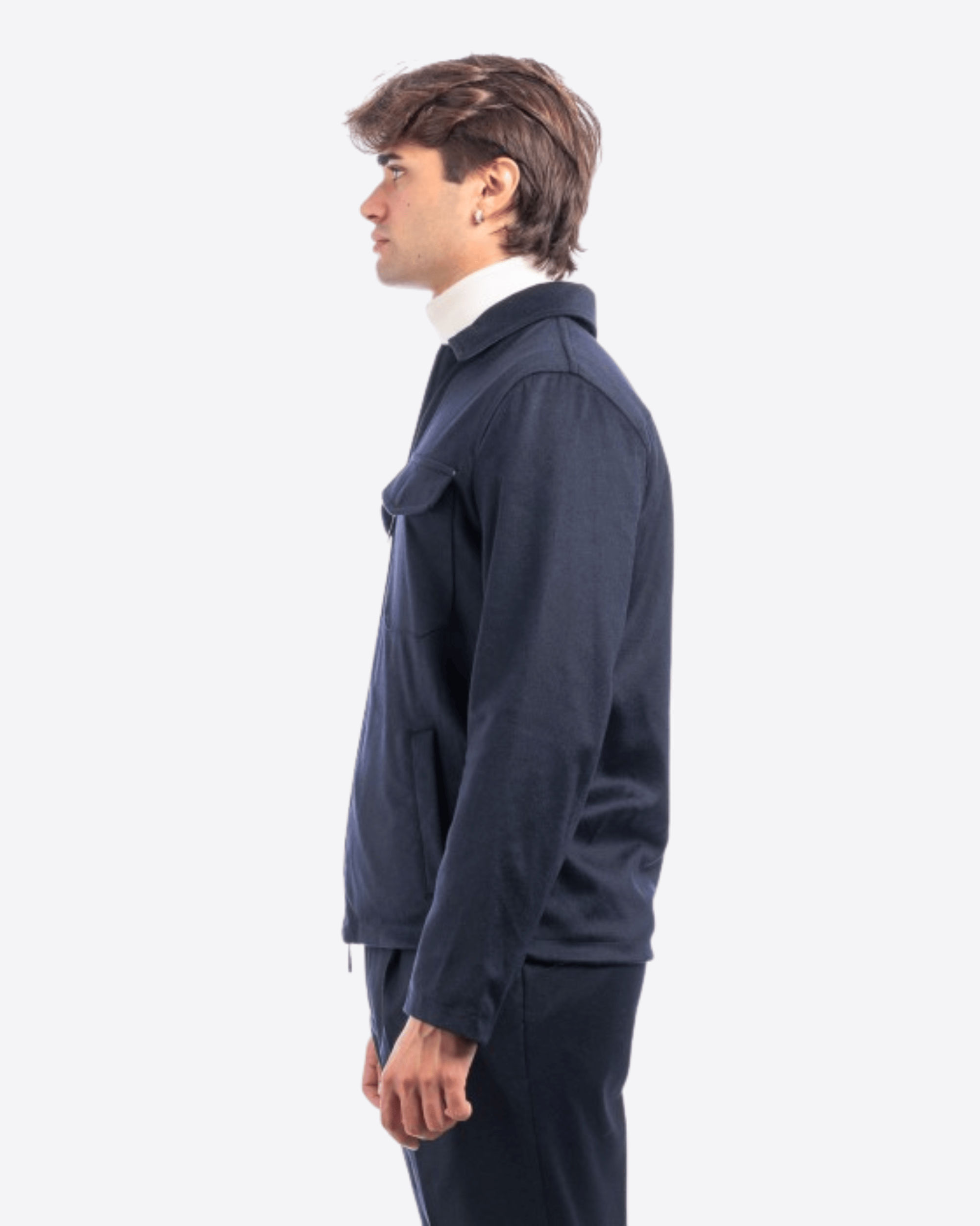 Giubbotto corto in cashmere e nylon, dal design moderno e raffinato. Il tessuto double face unisce morbidezza e resistenza, offrendo comfort e versatilità in ogni occasione. Il doppio taschino applicato sul petto aggiunge un dettaglio funzionale e di carattere, mentre la chiusura con doppio cursore in metallo garantisce praticità e un tocco contemporaneo. Le tasche a filo e il collo a camicia completano il look con uno stile sobrio e curato.