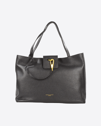 La nuova borsa Marisol della collezione by Gianni Chiarini Firenze è realizzata in pelle grana maxi. Elegante e contemporanea è pensata per una donna al passo con i tempi, caratterizzata da una forma geometrica che la rende immediatamente un must-have. Presenta due manici superiori per una portabilità a spalla, uno scomparto principale con zip e una chiusura a scatto. Accessoriata da un moschettone logato removibile. Dimensioni: 42x31x18 cm.