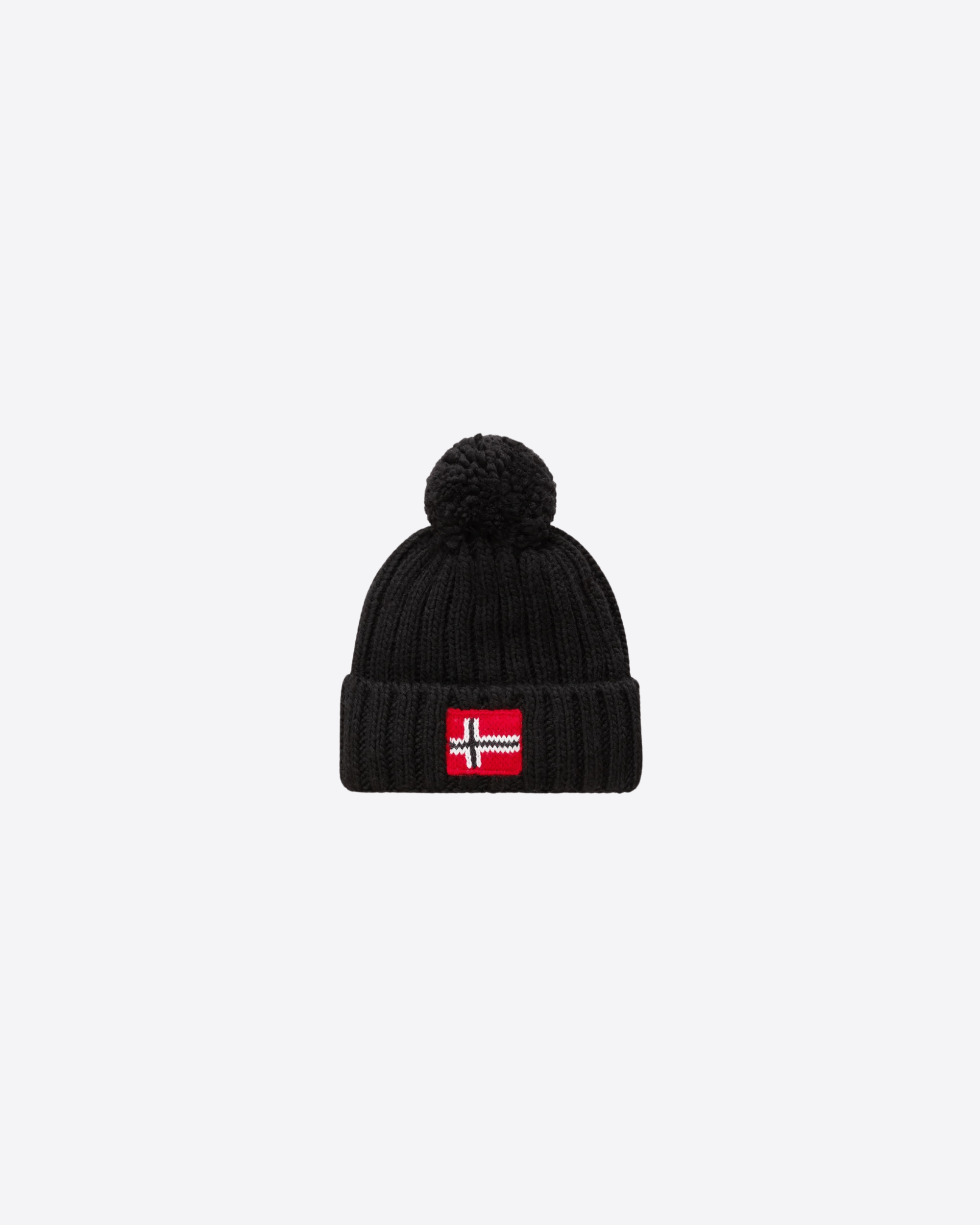 Il design è impreziosito dalla classica stampa jacquard con l’iconica bandiera norvegese sul davanti e dal pompon sulla sommità, per un tocco allegro e distintivo. La fodera interna in jersey assicura ulteriore morbidezza e una vestibilità confortevole.