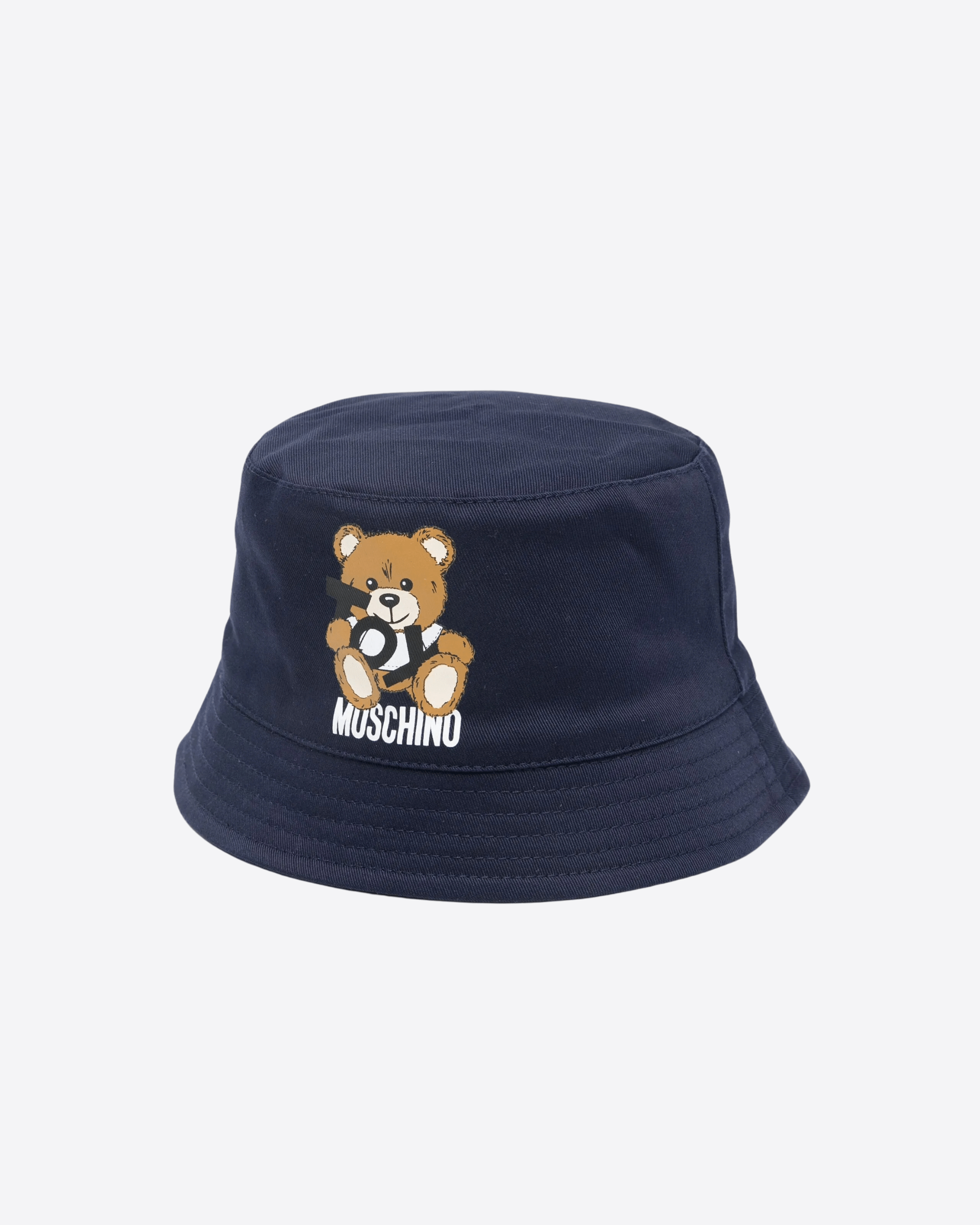 Teddy Bear Print Bucket Hat with Flat Crown, Narrow and Low Brim