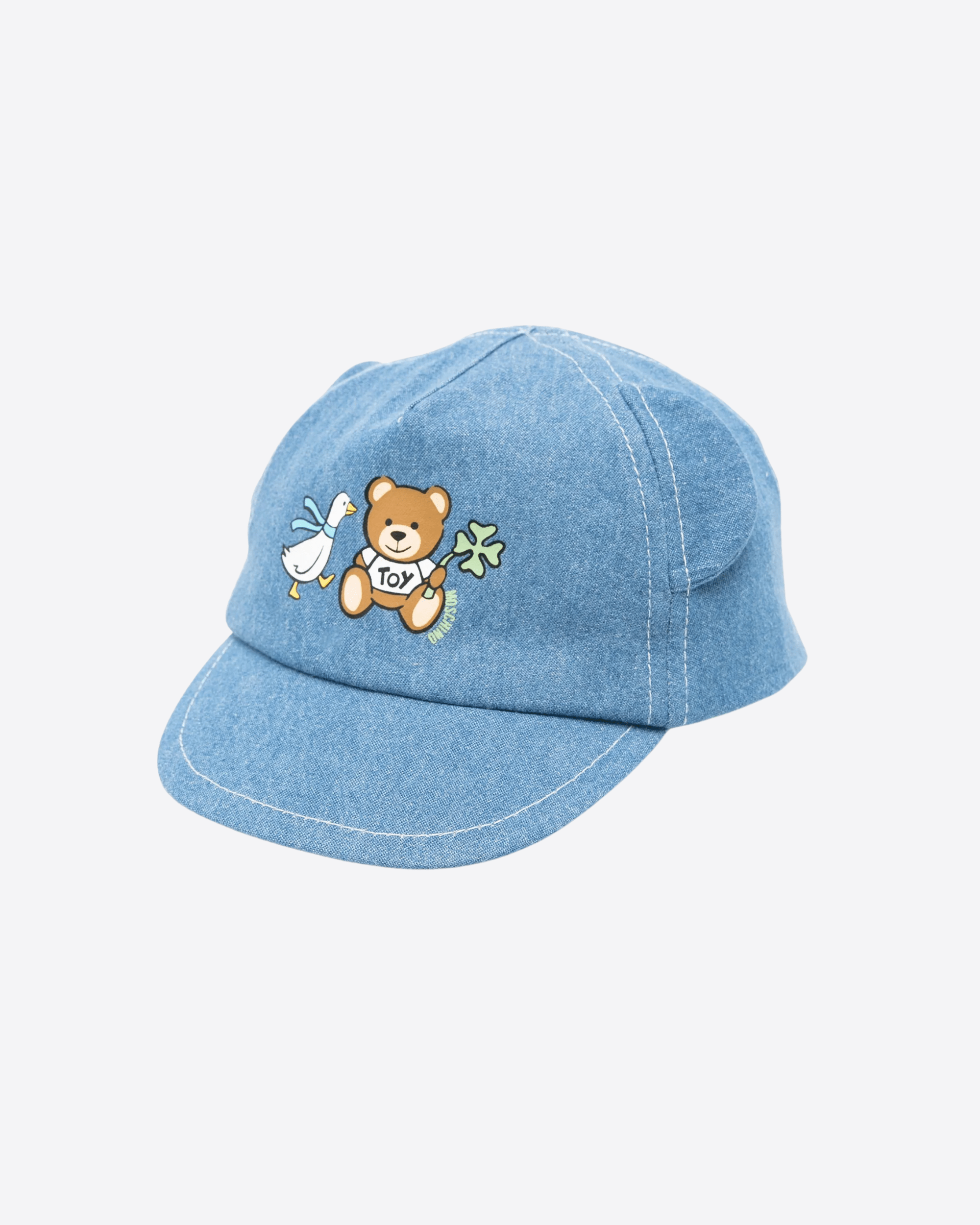Teddy Bear print hat featuring an elasticated band, cut-out detail, curved brim and six-panel design