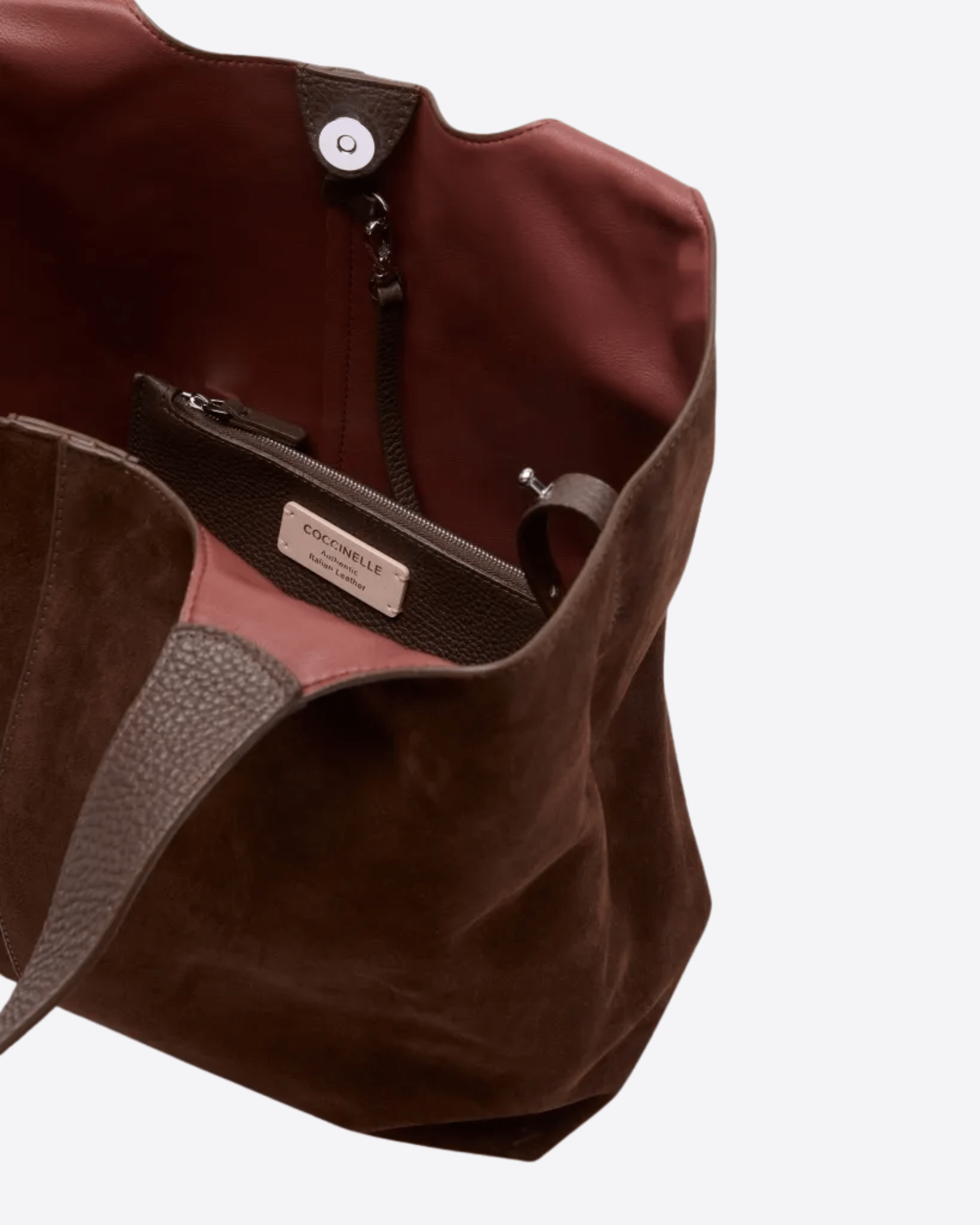 Coccinelle C-Easy è una shopping bag caratterizzata da curve sinuose che esaltano la bellezza del pellame. La funzionalità è espressa dalla capienza e dalla pochette interna ma, il fulcro del design risiede nella chiusura che può avvenire centralmente attraverso un magnete lasciando i lati aperti oppure, ripiegando i fianchi attraverso il laccio con gemello. Non manca un elemento metallico che ritroviamo nel manico con il nuovo logo C-Me, che illumina questa borsa dall’anima estremamente versatile.