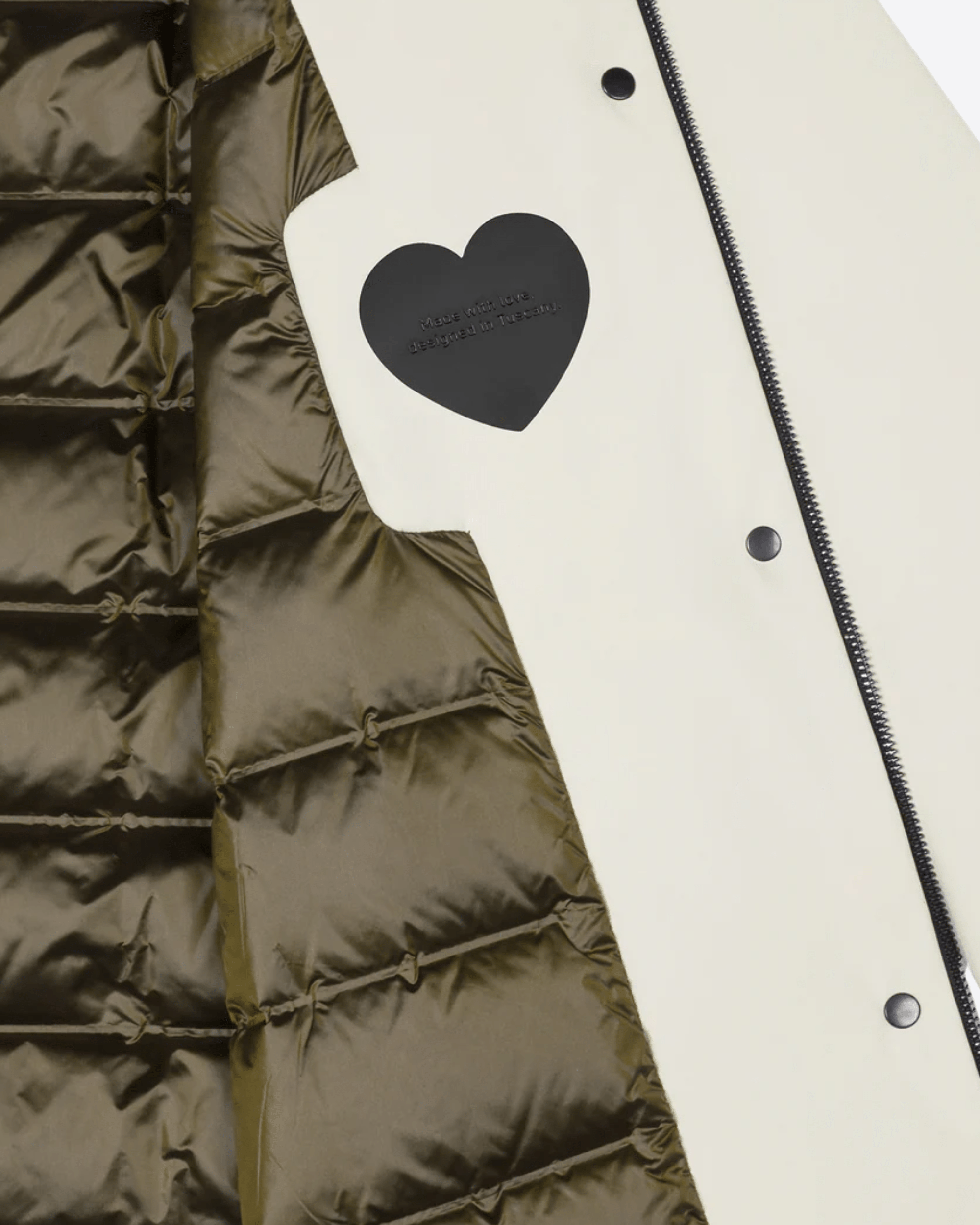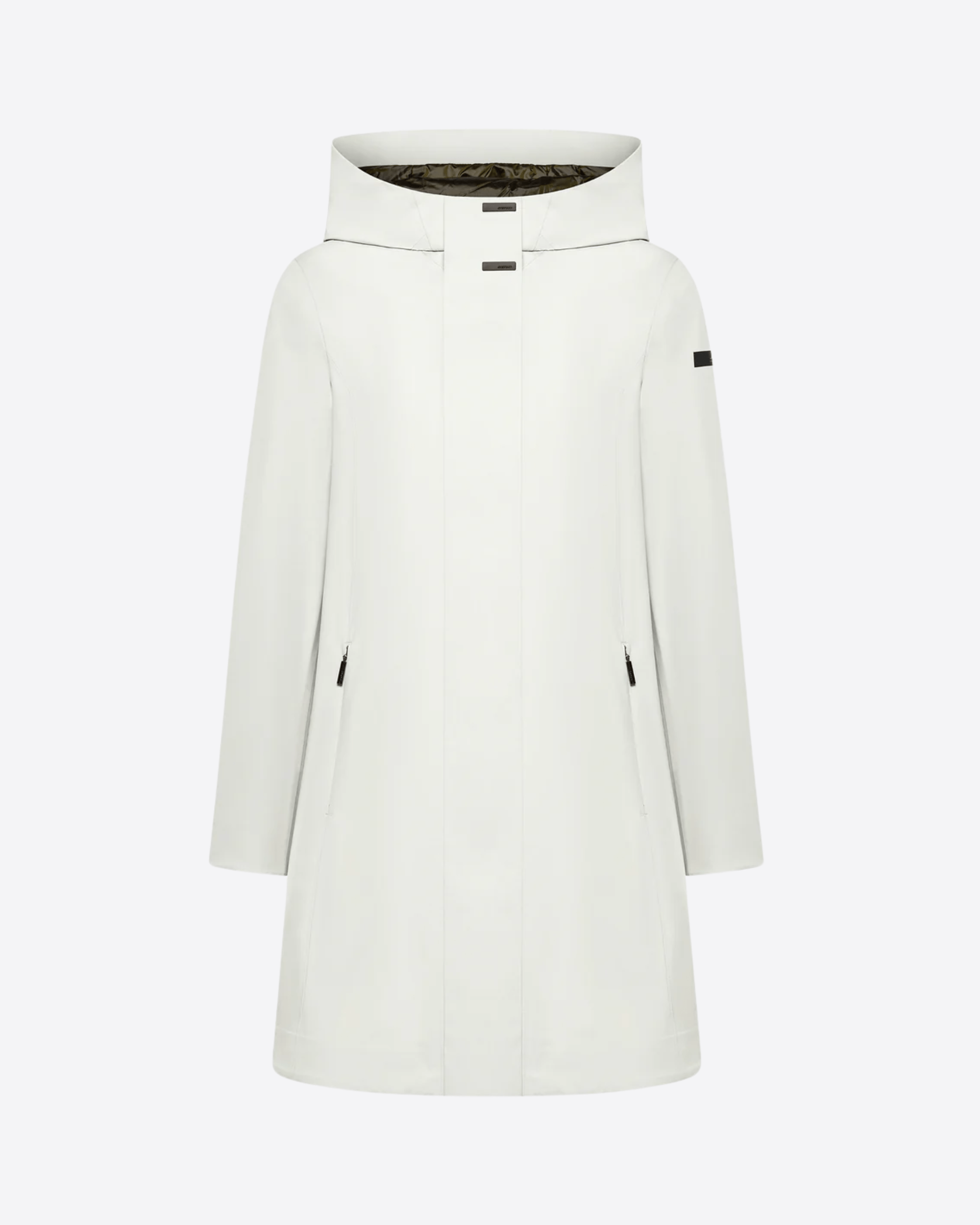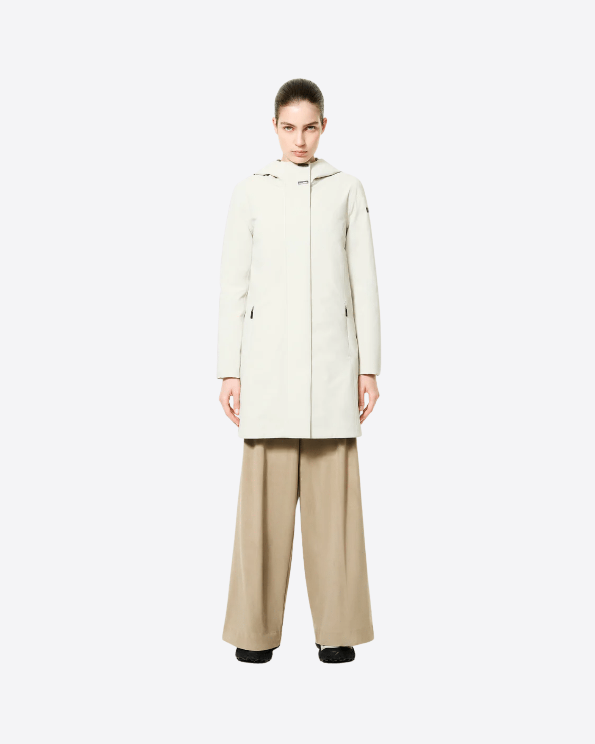La giacca invernale di lunghezza media si caratterizza per il design funzionale e minimalista, che la rende unica per praticità, isolamento e protezione dal freddo e dalla pioggia. Realizzata in tessuto a membrana impermeabile e traspirante, presenta l'esterno in esclusivo Montecristo dal look opaco e liscio al tatto. L'innovativo sistema floating shield offre un abbraccio di calore dal fit impeccabile, grazie ai canali tubici che contengono l'imbottitura in piuma d'anatra. Il cappuccio, anch'esso imbottito, presenta un design essenziale e raffinato che incornicia delicatamente il viso. Sul davanti, la chiusura a zip è nascosta dalla patta impreziosita dai bottoni a barretta gun metal, che donano un tocco di eleganza contemporanea. Per la sua versatilità, la giacca è ideale nell'aggiungere un twist glam nella creazione di look decisi e distintivi, in abbinamento alla camicia dal taglio maschile e al morbido pantalone palazzo